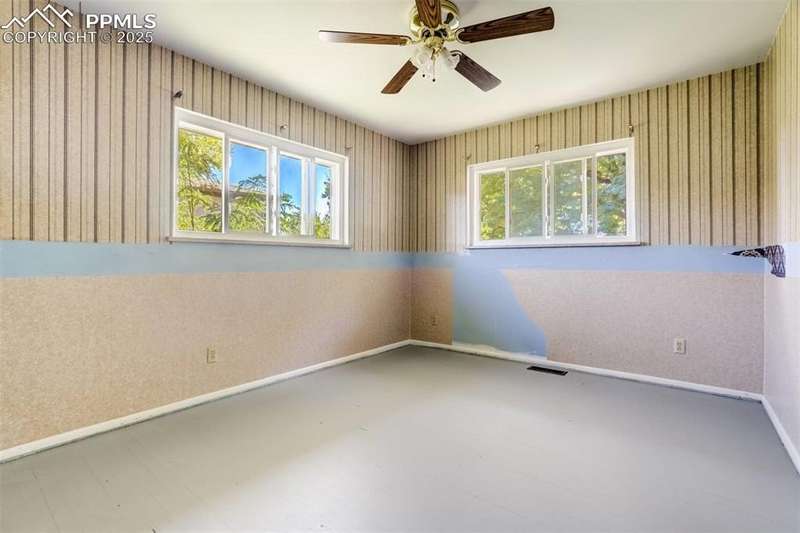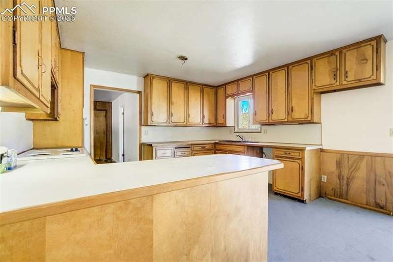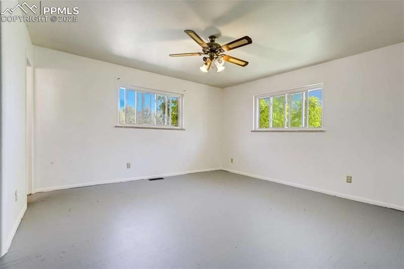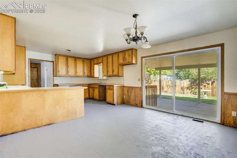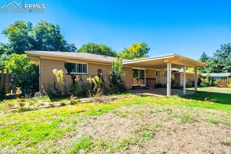 Set on a mature treed lot in central Colorado Springs, this all-brick rancher offers true main-level living near UCCS, I-25, & the Academy corridor. The neighborhood balances quiet residential streets with quick access to shopping, restaurants, & parks. Inside, an open & bright layout creates effortless flow between living areas. The spacious country kitchen anchors the home w/ extensive cabinetry, ample counter space, counter bar seating, & under-cabinet lighting. The adjoining dining area opens directly to the covered back patio, perfect for everyday indoor-outdoor connection. A separate family room on the main level provides a versatile second living area, ideal for media or work-from-home space. Three main-level bedrooms each feature ceiling fans, including a primary suite w/ private bath. A full hallway bath offers a double vanity for the secondary bedrooms, while an additional half bath adds daily convenience. The dedicated laundry room includes a full wall of storage cabinets, & the crawl space provides extra storage flexibility. Outside, the fenced backyard offers a covered concrete patio surrounded by mature trees for shade & privacy. The attached two-car garage includes a work area, & the home has access to high-speed internet. combining comfort, practicality, & ready for your design.