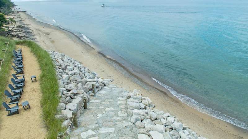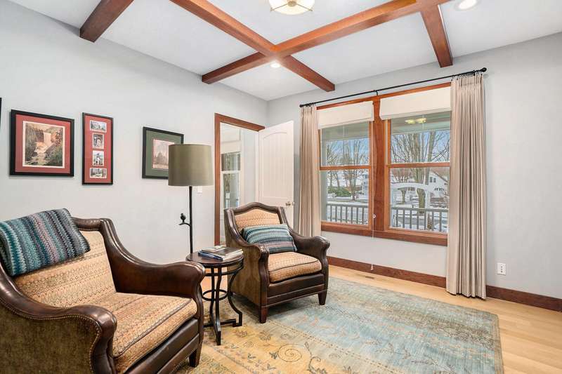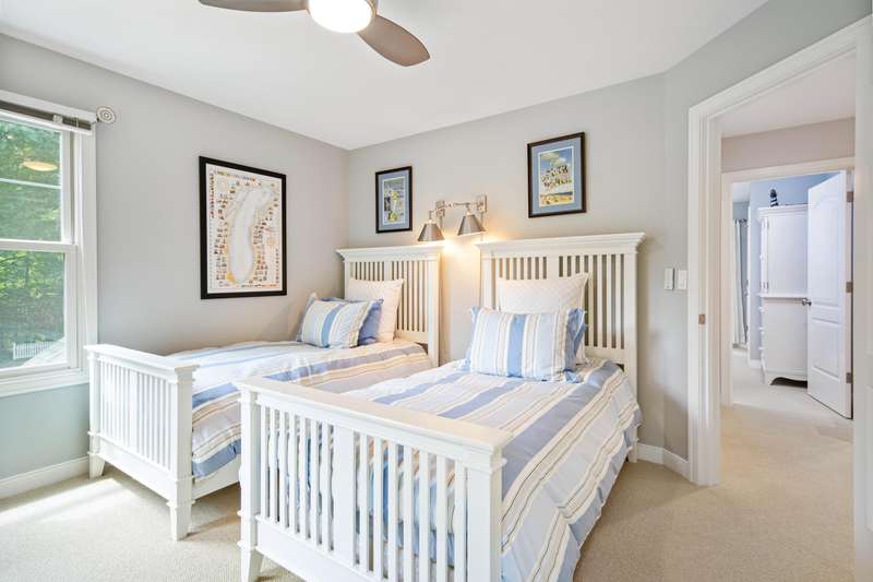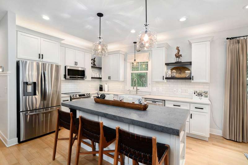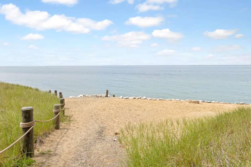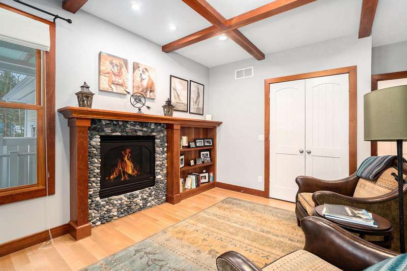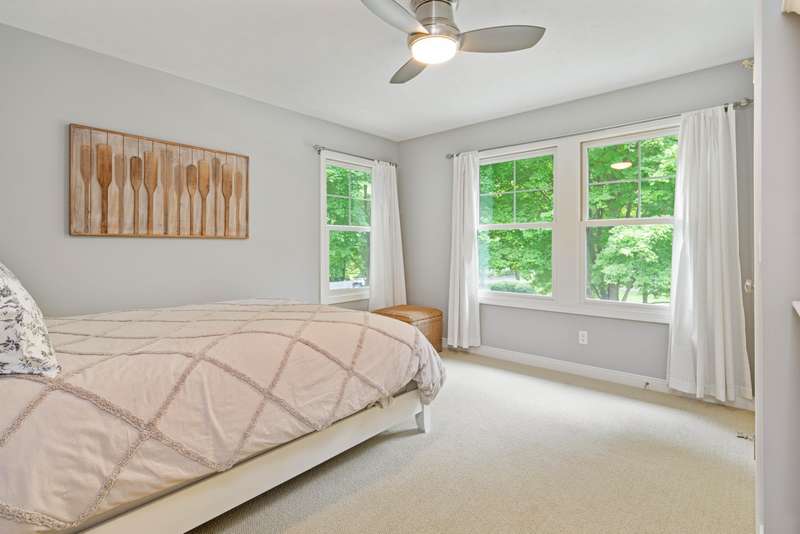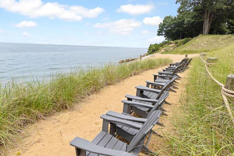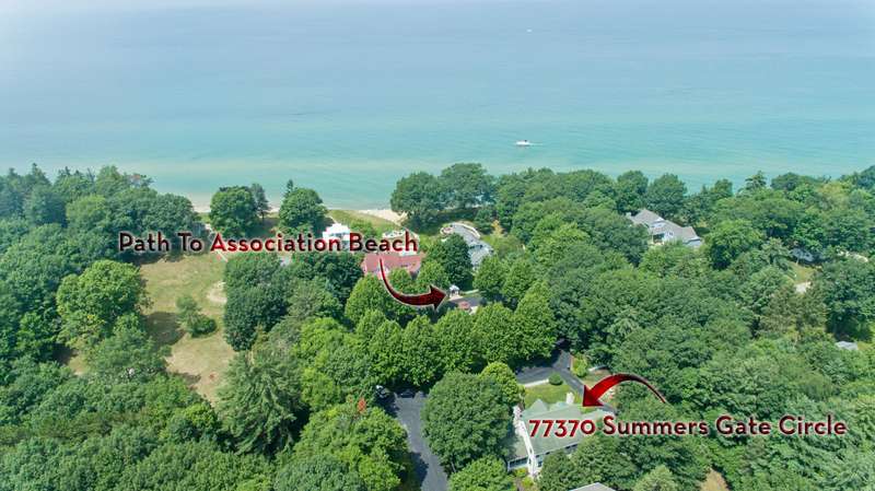 Experience the charm of the Cottages of Summers Gate, an exclusive lakefront community with 250 feet of private beach. Enjoy the soothing sound of waves from the covered front porch of this pristine coastal retreat, just steps from beach access. Custom built by Cottage Homes, it highlights their signature high quality finishes and custom built-ins. The home features an open floor plan, hardwood floors, a main floor den with coffered ceilings, and two fireplaces. The recently renovated custom kitchen is a chef's delight, showcasing new high end appliances, quartzite counters, and a spacious center island with seating. With six bedrooms, four full baths, and a finished lower level, there is plenty of space for guests. Do not miss out, schedule your private tour today!