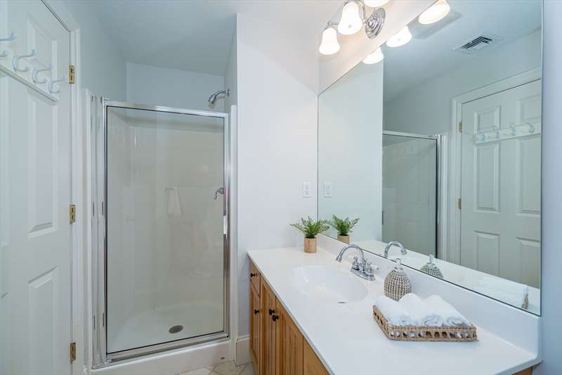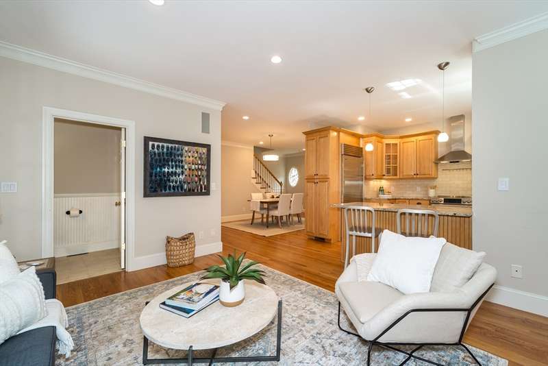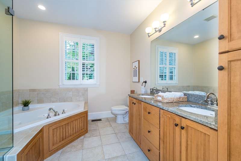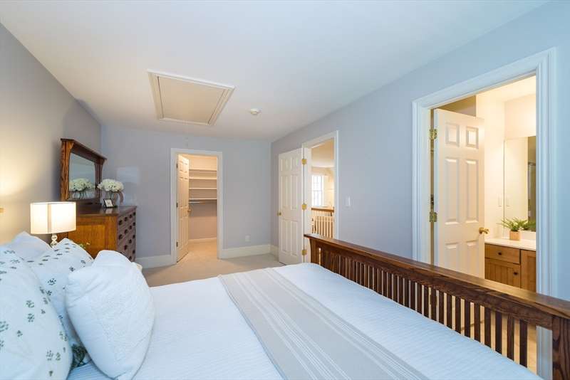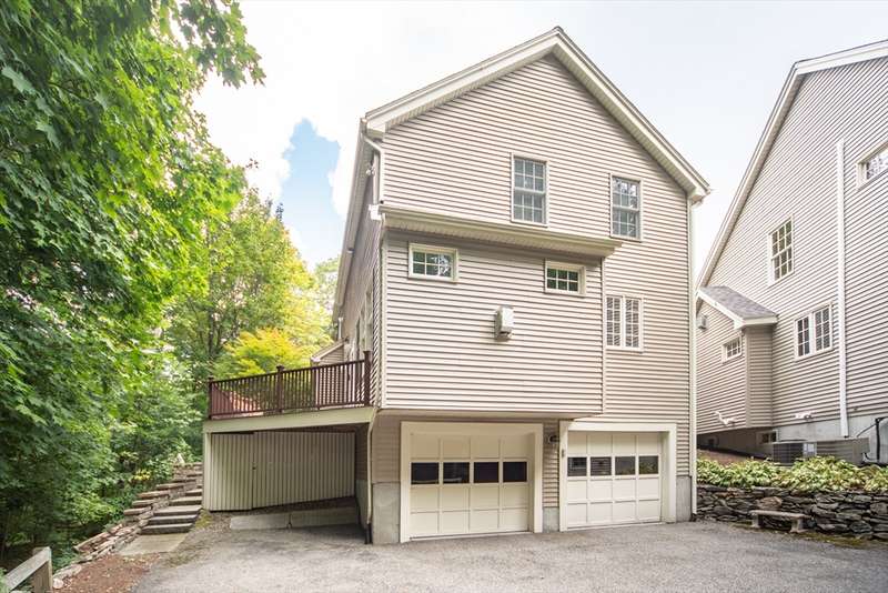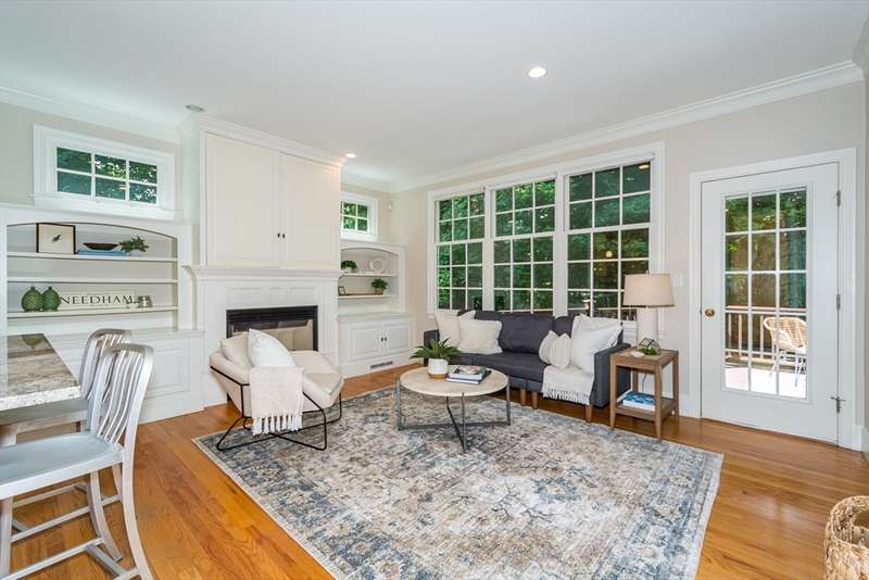 Fabulous, Spacious Condo located in Super Downtown Needham Location! Great floor plan with Master Suite on both the 1st and 2nd floor. All 3 bedrooms are en-suite. Lovely Living room with custom builtins, gas fireplace and access to a private deck and patio overlooking conservation land. Spacious kitchen with custom cabinetry, stainless steel appliances, granite counters and breakfast bar.leads to the Formal Dining Room. 1st floor Master Bedroom Suite has spa like bath and a walk in closet. The 2nd floor greets you with a cozy library with gas fireplace, built in bookcases and tons of natural light. 2nd floor Master Suite with fabulous walk in closet and private bath with cathedral ceiling and sky light. 3rd bedroom also has its own private bath, Laundry room with 1/2 bath on 1st floor. The lower level is nicely finished with a gas fireplace and built ins perfect for family game nights and entertaining. Walk to all location! Shops, T, restaurants. Easy to show! HURRY!!