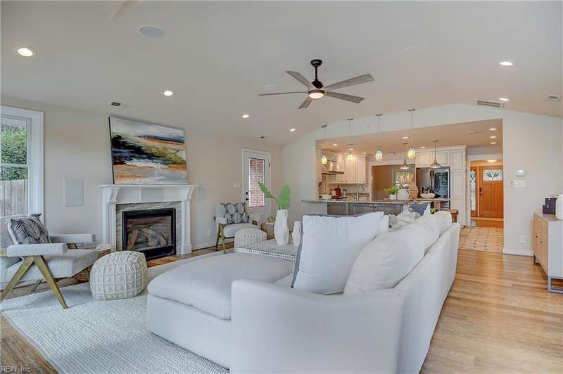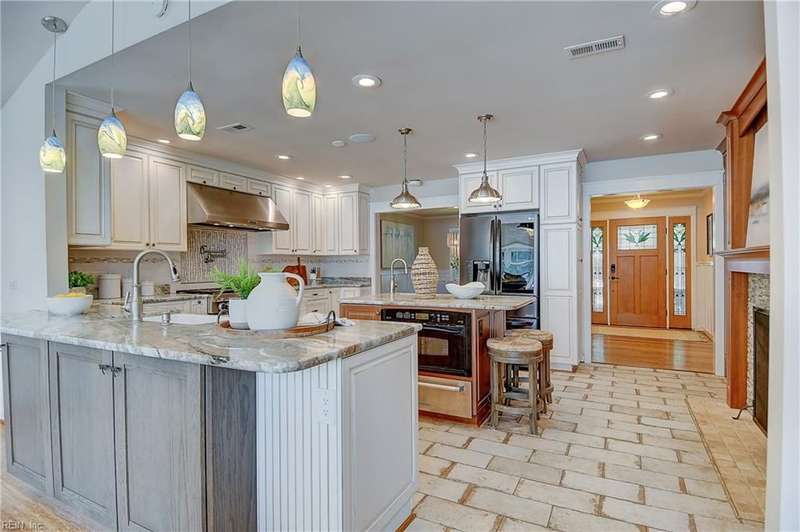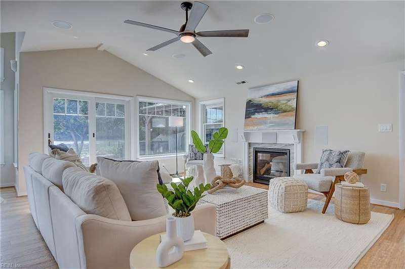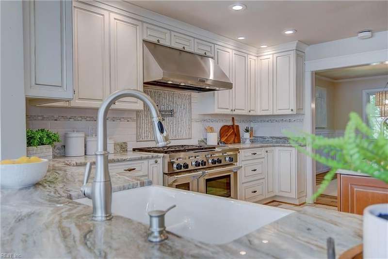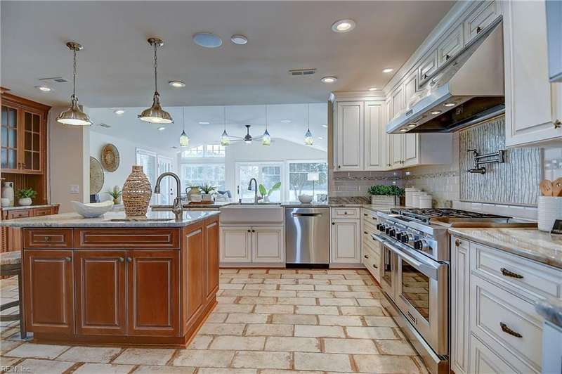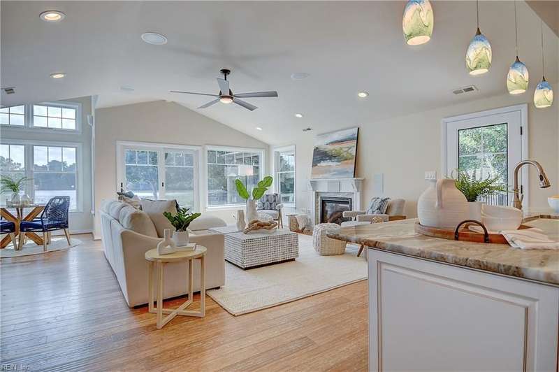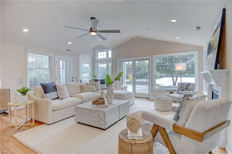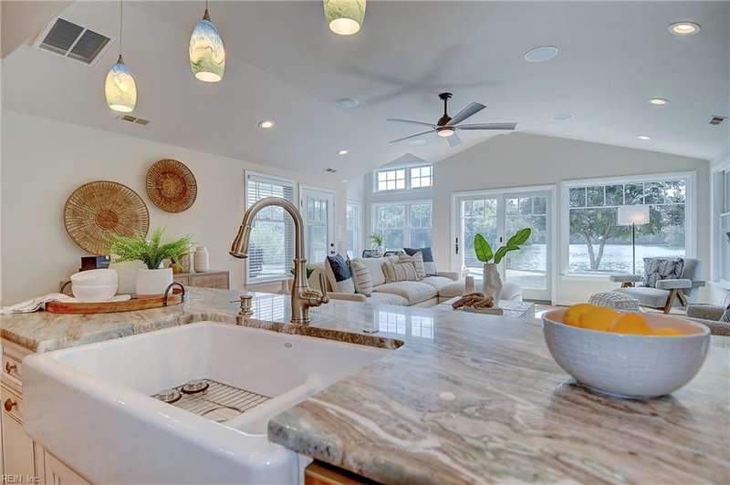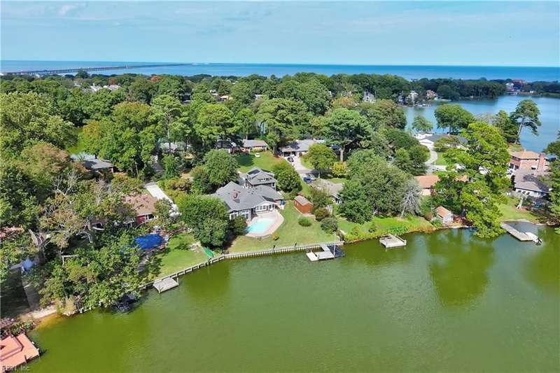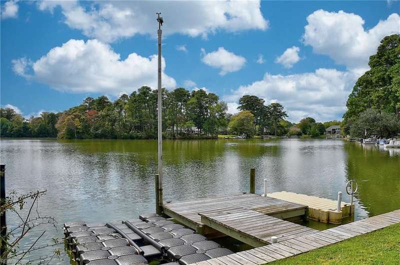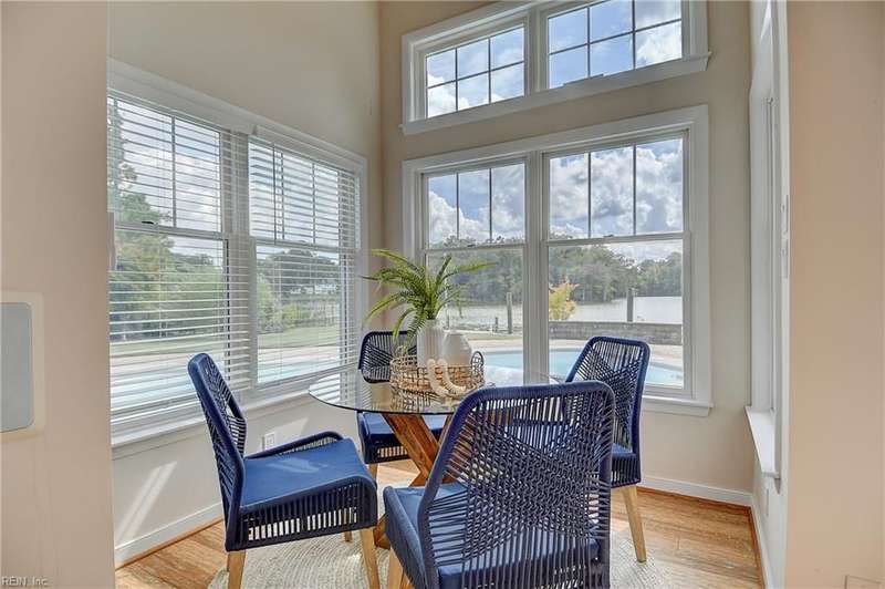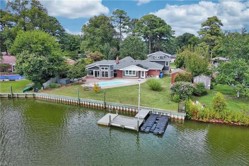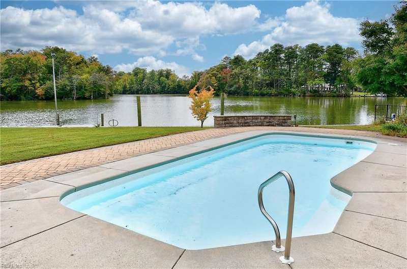 Mint condition ranch style home in the heart of Chic's Beach located on Lake Joyce! Extensive renovations to include renovated kitchen w/ custom cabinets, granite countertops, oversized gas stove, upgraded appliances, kitchen with fireplace open to large great room with fireplace & spectacular water view + vaulted ceiling, bar area w/ pendant lights. Interior newly painted! Dining room with bamboo wood flooring, theater room, large utility room w/ extra refrigerator & cabinets for storage + 1/2 bath. Primary bedroom on the back of the home w/ sitting area overlooking the inground salt water pool & pavers. Pool with 1 yr old pump and chlorinator. Primary bath with jetted tub & separate shower. Cedar walk in closet. Spacious bedrooms. Oversized two car garage w/separate entrance to apartment with large great room & Kitchen area. Whole house generator. New geothermal heating w/ 5 wells. 3 mini splits. Tankless water heater. Insulated garage doors w/openers. Clear termite letter provided