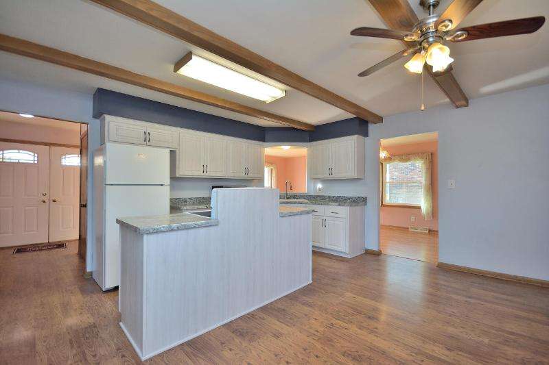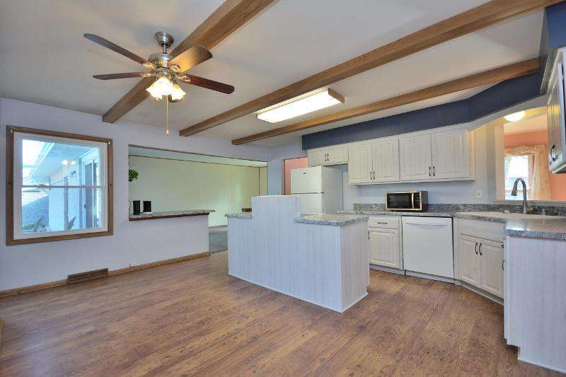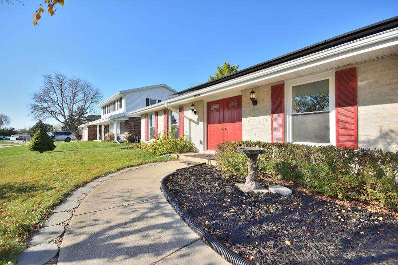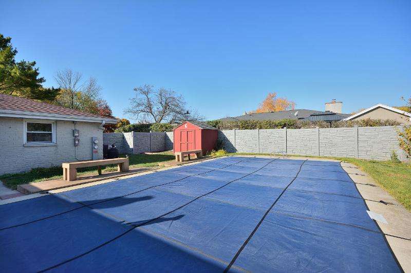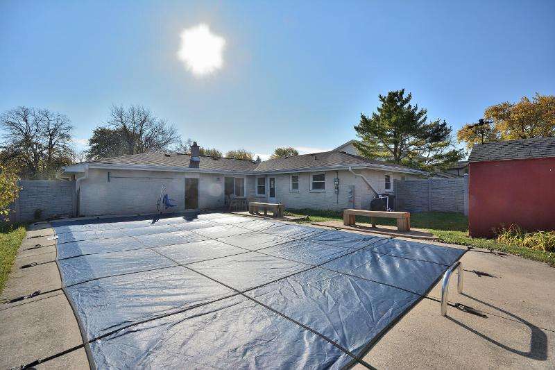 Nestled in a sought-after, quiet New Berlin neighborhood that's close to everything, this charming white-brick ranch is majestically perched atop a gentle hill! The heart of the home is the updated center island/open KIT w/large eat-in area. It opens to the FR w/sliding doors to patio & in-ground pool - perfect for entertaining! Open LR/DR w/BICC, primary BR w/attached 1/2 bath. LL boasts finished rec room w/bamboo bar, tons of storage & potential for more finishing. Very private/fenced backyard w/shed & raised garden bed. Roof solar panels keep the electric bill SUPER LOW! Home warranty included for extra peace of mind. There was a lot of love in this home for the last 25 years - now it's ready for its next chapter. Don't miss your opportunity!