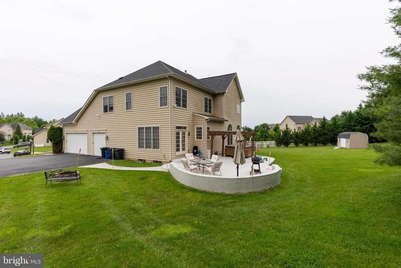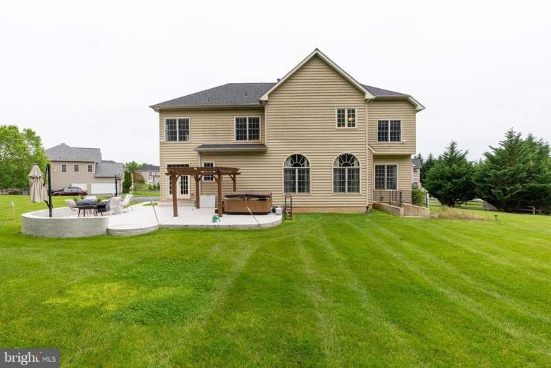 Welcome to this exceptional 5-bedroom, 4.5-bathroom colonial with over 6,500 square feet of finished living space, nestled on a private 1.2-acre lot in the sought-after Fields of Sagamore community. Located on a quiet cul-de-sac, this home offers a seamless blend of indoor and outdoor living, perfect for both everyday comfort and entertaining. The main level is flooded with natural light, featuring oversized windows, a cozy family room with a gas fireplace, and a spacious eat-in kitchen with granite countertops, stainless steel appliances, a large walk-in pantry, and an oversized island with seating. Step outside to the patio, where you can relax, unwind in the hot tub, or gather around the built-in fire pit - all while taking in the serene, tree-lined views. The backyard also includes a convenient shed, providing additional storage for outdoor essentials. Up either of the dual staircases, you'll find a luxurious primary suite featuring a tray ceiling, two walk-in closets, and a spa-like en-suite bath with dual sinks, a soaking tub, and a separate shower. Four additional bedrooms are thoughtfully designed with two Jack-and-Jill bathrooms, each offering dual-sink vanities for added convenience. The lower level is designed for entertaining, with walkout stairs, high ceilings, a wet bar, a walk-in pantry, two versatile bonus rooms (one currently set up as a workout space could be used as a 6th bedroom), a full bath, and ample storage. Additional features include a 3-car garage with an electric vehicle charger, providing both convenience and sustainability. Residents of the Fields of Sagamore community also enjoy access to playgrounds and open space, with easy access to Glyndon, I-795, and the Reisterstown Corridor. This home truly has it all - don't miss the opportunity to make it yours!