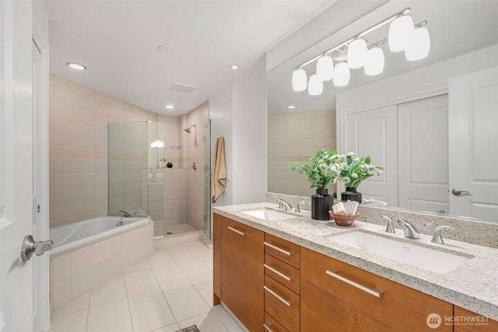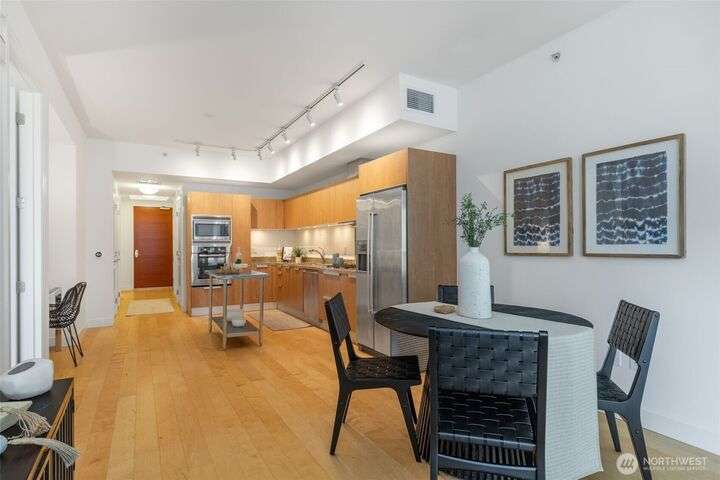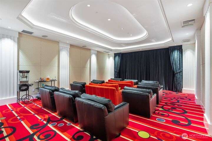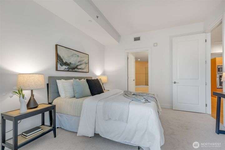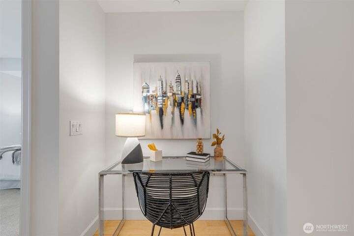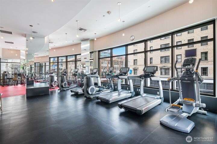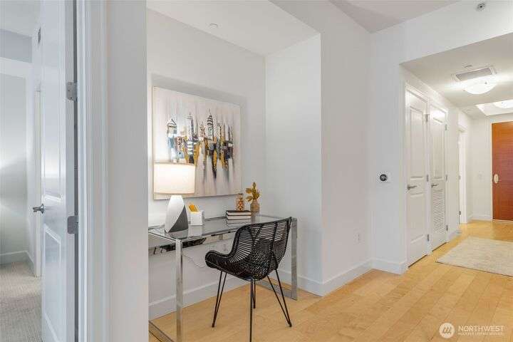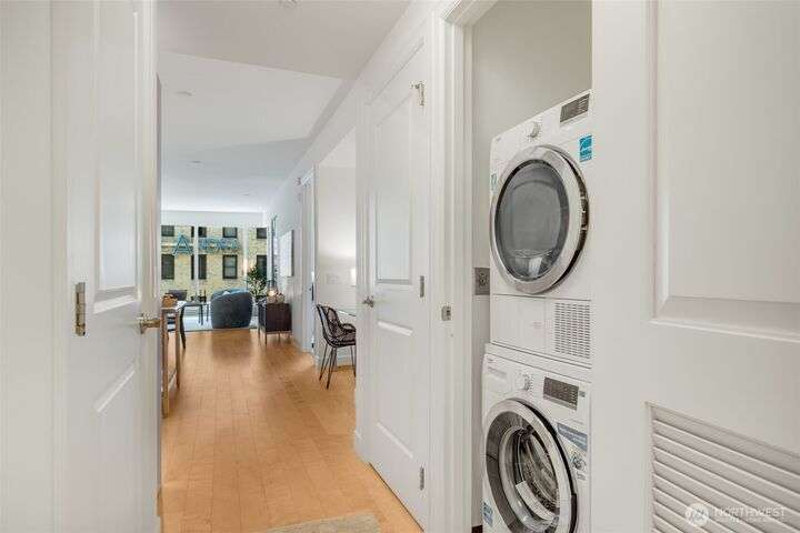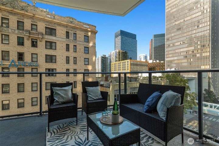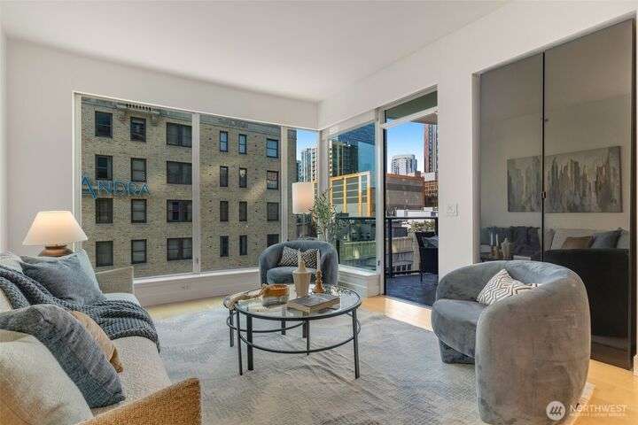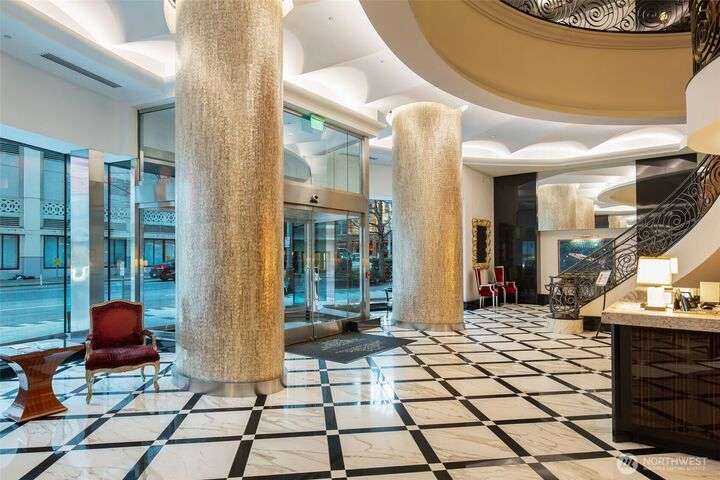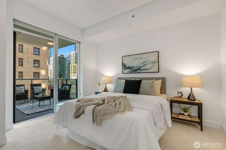 Live a luxury lifestyle at Escala. First class amenities wrapped up in a gorgeous package right in the heart of downtown Seattle. Light and bright with NW facing window walls and a dual access covered deck overlooking the city. Spacious open living layout with room to work, play and entertain. Contemporary kitchen with Pedini cabinets, granite slab counters, gas cooktop and space to add an island or table to further enjoy your culinary creations. Oversized bedroom with ensuite 5-piece bath creates the perfect retreat with direct access to the large corner deck for fresh air enjoyment. Convenient half bath, desk nook, hardwood floors and A/C are the cherry on top. Garage parking with EV charger and additional storage included.