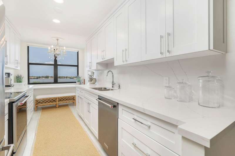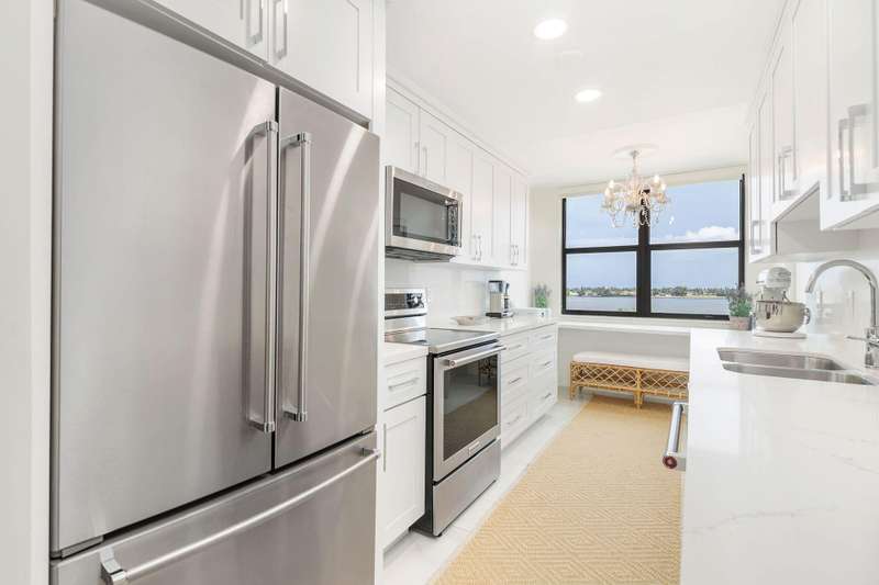 Amazing views from this fully renovated three-bedroom direct waterfront apartment at Portofino South. East/South facing 3BD/2BA, open floorplan with wide open views and large balcony right on the Intracoastal. Wonderful full-service building, 24-hour doorman, two covered parking spots. Beautifully decorated and ready for immediate occupancy. Stunning apartment! Furniture may be purchased at additional cost.