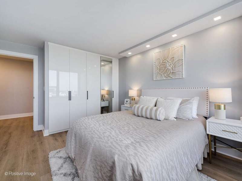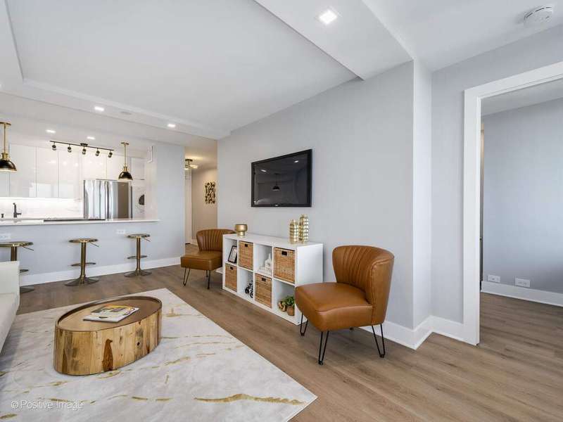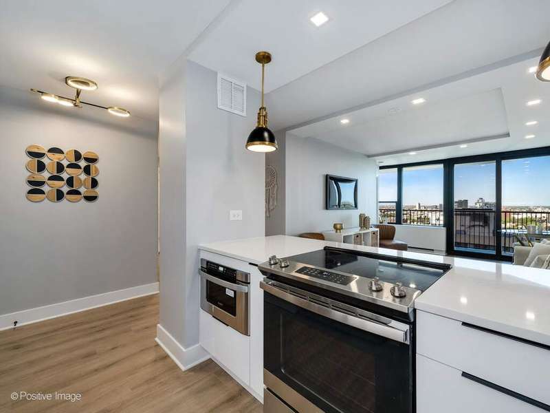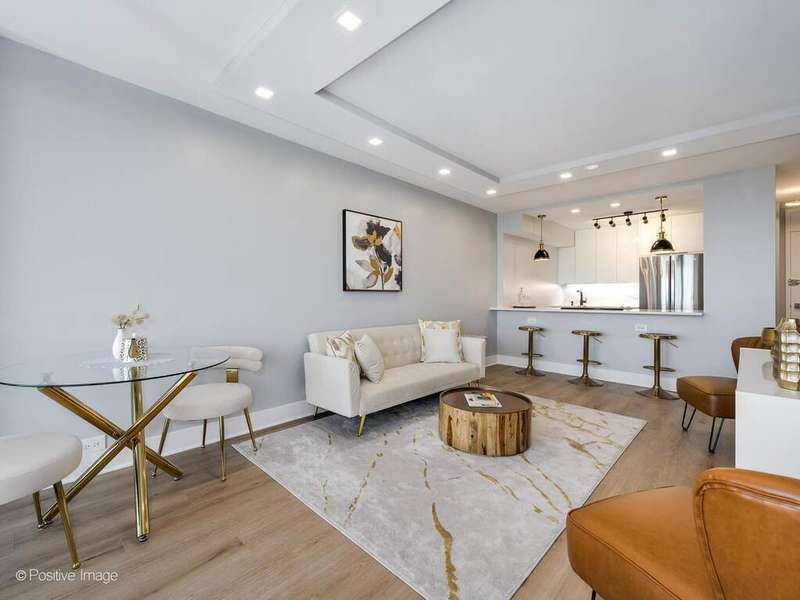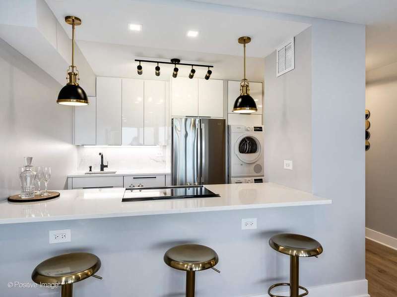 Stunning newly gut rehabbed two bedroom unit at James House, with large balcony on a high floor with panoramic views of the city and skyline. Be the first to live in this unit, among the many new features is the in-unit washer & dryer. The entire unit was renovated and finished to the highest standards. The beautiful open kitchen has contemporary gloss white cabinets with black accent hardware and black faucet, there is under-cabinet led lighting, quartz counters & peninsula with long breakfast bar, designer black & gold pendants & overhead recessed lights, all new high-end appliances including french-door refrigerator, Bosch dishwasher with panel door and a Sharp microwave drawer. Separate Washer & Dryer are conveniently added in the kitchen. The living room is open-plan off the kitchen and has direct access to the balcony and the spectacular views. The primary bedroom is spacious and has a a desk area. The 2nd bedroom offers many options as a guest bedroom or large home office/studio for Zoom calls. Both bedrooms and the living room have new recessed lighting, professionally organized closets with automated lighting. The bathroom is fully renovated, it has a new walk-in shower with sliding glass door, new vanity with quartz top, large vanity mirror with recessed lighting above, upscale toilet, Kohler & Hansgrohe fixtures, finished with gold hardware and contemporary tiles. Step out onto your own private, east facing, 17 foot long balcony to enjoy lounging or grilling while taking in the amazing vistas and stunning sunsets. Throughout the unit there are wide-plank natural wood colored floors, new plumbing, new electrical, designer lighting. Abundant professionally organized closets including entry closets, linen closet, utility closet. Specialized paint used with sanitizing technology. James House is a sought after building with many updates - newly renovated hallways, new risers and boilers, newer windows, completed facade project. There's a beautiful rooftop deck with all-season room and the best views in Chicago. Exercise room, 24 hour door & maintenance staff, additional storage cage. Low monthly assessment includes heat & air conditioning, TV cable and high speed internet service (everything except electricity). Sandburg Village amenities include two outdoor heated pools & sundecks, tennis courts, hospitality rooms- (some additional fees), garbage parking. The landscaped courtyards, play lot, commercial facilities provide a welcoming community environment. Convenient for transportation - train/subway close by, buses, access to Lake Shore Dr, bike path. Located in Gold Coast / Old Town, close to downtown, Lincoln Park. Enjoy all attractions of the neighborhood - restaurants, nightlife, shopping, grocery stores, gyms, Lakefront trail, beaches, parks. Pets allowed.