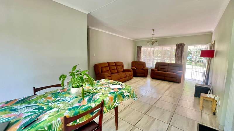 TOWNHOUSE TO RENT - AVAILABLE 1 NOVEMBER Large 3 bedroom townhouse to rent. Spacious open plan living areas and a kitchen with a scullery and a door to the drying yard. Tiled throughout and light and bright. The bedrooms are large and there are 2 bathrooms, one ensuite. Lovely wrap around garden. Double garage with direct access to the house. NO PETS ALLOWED.