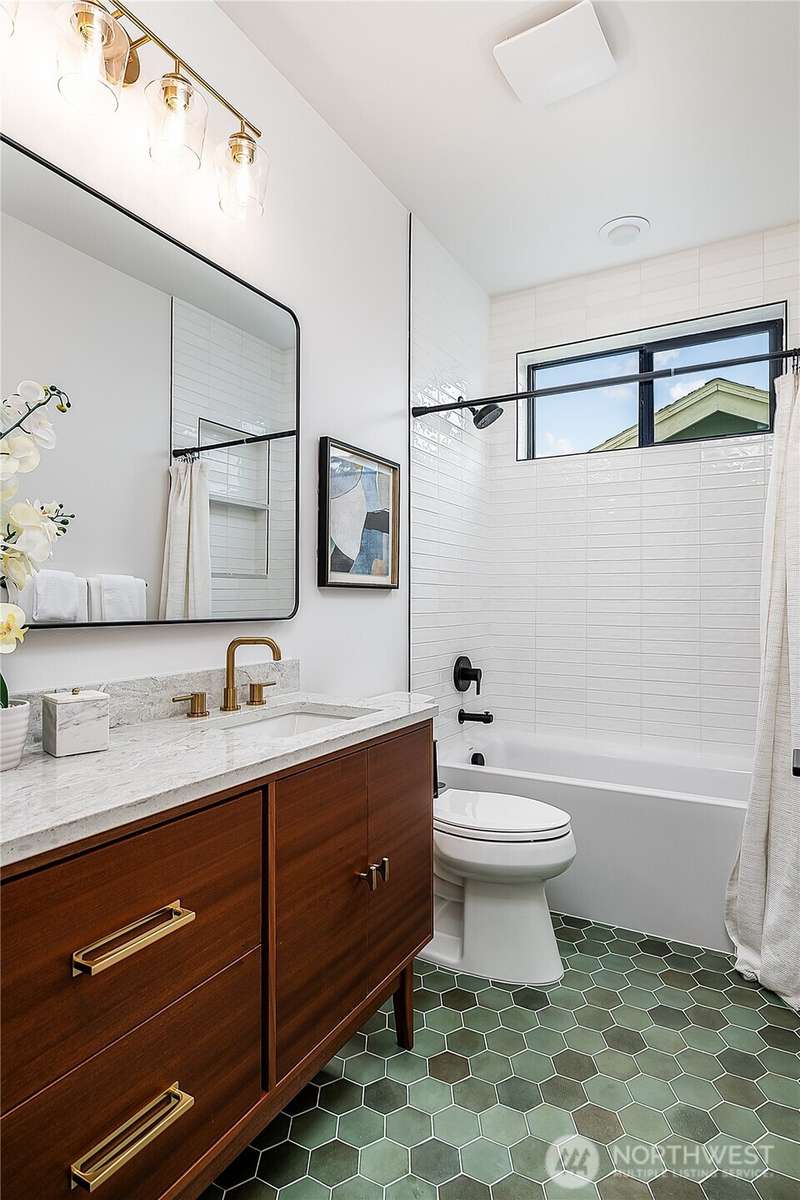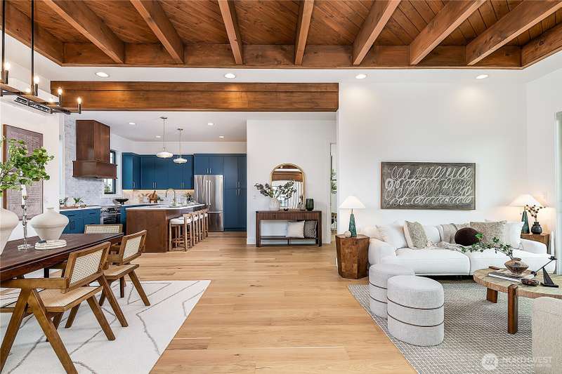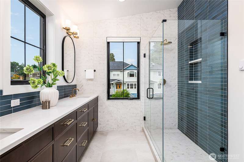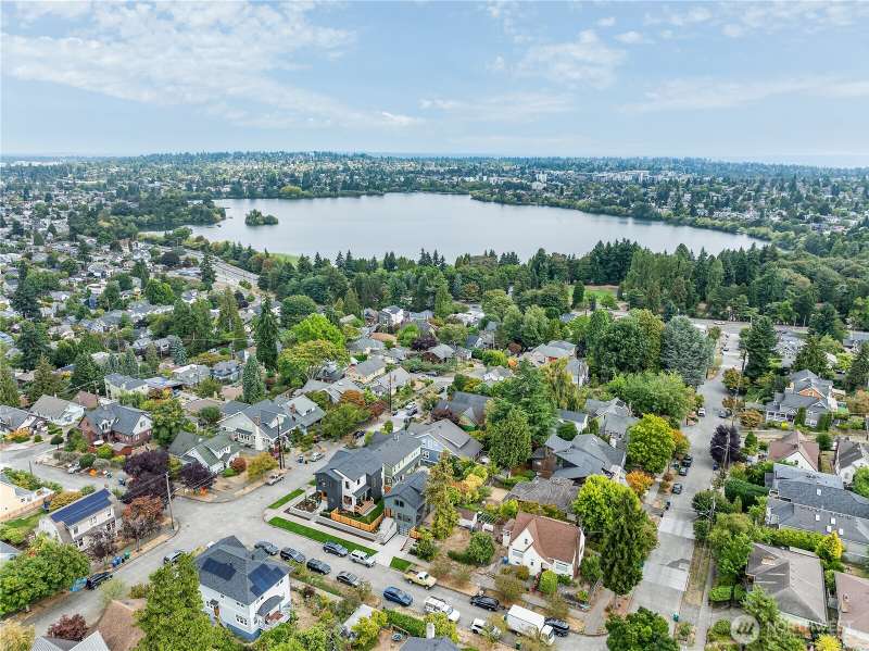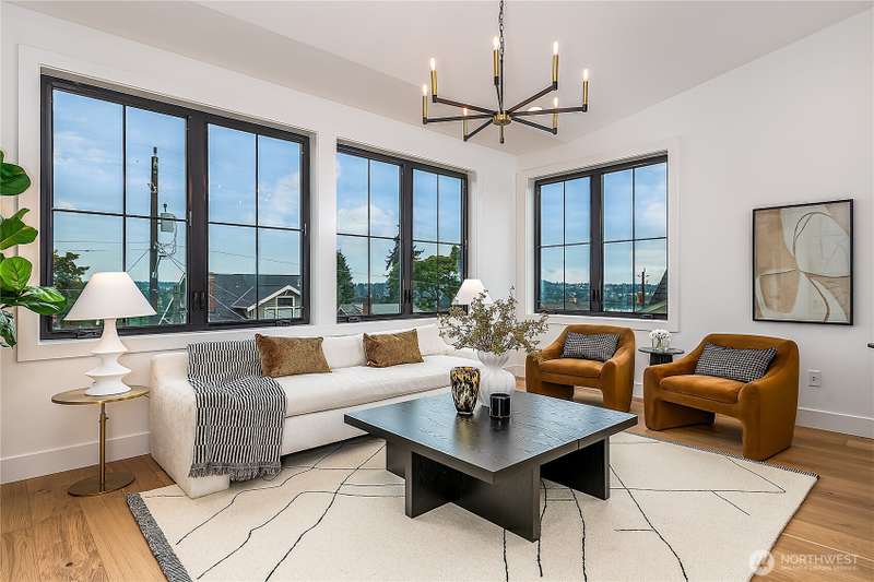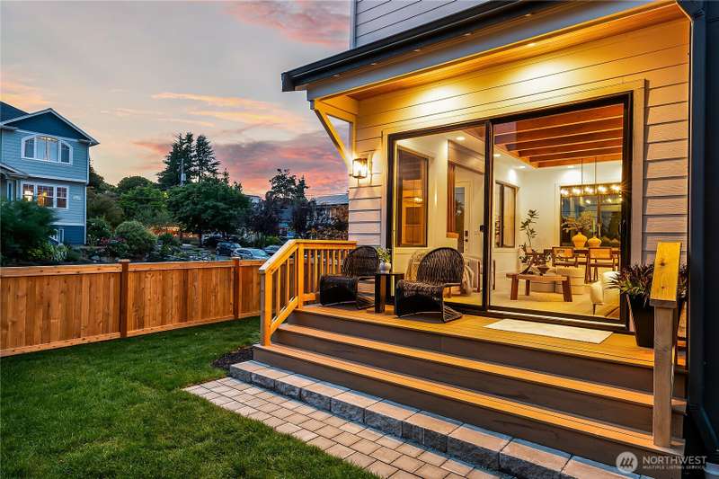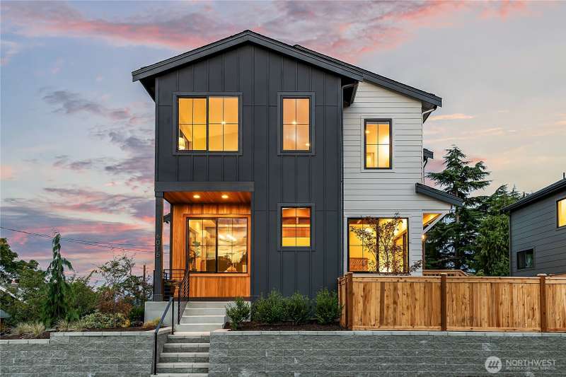 Stunning 5bd/4ba home in Green Lake/Phinney Ridge! This 2,300+ SF home sits on a quiet corner lot w/ standout curb appeal. Main floor features dining/living room, office/bed, full bath, & a stunning kitchen w/ Bosch appliances, quartz island, marble backsplash & wood range hood. Sliding doors open to a deck & fenced yard- perfect for indoor-outdoor living! Upstairs, a large family room (or bedroom) has lake views, & a primary suite offers spa bath, WIC & more views! Daylight lower level has a bed, bath, laundry, & garage. Other features include wide-plank hardwoods, 10’ open-joist ceilings, custom finishes, cat 6 network wiring, & efficient HVAC. Just steps to Woodland Park Zoo & minutes to Green Lake, Fremont, Ballard, & top schools.