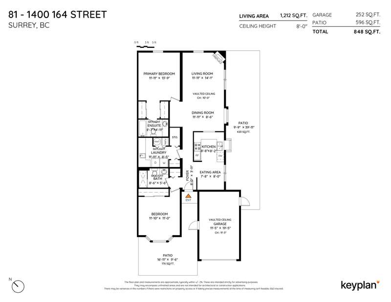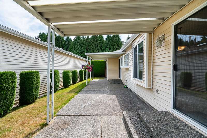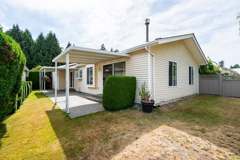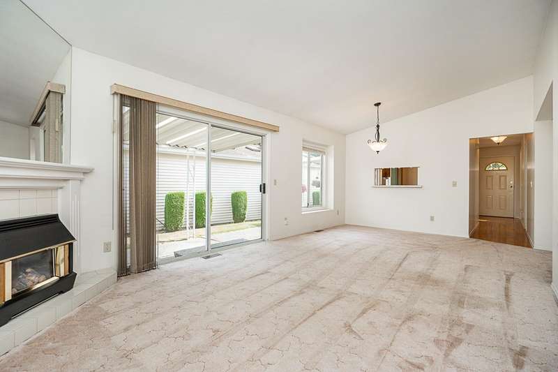 Own your own land with this 2 bed, 2 bath detached rancher (1212 sq ft) in a welcoming 55+ gated community. Functional layout with vaulted ceilings in the living and dining areas, plus patio doors leading to a private patio—ideal for relaxing or entertaining. The main bedroom features an ensuite, while the second bedroom is perfect for guests or an office. Additional highlights include a cozy gas fireplace, ample storage, and single-car garage. Low bare land strata fee of $184/month. Well maintained in original condition—ready for your personal touch. Pet friendly (1 dog or 1 cat) with quick possession available. Close to shopping, White Rock Beach, golf, and Hwy 99, RV parking available. Perfect for downsizers not ready for condo living.