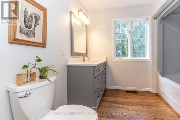 Location, style, curb appeal, value, and income potential this family home offers it all.Located in the sought-after Greenwood neighbourhood of Parry Sound, youre just minutes from downtown, shopping, the hospital, and beautiful Georgian Bay.This home is designed for easy family living, with a spacious living room, modern kitchen, four bedrooms, four updated bathrooms, hardwood floors, and main floor laundry.The well-treed backyard features a spacious deck and hot tub perfect for enjoying peaceful, country-style living.Efficiently heated by a newer forced-air gas furnace and cooled by central air, the home also features both a gas and an electric fireplace for added comfort.A versatile main-floor gym can easily be used as a home office or an extra bedroom, and offers direct access to the attached garage.The lower level features a full walkout to the backyard, a separate entrance, kitchen, great room, bedroom, and 4-piece bathroom making it ideal as an in-law suite or an income-generating rental unit. A must see, arrange a showing soon. (id:16999)