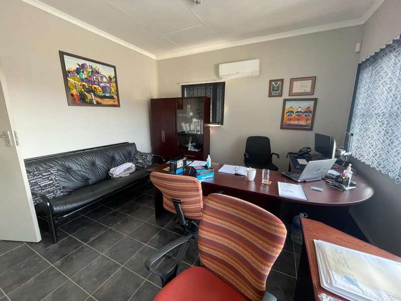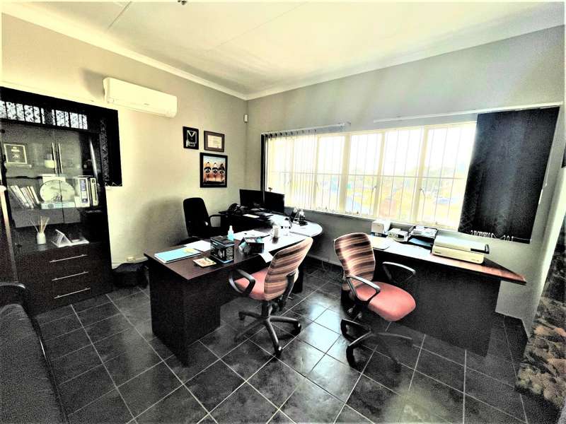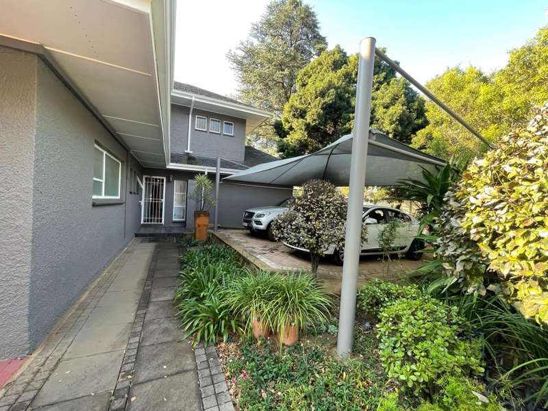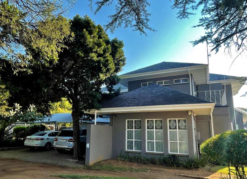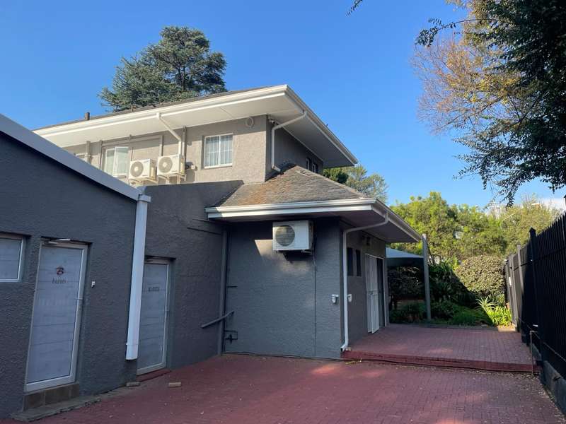 LARGE CORNER STAND EARMARKED FOR HIGH DENSITY RESIDENTIAL DEVELOPMENT HIGH VISIBILITY MAIN ENTRANCE IN A CLOSED OFF QUIET STREET. BOREHOLE This residential property in a prime location offers various possibilities. 660m2 under roof . Ideal for home office, home studio or doctors practice. The original double storey home was renovated in 2006 to make provision for a large open plan office space. It can easily be converted to a commune with a possible 6+ rooms or small units. Extensive parking space. Description Upstairs : * three spacious bedrooms * separate toilet * previous bathroom with water connection points, currently a service room or storage space Downstairs: *a separate flatlet with en suite shower *two extra rooms with guest toilet (can be converted to an en suite bedroom ) *a small reception area with kitchenette and storage room (potential en suite bedroom) * living room, dining room and north facing family room. *KITCHEN , scullery opens to an enclosed court yard *a large open plan office or work space. *NO bathrooms except 1 en suite shower * 5 toilets Outside: *Shade ports for 10 vehicles *Lapa with built in braai *Generator room to facilitate a generator It`s one of only a few larger stands left in this popular suburb . Call to arrange your private viewing now.