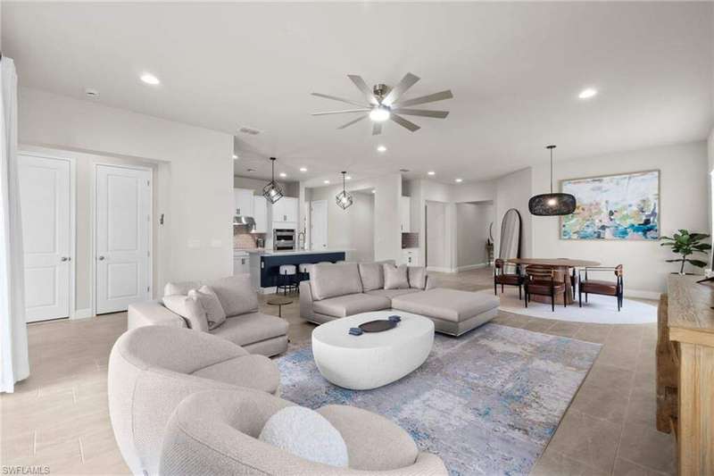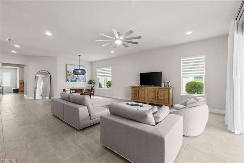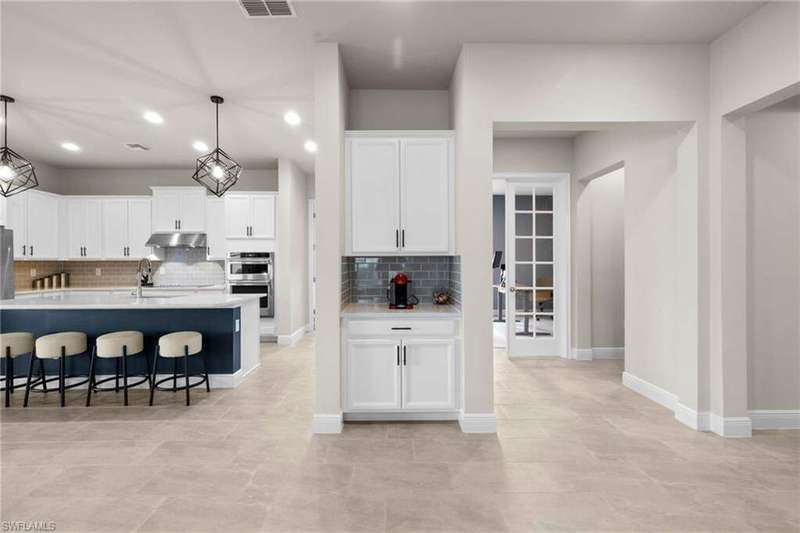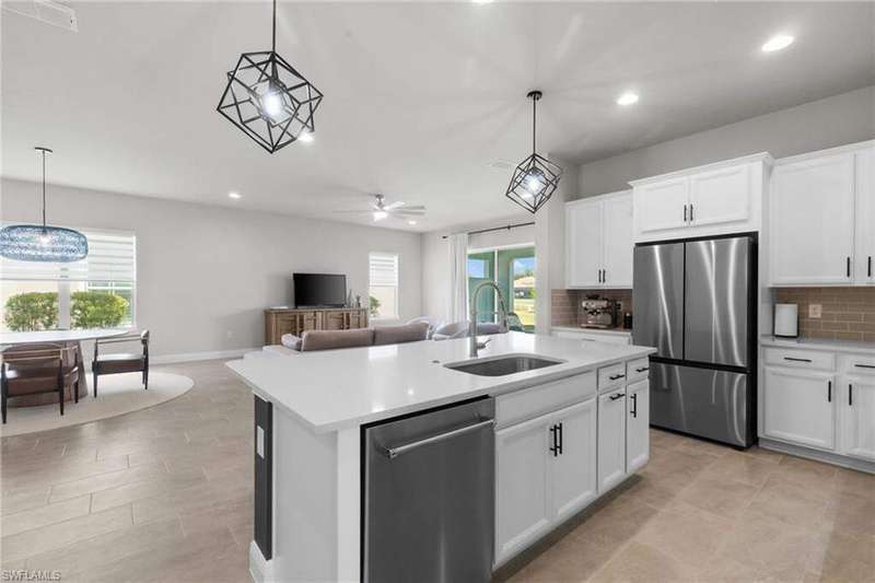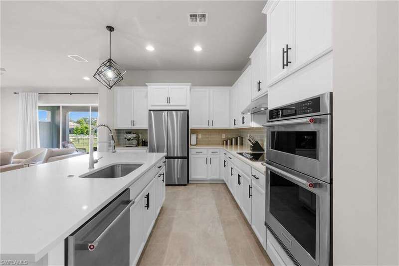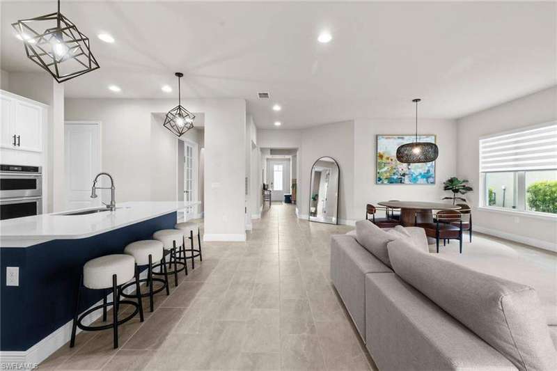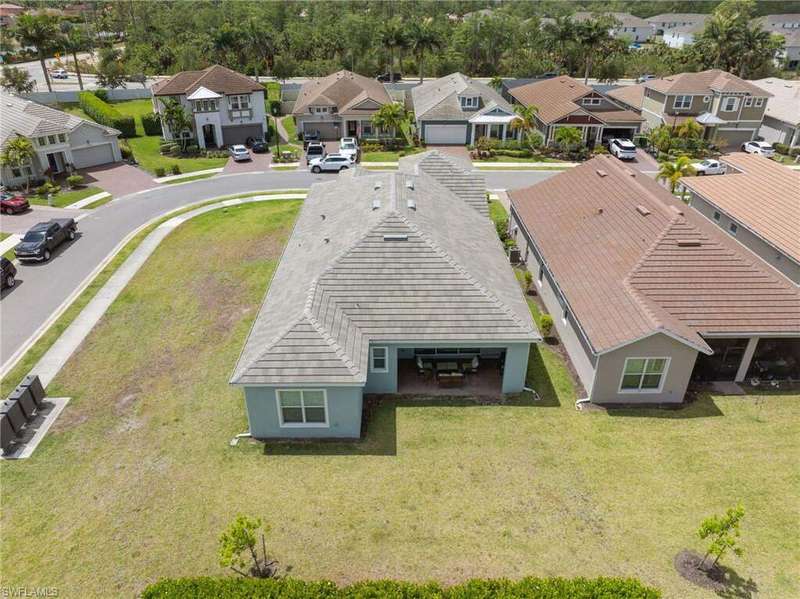Coastal Elegance Meets Modern Living in Compass Landing in Beautiful Naples, FL. Welcome to your dream home in the highly sought-after Compass Landing community in North Naples. This newer construction residence is perfectly positioned on a premium corner lot, offering enhanced privacy and undeniable curb appeal. From the moment you arrive, the coastal charm of this home invites you in. The popular Banyan floor plan features 3 spacious bedrooms, a versatile den, and 2.5 bathrooms, all thoughtfully laid out in an open-concept design perfect for entertaining and everyday living. The heart of the home is a chef's kitchen showcasing quartz countertops, a generous kitchen island with single-basin sink, sleek white shaker cabinetry, and top-of-the-line KitchenAid stainless steel appliances. Interior upgrades abound, including 24x12 light ceramic tile flooring, elegant zebra blinds, designer ceiling fans, statement light fixtures, and more. Every detail has been carefully curated to create a refined, move-in-ready oasis. Compass Landing is a gated community offering the best of Naples living! Perfect for families and seasonal owners alike, with low HOA fees and fabulous amenities such as a resort style pool/spa, fitness center and even a tot lot. Residents also enjoy zoning to top rated schools, quick access to I-75 and the convenience of being just minutes from a plethora of shopping and dining, such as Founders Square. Don't miss this opportunity to call this North Naples home YOURS!