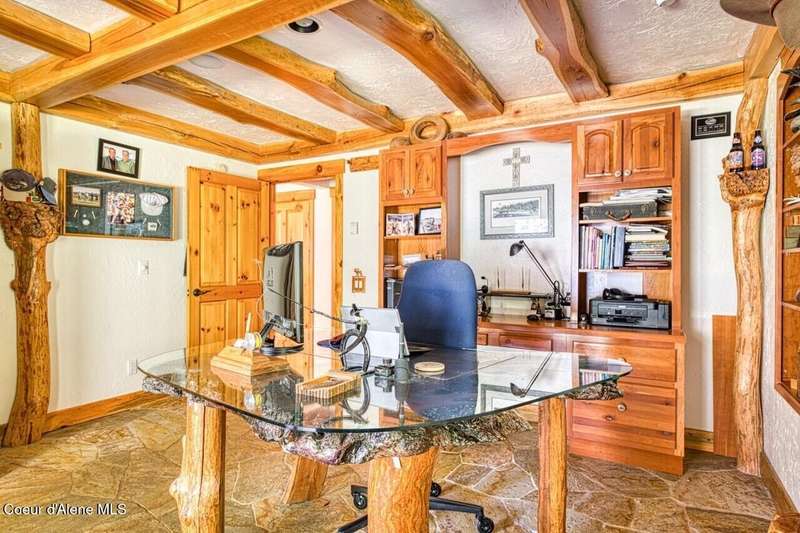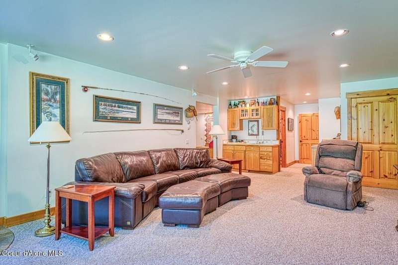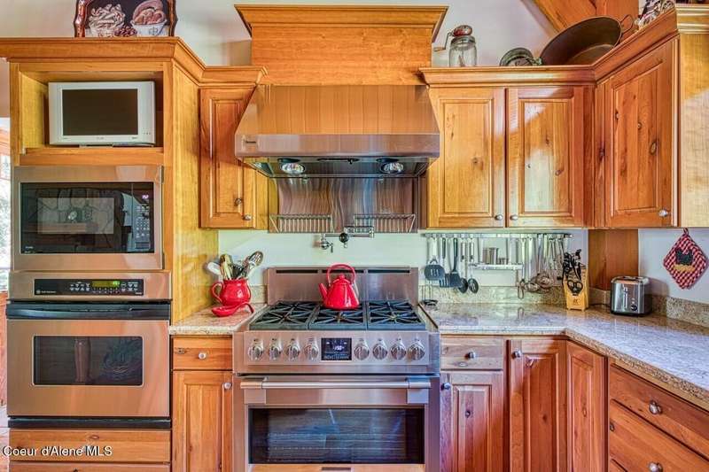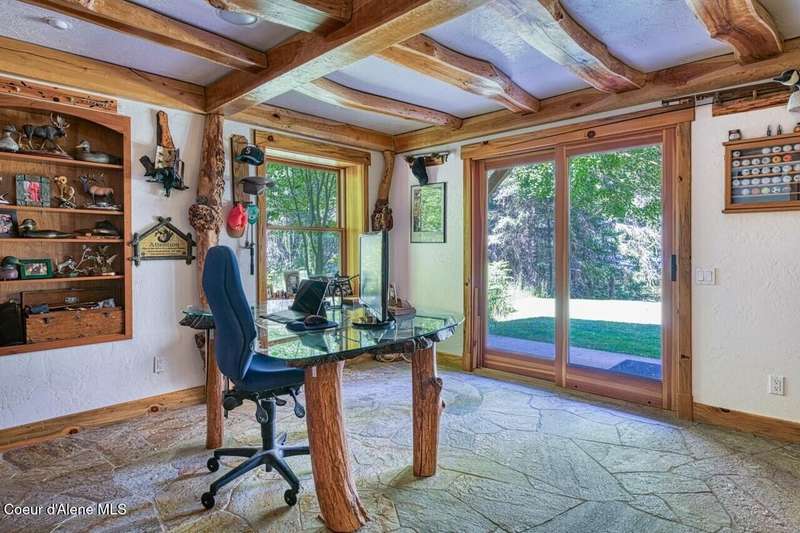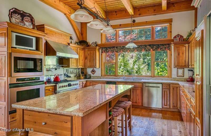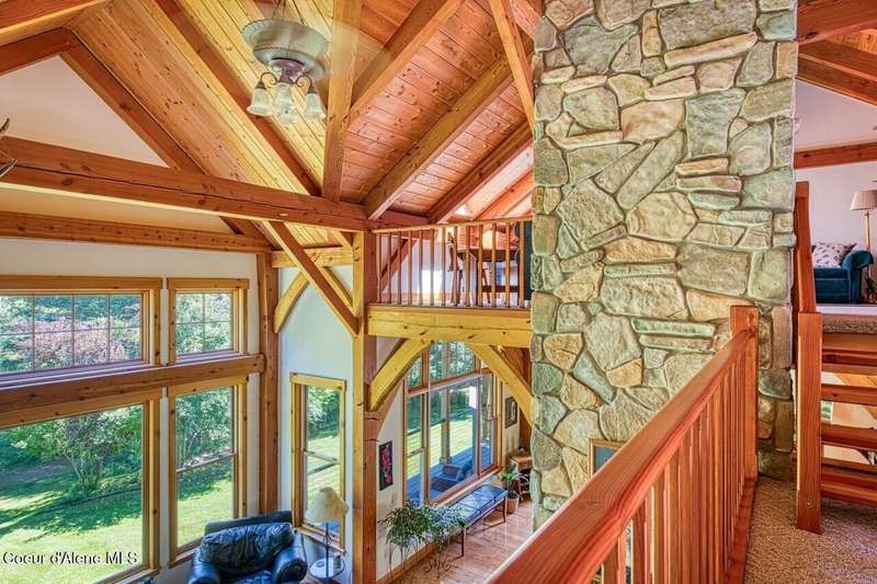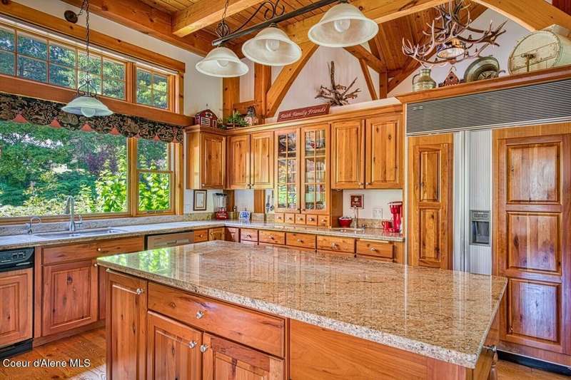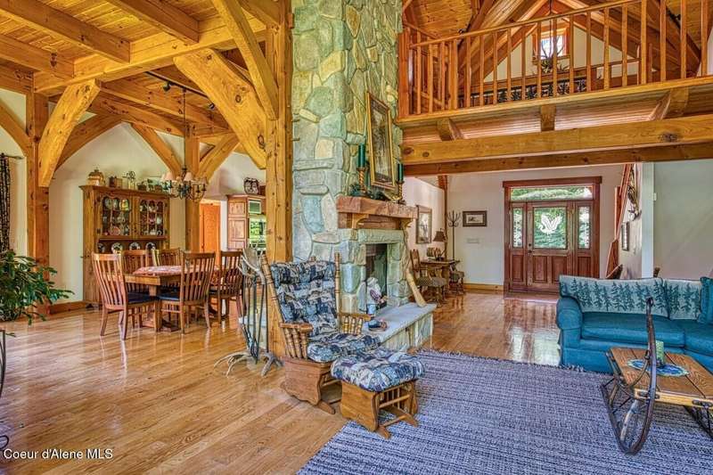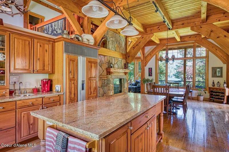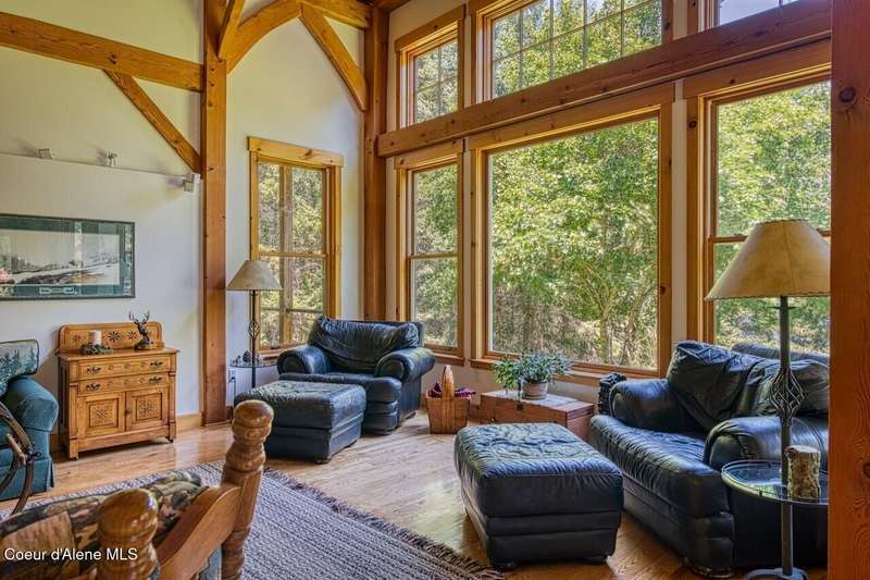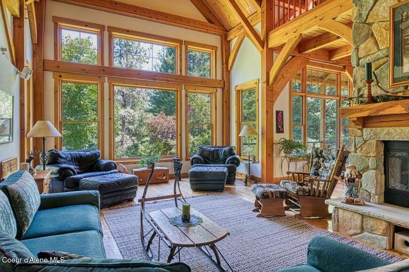 Resting on the peaceful waters of the Clark Fork River with its own dock, this one-owner true timber frame home offers exceptional craftsmanship, privacy, and modern convenience in a stunning natural setting. Constructed with durable SIP panels, the home features ''Idaho Gold'' real stone flooring, rich hardwood oak floors, and warm knotted cherry wood accents throughout. The open-concept interior is wired for surround sound and showcases a soaring great room with exposed beams, includes a see-through, wood-burning fireplace plumbed for propane, and expansive windows that frame big mountain views and the forested surroundings. The gourmet kitchen is fully equipped with a Sub-Zero refrigerator, cherry cabinetry, granite countertops, a vegetable sink, pot filler, and a garbage compactor. On the main level, the spacious primary suite has its own porch access and includes a tile shower, jacuzzi tub, and dual sinks. Above the impressive great room, resides a full guest suite with full bathroom, second living room and bunk room, perfect for kids and grandkids alike. Welcome even more guests and family with the bonus bedroom above the garage, offering its own full bath, and baseboard heating. Potential for a mother-in-law suite with plumbing for a future kitchen already in place. Downstairs, the fully finished walkout basement includes a den, with cozy propane stove, built in half kitchen with small sink, fridge and washer/dryer combo unit. Downstairs patio wired and plumbed for a hot tub. Additional features include an on-demand water heater, central vacuum system, two septic tanks, a whole-house generator (also powering the well), and ample storage including a custom pantry and "secret" wine cellar. The fully insulated and heated drive-through shop accommodates a 48' RV and features a three-quarter bath, laundry hooks ups, office with wall heater, RV hookup, commercial-grade racking and upstairs storage. With the public boat launch just one parcel away, 38 miles of navigable pristine waters are at your door step. Bass, walleye, pike, perch, bluegill and trout abound! A short drive to charming Trout Creek, with restaurants, grocery store, hardware and more. Comfortable driving distance from Glacier, Yellowstone, Quake Lake, Swinging Bridge in Kootenai Falls, Flathead Lake, shopping in Whitefish, skiing in Sandpoint. This is a rare opportunity to own a truly custom, high-quality Montana retreat built for comfort, utility, and timeless beauty.
