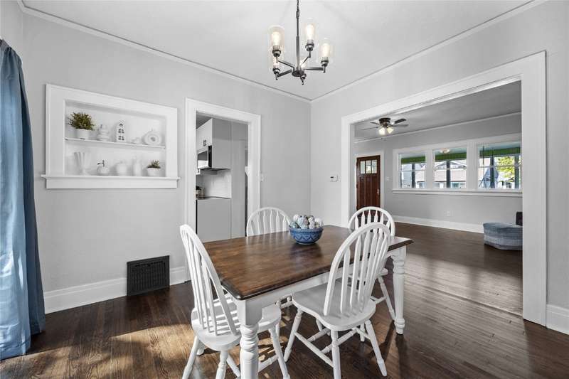 Welcome home to this beautifully updated 1920s gem–the perfect blend of historic charm and modern comfort. Step inside to find a warm, inviting living room and formal dining room, complimented by original, beautifully refinished hardwood floors. The bright, updated kitchen features all new appliances. Upstairs, you’ll find three bedrooms with original hardwood floors and a freshly updated bathroom that complete the inviting interior. The walk-up attic and basement with full bathroom and newer furnace provide tons of additional storage or the potential for additional living space. Relax on the screened-in front porch or unwind in your private backyard oasis. The spacious deck, patio, and fenced yard are perfect for entertaining, gardening, or simply enjoying a peaceful evening outdoors. A one-stall garage with attached storage shed and parking pad provide convenient access from the alley. Move-in ready!