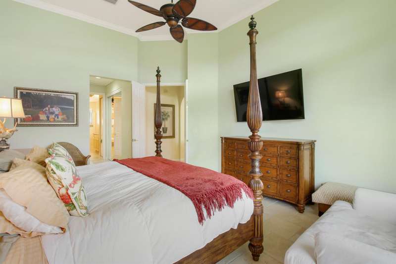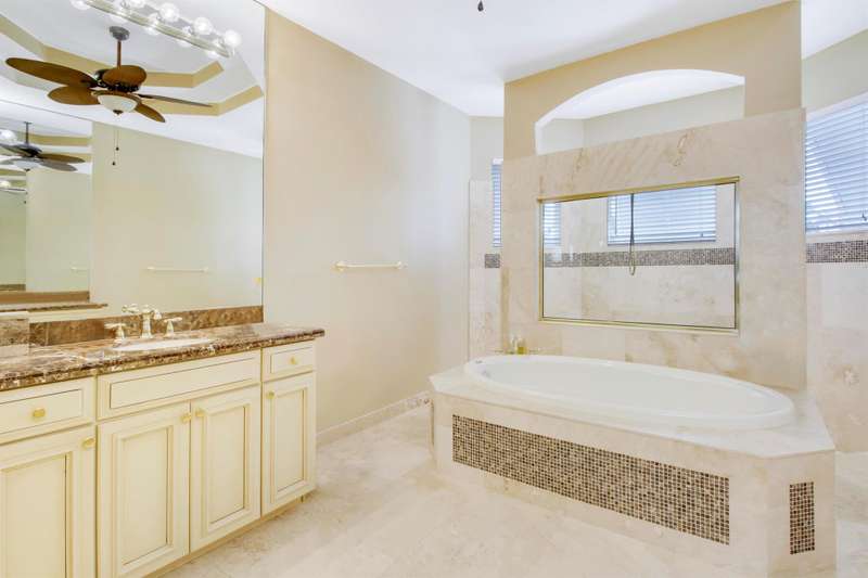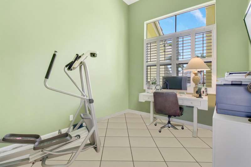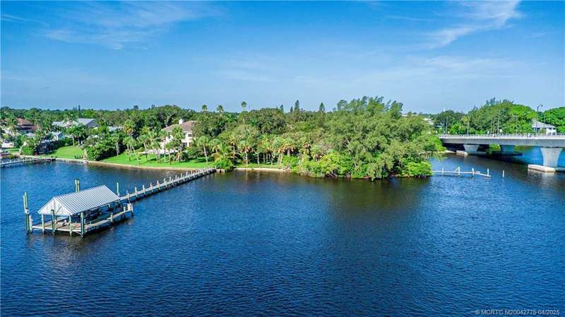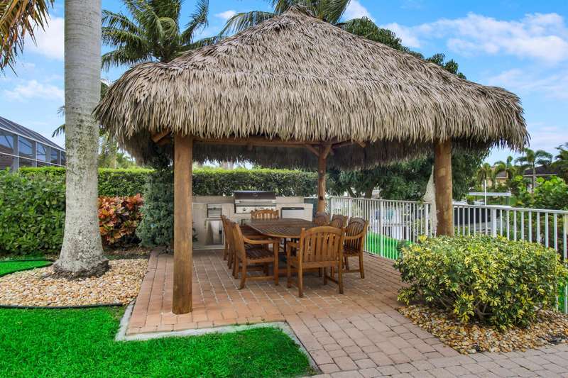 Come see this impressive waterfront pool home located in a gated boating community. This 4 bedroom (plus den/office), 3 bath home is on a deep-water canal with a dock (updated in 2020) and a 13K lift located behind the home with ocean access and no fixed bridges. Great outdoor living with a fenced backyard with an awesome heated saltwater pool and a Tiki Hut with a built-in outdoor style kitchen, lush landscaping and on a corner-lot add to a private setting. The interior of the home is nicely appointed with formal dining and living room and a large combo kitchen and family room. The kitchen comes with stainless steel appliances, 42'' cabinets, granite countertops, double oven, and a center island. Large 3 bay garage allows for good storage. Both A/C units replaced in 2023. Whole house Gen