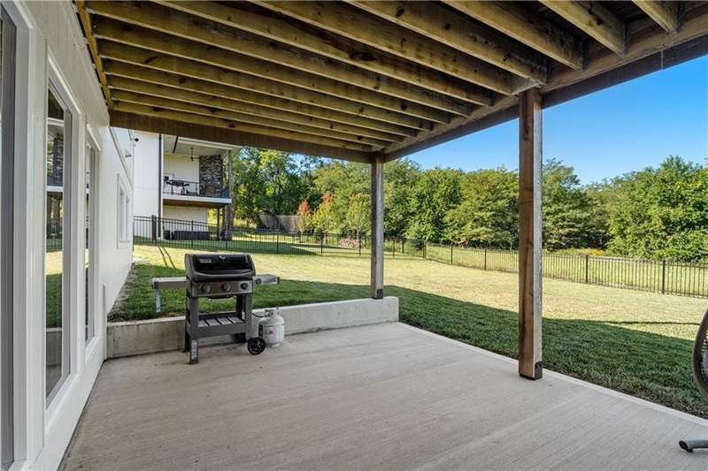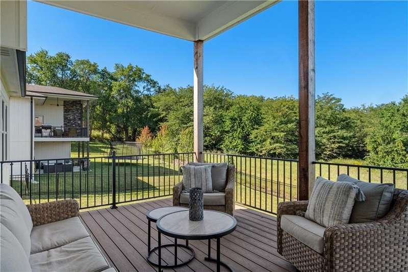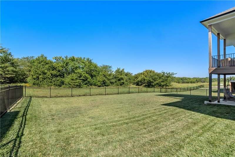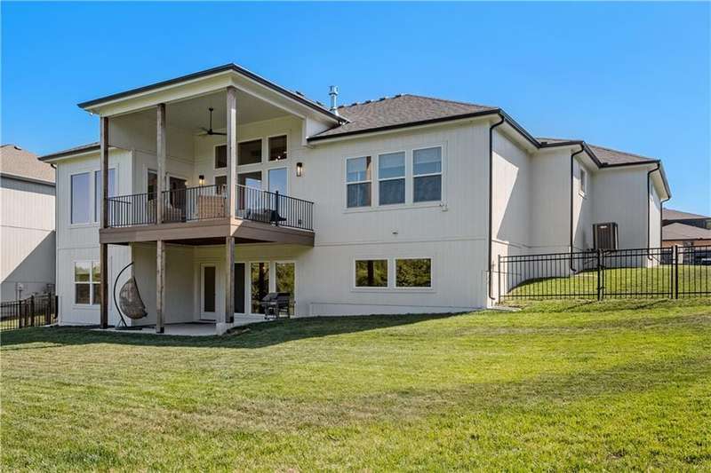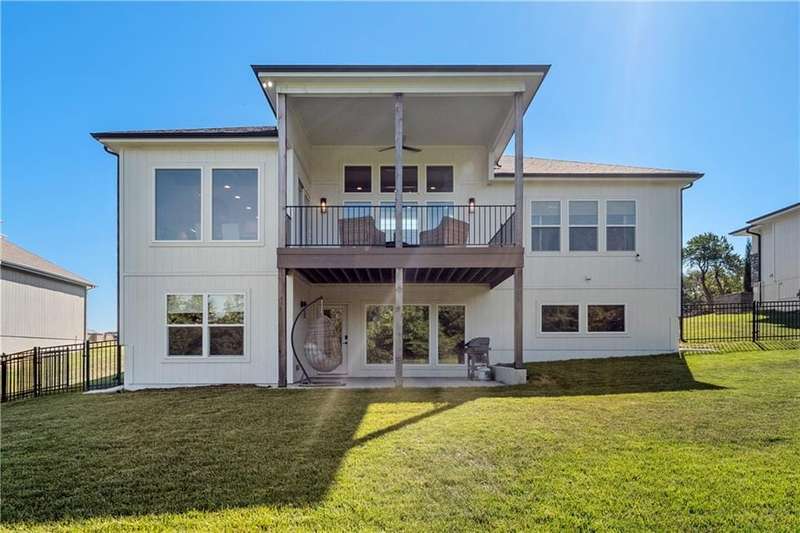 Better-than-new, Ranch/Reverse home with 3 bedrooms on the main level and newly built in 2023! This pristine property has today's designer colors and finishes, and includes upgrades like a wrought iron fence, security system, and custom window treatments. Located in the highly sought-after Lees Summit school district, the home sits on a quiet cul-de-sac lot backing to trees, with 4 bedrooms, 3 full bathrooms, a covered deck and full walkout, with a spacious 3-car garage.Enjoy the ideal Ranch-style floorplan with 3 bedrooms and 2 bathrooms on the main level, plus a 4th bedroom, full bath, and rec room with wet bar in the partially finished walkout basement. The spacious and open layout features soaring ceilings, tons of natural light, and stylish design selections throughout.The beautiful primary suite offers large windows, a vaulted ceiling with chandelier, double vanity, separate tub and shower, and an oversized walk-in closet with direct access to the main floor laundry.Outside, enjoy the fenced-in yard and peaceful view. Youll also love being just steps from the neighborhood pool, with an expanded playground and covered BBQ area coming soon!Back on Market - no fault of seller. Contingent buyer home didn't sell. GREAT HOME and Excellent Opportunity!