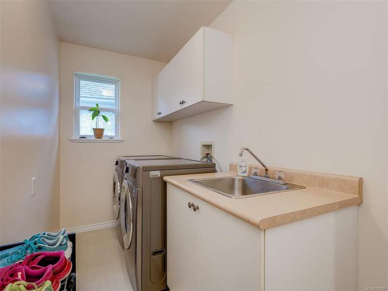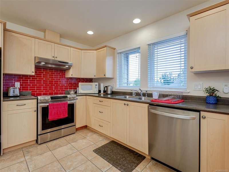 Welcome to Christmas Hill, a sought-after neighborhood known for its charm and convenient location. This beautifully maintained home is on a quiet, family-friendly street. Steps away from schools, nature, amenities and transit. The main-floor primary bedroom features a 4-piece ensuite, while two spacious bedrooms and a full bath upstairs offer flexibility for family or guests. The bright living/dining area includes a cozy gas fireplace and oak hardwood floors. The kitchen has new stainless steel appliances, as well as a stainless steel washer and dryer.Additional highlights include a new heat pump, hot water tank, underground sprinklers, ample storage, and a fully fenced yard—perfect for kids, pets, or outdoor relaxation.