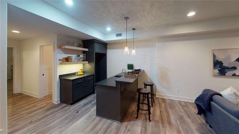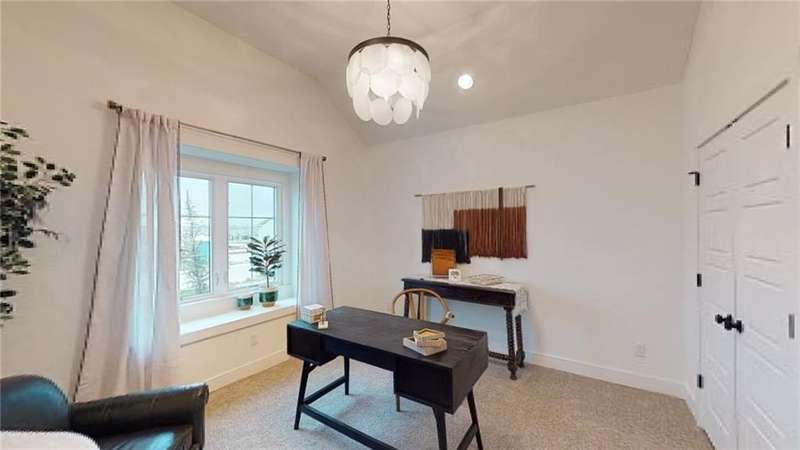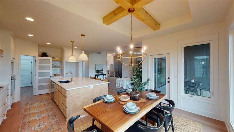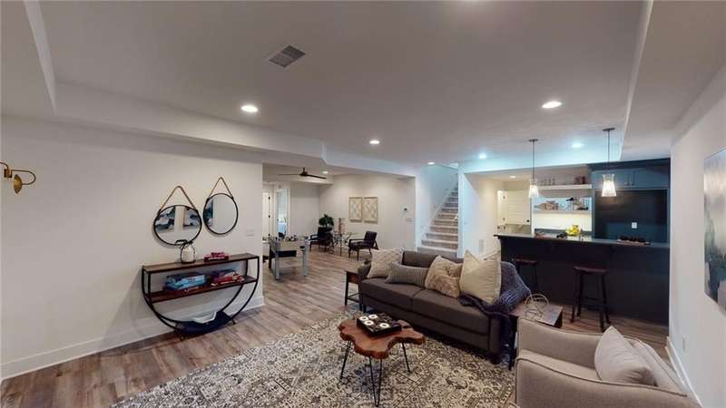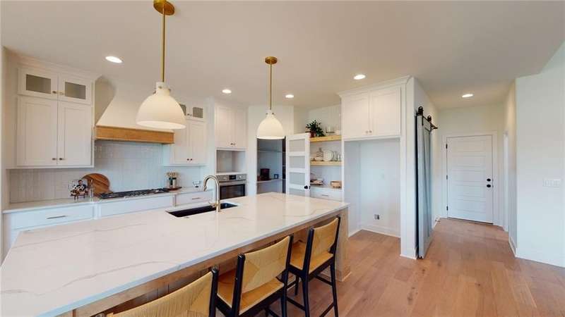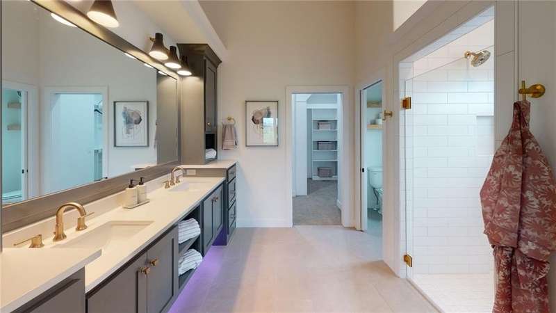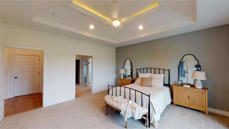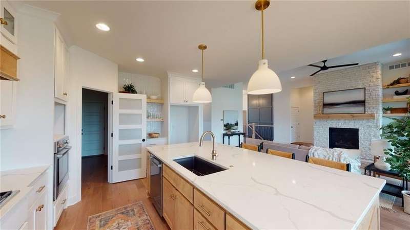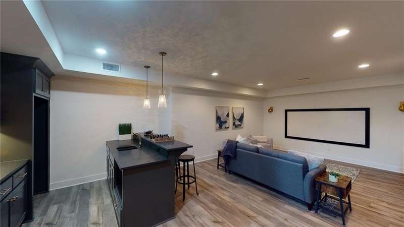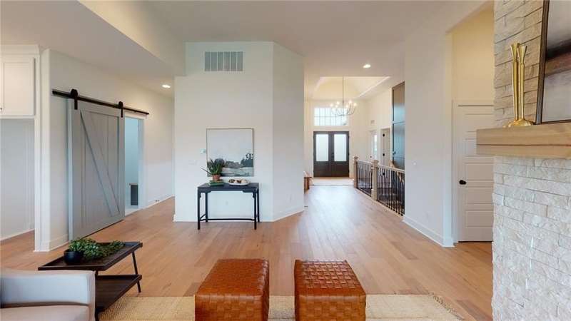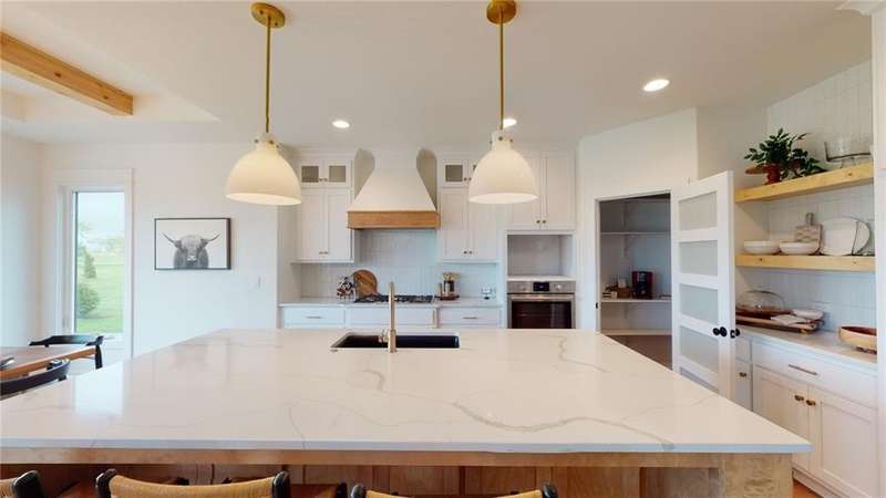 Lot 121. The Everest II plan by Dreams and Design. Backs to the Lake! Suspended Garage with rear side path to the extra garage for the golf cart! Open great room/kitchen/dining with an abundance of windows that provide natural lighting. This home has many upgrades including double front door leading to 11'x11' foyer, programmable lights, a second fireplace and lvp flooring in lower level, stair lights, barrel vault with indirect lighting, under stair playroom with dutch door, to name a few. The Primary suite is located on the main level with walk-in closet with 4 sets of metal pull down bars and a luxury bath with a beautiful tiled shower. Finished lower level includes rec room, media area, 1.1 baths, 2 bedrooms, and a bar! Covered patio. Enjoy golf course living in a great location, close to everything! Convenient highway access. Ten minutes to the Legends and 30 minutes to the airport and most other parts of the metro area as well as Lawrence. Community pool, play area, basketball and pickleball courts. Area restaurant open to the public. Acclaimed Basehor-Linwood Schools! Call listing agent for complete details. Other upgrades include Toe Kick Vac Pan in kitchen with canister in garage & hose attachments to vacuum cars, utility sink and freezer outlet in garage, 100k BTU 96% furnace variable speed, 4 ton - 16 SEER air conditioner variable speed, IAQ humidistat to automatically adjust humidity, F100 media air cleaner, 2 zones (main & 2nd floor) – 2 thermostats, two 50 gallon electric water heater, insulated garage, Energy Star 3.2 and more!!