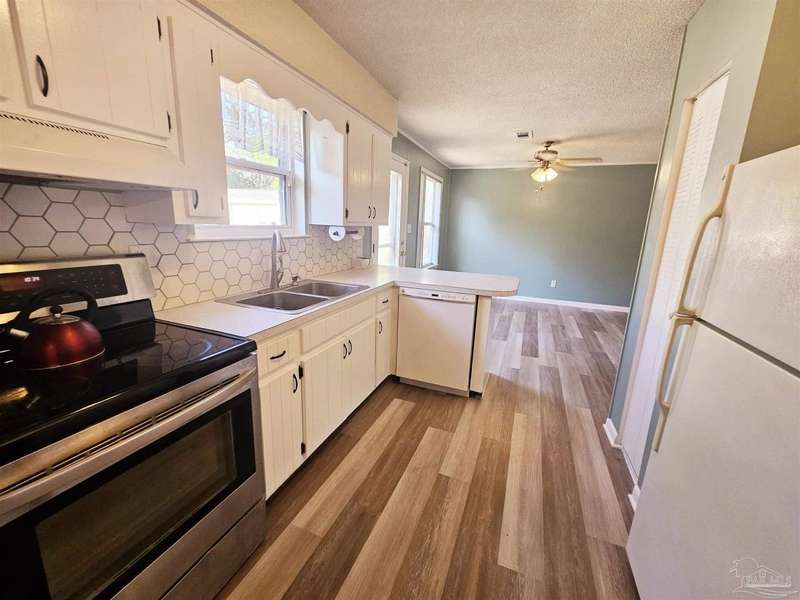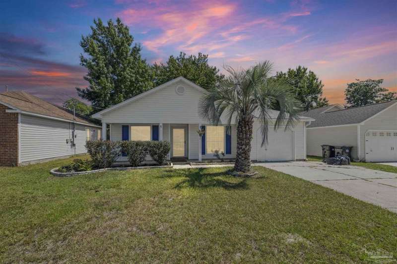 This charming 3-bedroom, 2-bathroom home offers 1,620 sq. ft. of living space, all new flooring-luxury vinyl plank in common areas and new carpet in bedrooms-plus a refreshed kitchen with a beautiful tile backsplash. A converted garage provides a flexible bonus room, perfect as a second living area, office, or potential fourth bedroom. One bathroom features a walk-in tub for added comfort. Major upgrades include a tankless gas water heater (2017), roof (2017), updated copper wiring, and a new septic drainfield which was replaced and expanded (doubled) in 2023. Enjoy the spacious backyard, complete with fruit trees (citrus, pomegranate, olives, elderberry, blueberries, aloe, grapes, pecan), a fire pit, and a 12' x 20' finished garage-insulated and wired for electric, just add an AC unit and have your own secluded office space or the He/She Shed of your dreams. There are also two additional storage sheds on the property. This home blends indoor comfort with outdoor charm-ready for you to move in and make it your own!