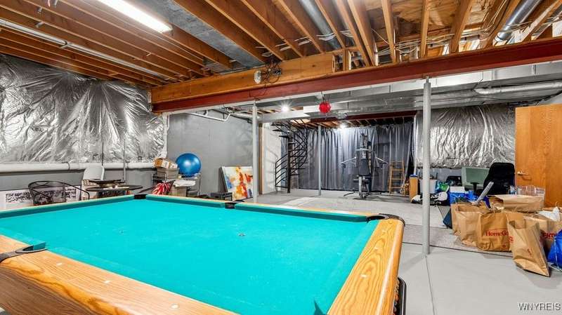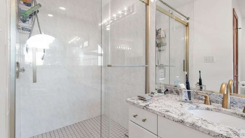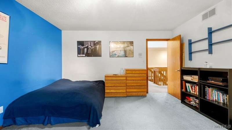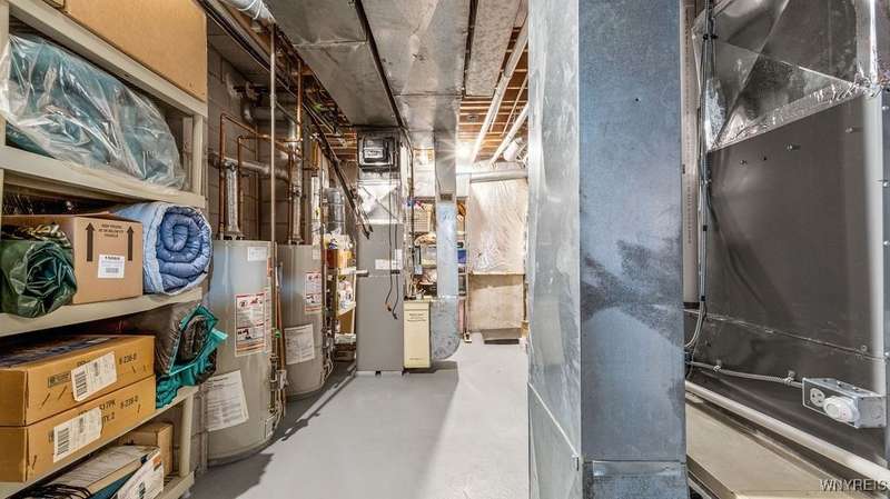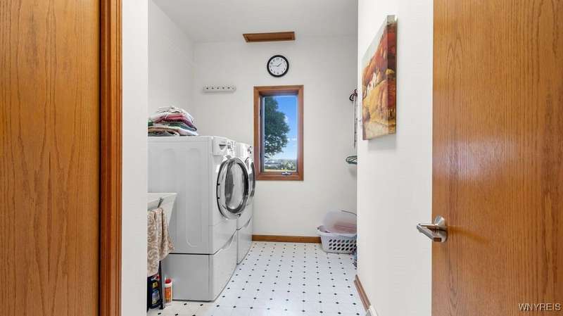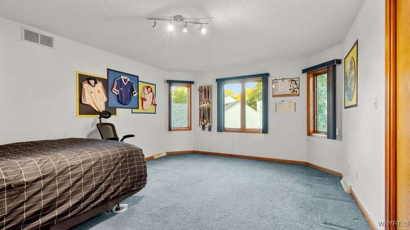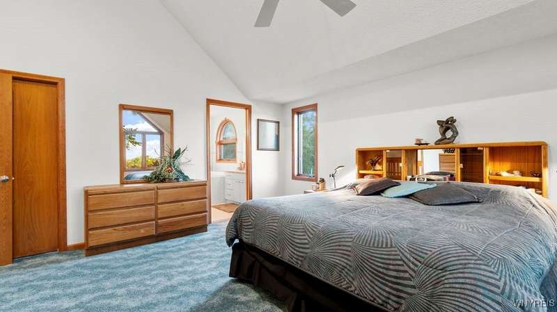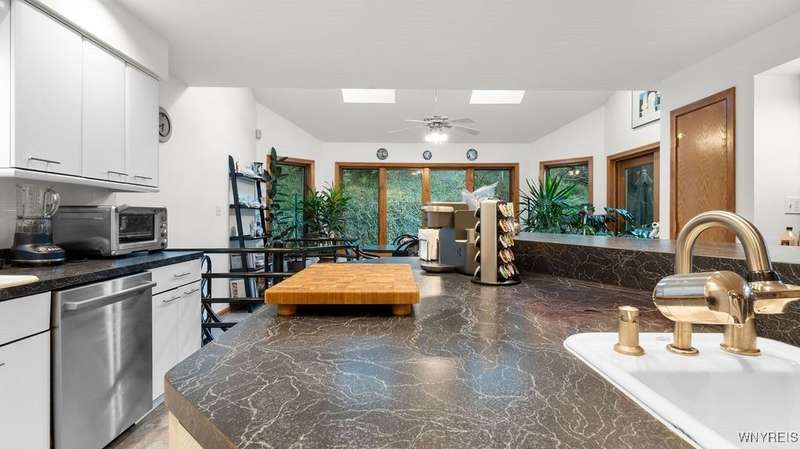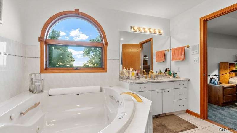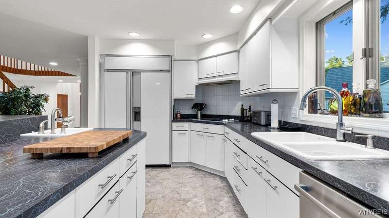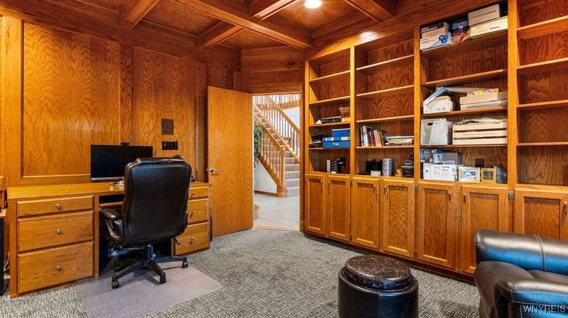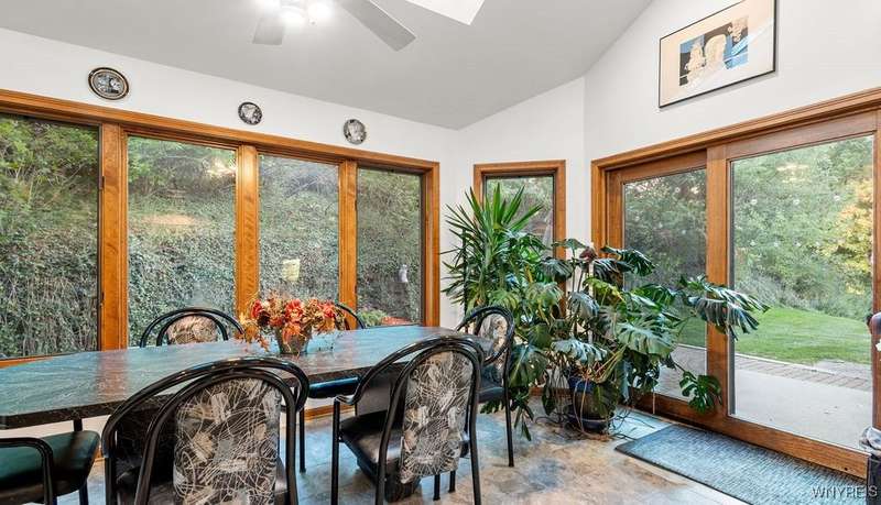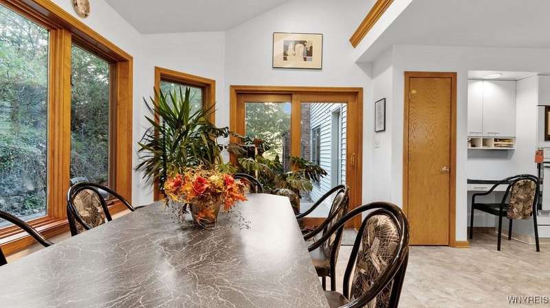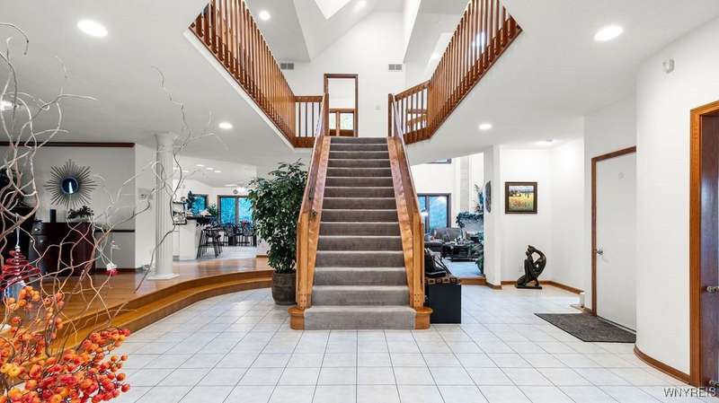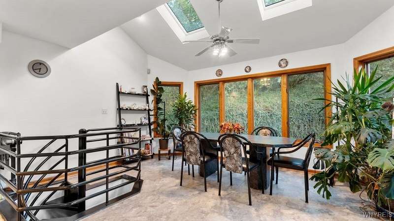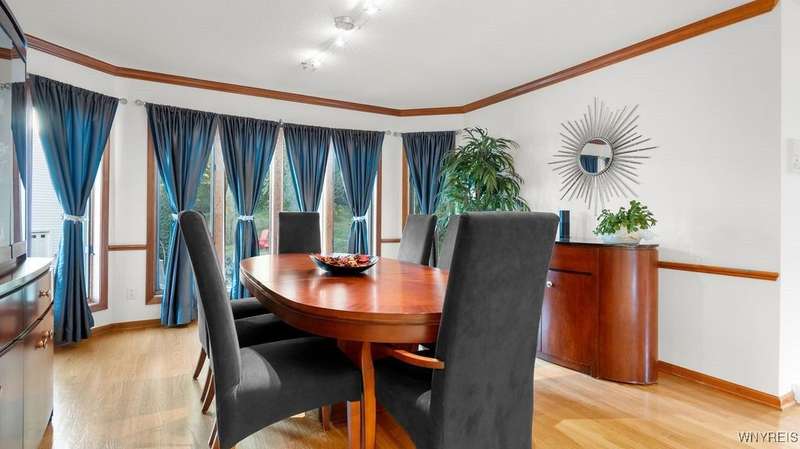 Constructed atop the Onondaga Escarpment, this wondrous property now awaits YOUR family. Perfect for guests, natural light pours in 10 ft-high rooms, with privacy to the rear. Spacious, bedrooms with walk-in closets. Home may also live as a ranch; good for all mobilities! Start your day in the breakfast-friendly kitchen, relax in your office/den, or in the privacy of your backyard patio. All appliances and three gas fireplaces are in perfect working order. Built on rock, the dry basement boasts enough storage and game space - with a lovely theater for movie night. Updates from 2024 include high-efficiency furnace and central A/C, granite master bathroom, sliding glass door, and garage floor. Difference of 216 in sq. ft (4,107 sq. ft. - 3,891 sq. ft.) is indicated on the home's blueprints.