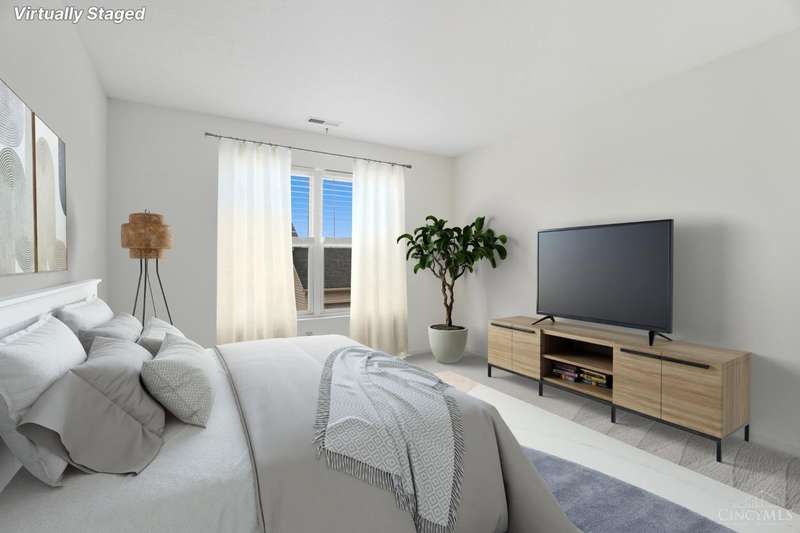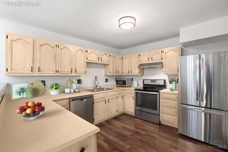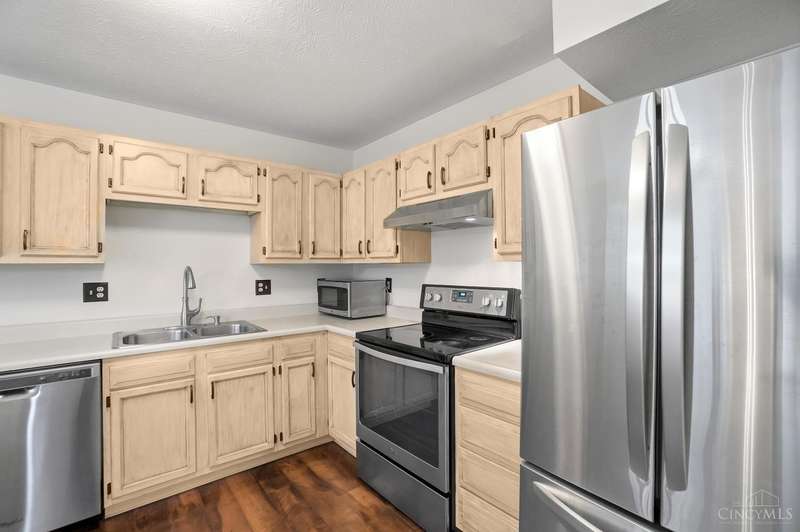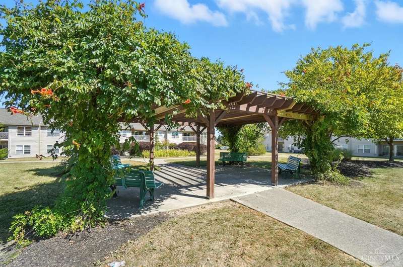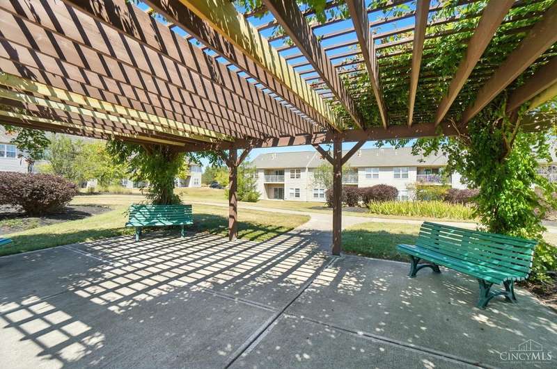 Freshly painted and move-in ready 2nd floor condo with private entrance and vaulted ceilings! 1,232 sqft. This 2-bed, 2-bath home features walk-in closets, new carpet in bedrooms, and easy-care laminate in living/dining areas. Bright living room with gas fireplace opens to a private balcony overlooking greenspace. Spacious kitchen offers ample counters and stainless appliances. Separate laundry room includes washer & dryer. 1-car attached garage. Enjoy the peaceful community with gazebo, plus easy access to I-71/I-75, parks, shopping, and dining. Immediate occupancy!