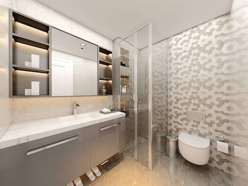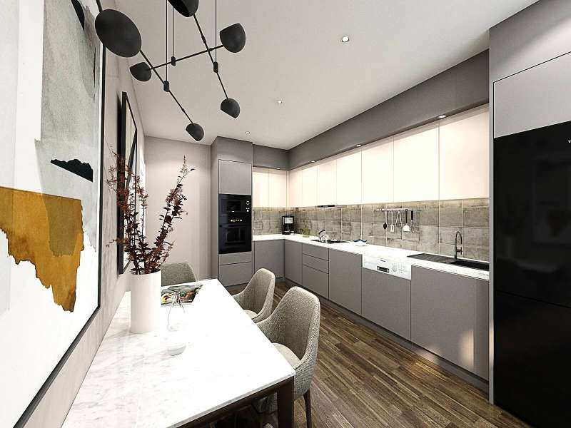 The complex with a private beach includes different types of apartments with different room numbers. Flats for sale will be delivered with electric and water infrastructure, isolation systems, kitchen and bathroom cabinets, floorings, lighting, interior and exterior doors, balcony parapet and stair rail, and also bathrooms with shower cabins.
