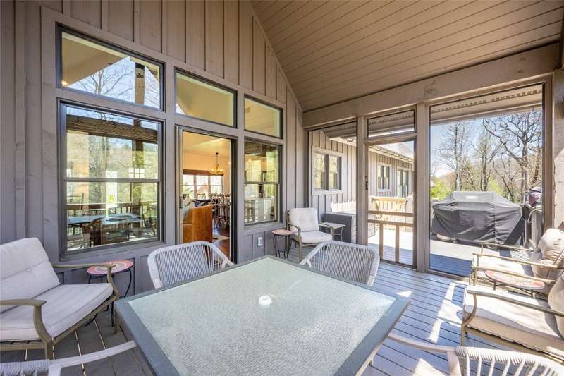 Discover the perfect blend of comfort and mountain living in this meticulously maintained home. Boasting an open floor plan, the main level is ideal for both everyday living and entertaining. The living room features a stone fireplace, perfect for gathering on cool evenings. Step out onto the expansive screened porch or enjoy the nearby fire pit for outdoor relaxation. The main level includes the dining room, kitchen, and laundry room, along with the primary suite, offering convenience and privacy. The lower level enhances the home's functionality with a family room that includes a wet bar, two guest bedrooms, and an additional porch, creating a versatile space suitable for either hosting or quiet retreats. Located in the gated Natures Walk section of Chinquapin, this home is within close proximity to the community clubhouse, which features a fitness center, pickleball courts, a driving range, disc golf, and a dog park. Outdoor enthusiasts will benefit from Chinquapin's 2000 acres of private land, known for its opportunities for hiking, biking, fishing, and canoeing, and nearby Panthertown Valley, which is only a mile away. A short path from the property leads directly to the peaceful Tulip Pond. Whether intended as a year-round residence, seasonal retreat, or rental property, this move-in-ready home allows for an immediate start to enjoy mountain living.