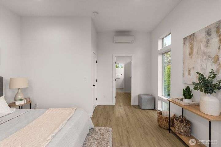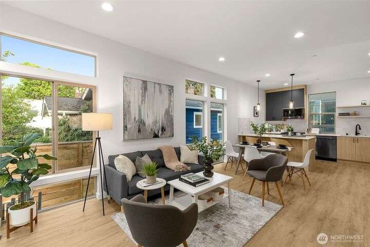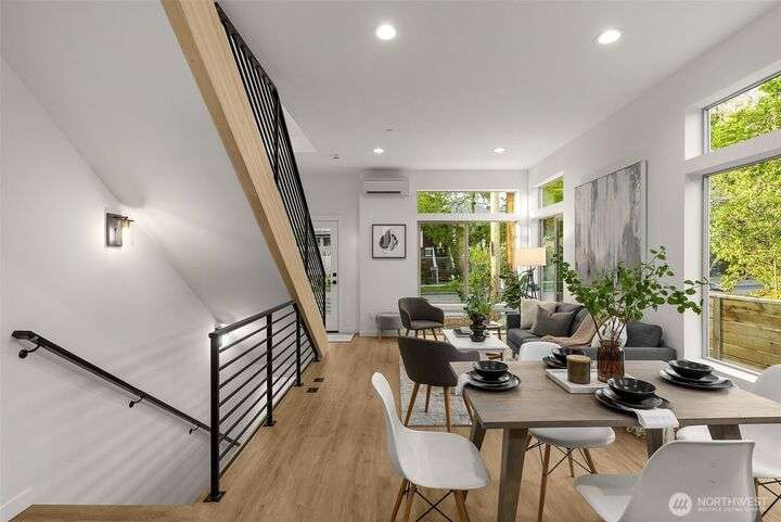 2.99% FINANCING AVAILABLE at Arlo in Wallingford by Greencity Homes! This home is the largest and only one of its kind in the collection - boasting 4 beds, off-street parking & sweeping city, lake & Mt. Rainier views! This floor plan hosts a dedicated primary suite level, separate guest quarters, open-concept living, high ceilings, and expansive windows that let the sun flood the home with natural light. Climate control with ductless mini split heating/cooling, luxury black stainless steel appliances, quartz-topped counters & a huge amount of storage space within custom cabinetry, plus all the nuances you love about new construction. All this with a 94 Walk Score leading to an assortment of eateries, activities & transportation!