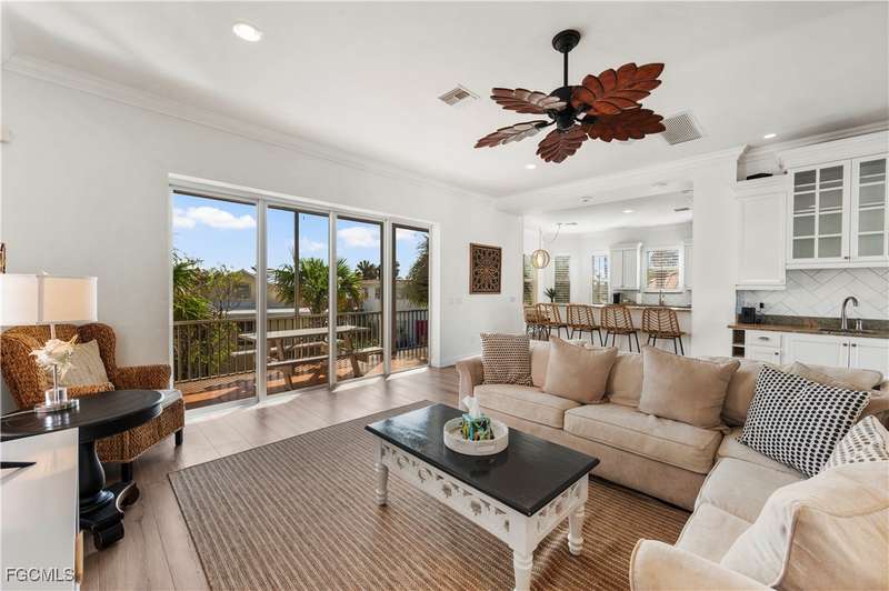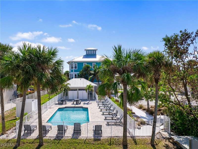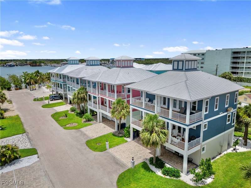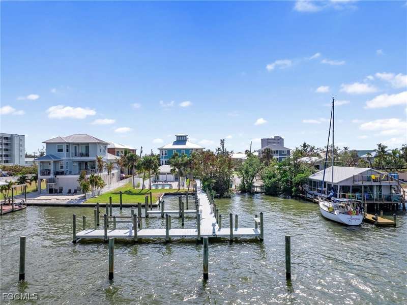 Storm-tested, income-producing luxury vacation home on the bayfront of Fort Myers Beach’s highly sought-after north end priced to sell! This elevated 4 bed, 3 bath near beach retreat includes a private dock with dedicated slip (or rental potential if not used), and shares a heated pool and cabana with just three other homes. Built to exceed modern hurricane code and fully updated in 2023 with $200K+ in improvements, the home offers open-concept living, gourmet kitchen with high-end appliances, turnkey furnishings, and beautiful bay views. Proven rental income with opportunity for more with bookings in place. Ideal for a second home, 1031 exchange, or portfolio investment—this is one of the best-priced bayfront homes on the island. What are you waiting for? Start enjoying the ICONIC VIEWS of Matanzas Pass & the world famous Shrimp boats while experiencing the very best of the Fort Myers Beach lifestyle here! Extremely PEDESTRIAN FRIENDLY location in the heart of all the action just moments to Margaritaville, Times Square & the Pier while directly across the street from the future Neptune Inn redevelopment & right around the corner from Diamondhead resort & the annual Sandcastle Championship plus bike & golf cart rental right around the corner makes this a very lucrative investment property especially with WEEKLY rentals! Rare to find over 1,700 SqFt of patio space to immerse yourself in all of the incredible views from Sunrise to Sunset & enjoy the cool Florida breeze! Elevated construction exceeding code with concrete block through the 1st living floor, all impact windows & doors plus metal roof will stand up to the worst storms while providing great peace of mind. Oversized 2 car garage with great lower level storage space with plenty of room for all of your beach gear, bikes & kayaks which you can launch from the dock. Close proximity to the bridge for convenient access on & off the island minimizes time in traffic greatly! Don’t miss your chance to be a part of the renaissance of Fort Myers Beach with plenty of restaurants & entertainment options available in walking distance!