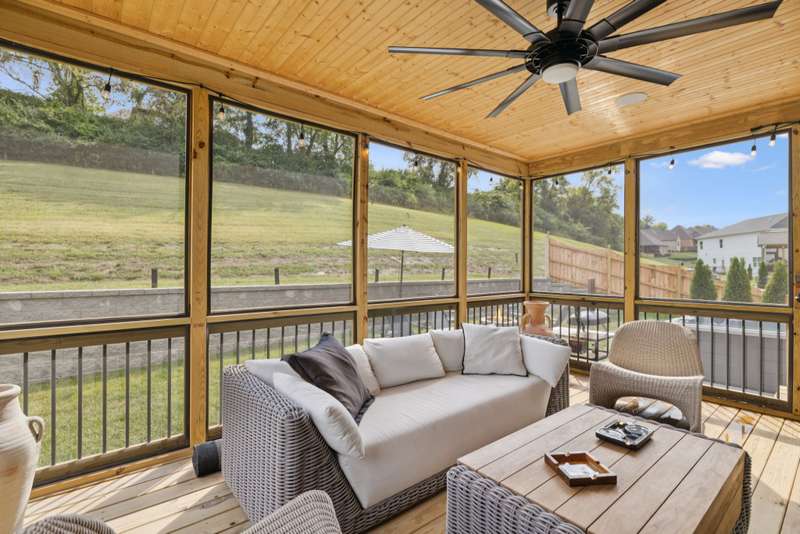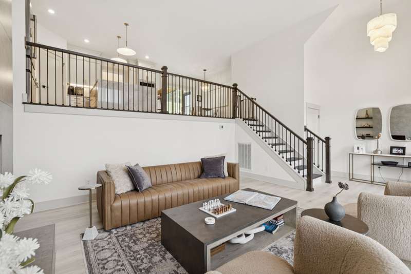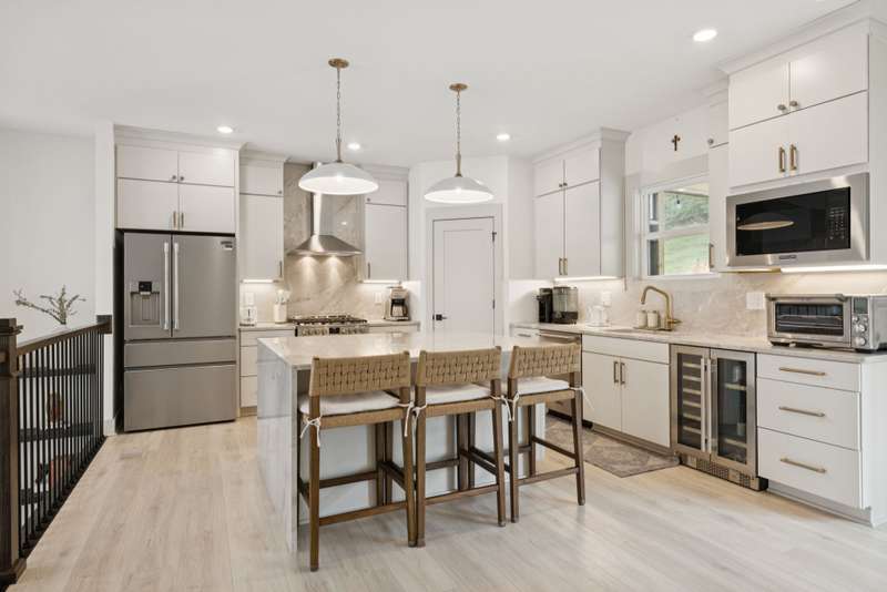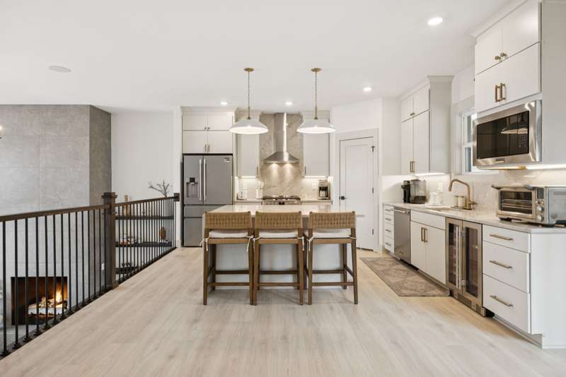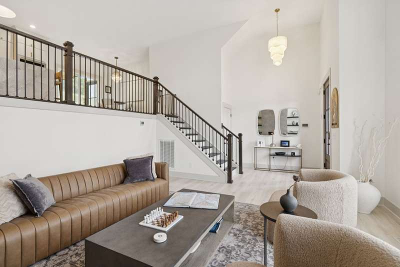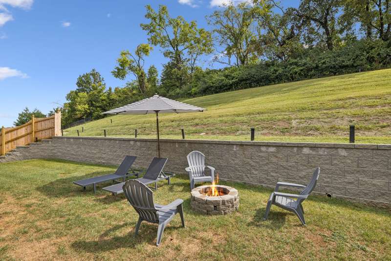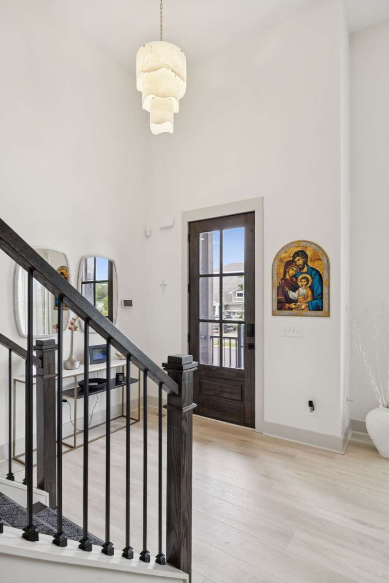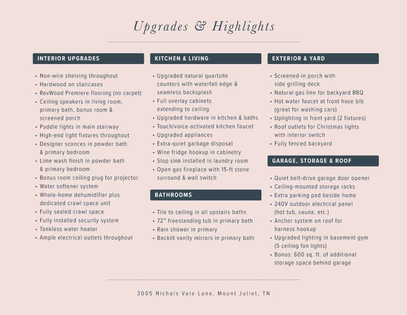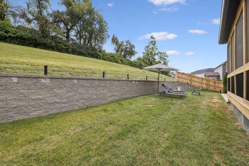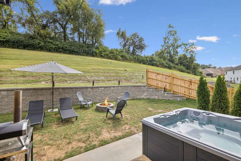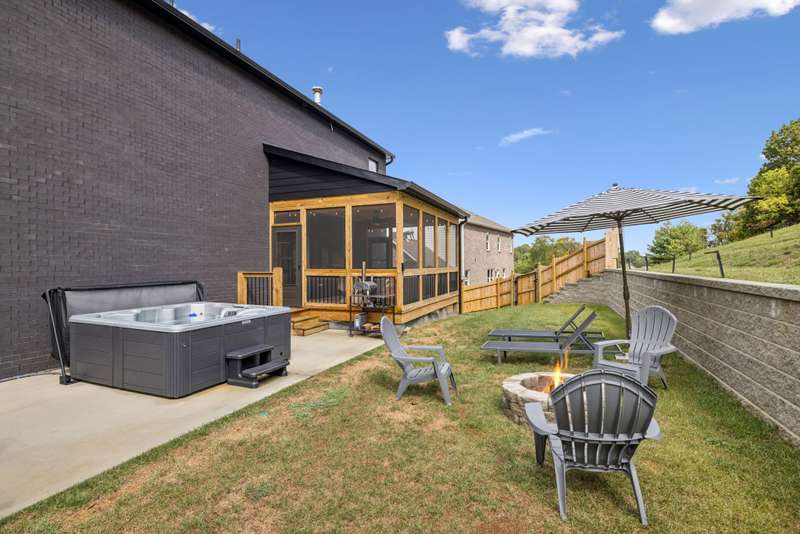 Welcome to this beautifully designed split level home in the sought-after Nichols Vale community, offering thoughtful details and elegant finishes throughout. Step into this impressive two-story foyer that flows seamlessly into an open-concept kitchen, breakfast room, and great room with soaring 15' ceilings and a striking fireplace with custom open shelving. The kitchen is a chef's dream, featuring a large island, stainless steel appliances, beverage center, pantry, and ceiling-height cabinetry. The spacious primary suite is a private retreat with double vanities, a standalone soaking tub, and a sleek tile shower. Upstairs, you'll find three bedrooms, two baths, and a large bonus room, providing ample functional space. Additional highlights include 10' ceilings on the main floor, 8' tall doors, bullnose corners, and a classic brick exterior. The home also offers exceptional storage, including an unfinished basement area currently used as a home gym. Step outside to enjoy a screened-in covered deck, patio, fire pit, and a private, fenced backyard backing to green space--perfect for relaxation or entertaining. This home truly blends comfort, style, and functionality in one of the area's most desirable communities. This home has too many updates to list!! Upgrades list in documents section. Hot tub does not convey.