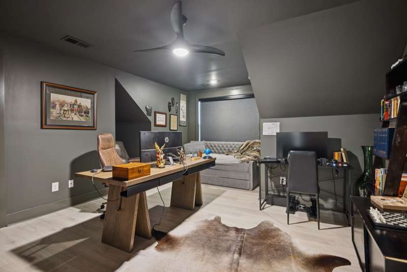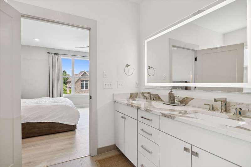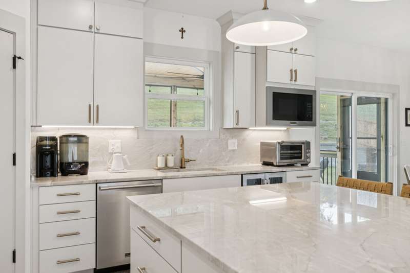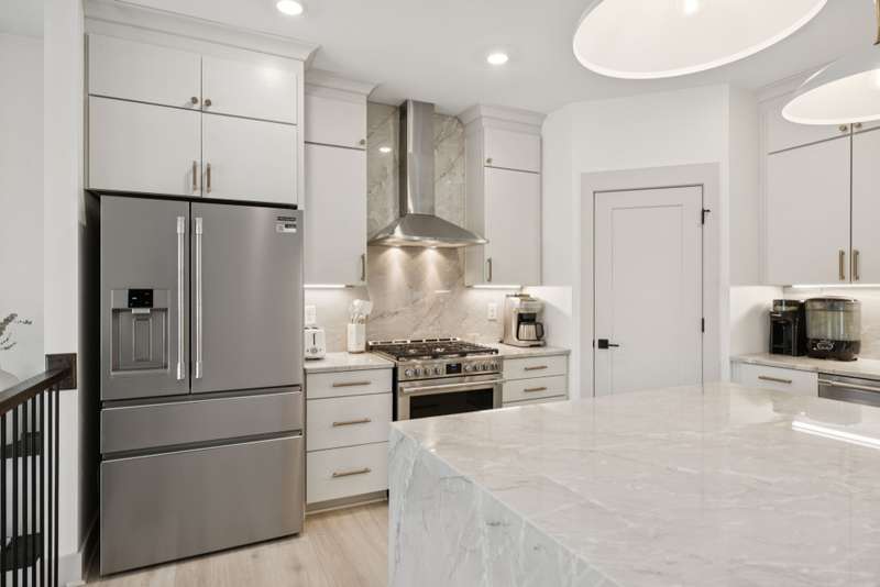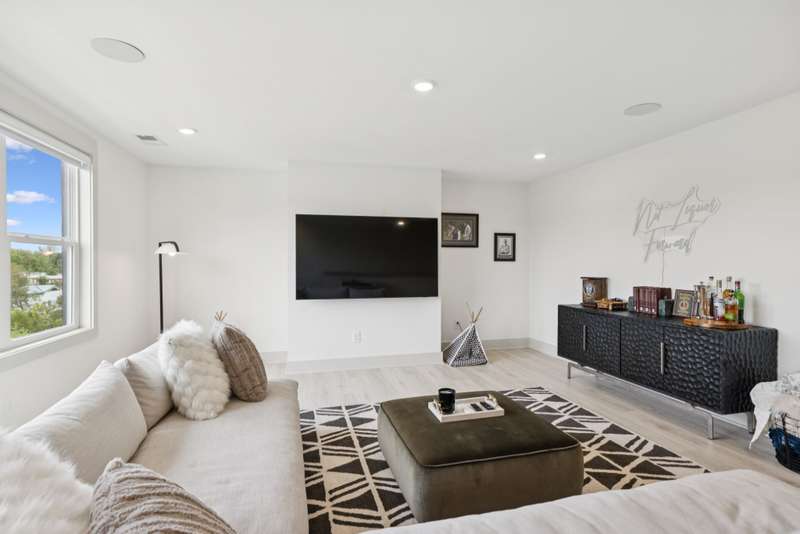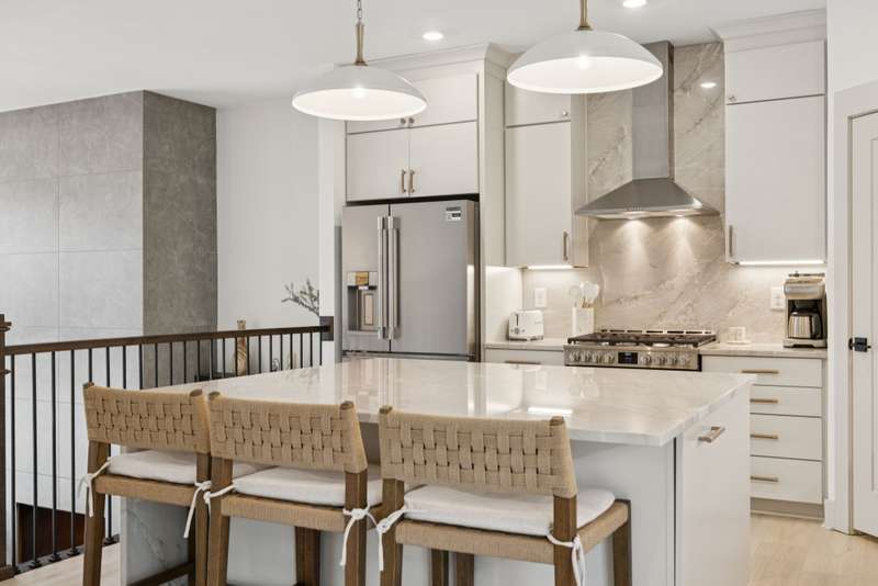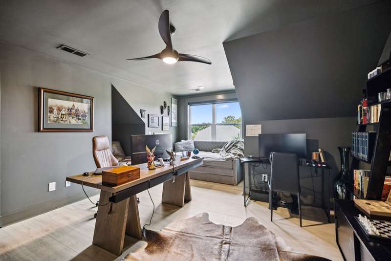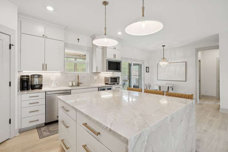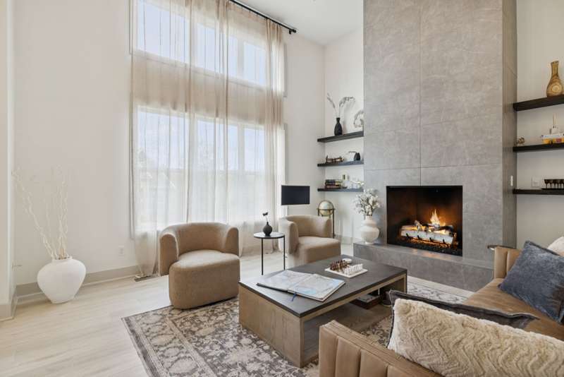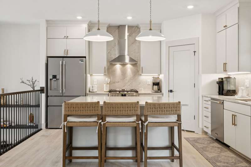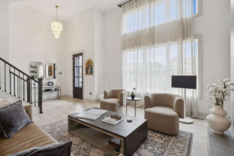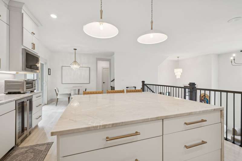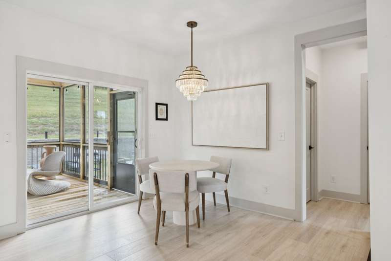 Welcome to this beautifully designed split level home in the sought-after Nichols Vale community, offering thoughtful details and elegant finishes throughout. Step into this impressive two-story foyer that flows seamlessly into an open-concept kitchen, breakfast room, and great room with soaring 15' ceilings and a striking fireplace with custom open shelving. The kitchen is a chef's dream, featuring a large island, stainless steel appliances, beverage center, pantry, and ceiling-height cabinetry. The spacious primary suite is a private retreat with double vanities, a standalone soaking tub, and a sleek tile shower. Upstairs, you'll find three bedrooms, two baths, and a large bonus room, providing ample functional space. Additional highlights include 10' ceilings on the main floor, 8' tall doors, bullnose corners, and a classic brick exterior. The home also offers exceptional storage, including an unfinished basement area currently used as a home gym. Step outside to enjoy a screened-in covered deck, patio, fire pit, and a private, fenced backyard backing to green space--perfect for relaxation or entertaining. This home truly blends comfort, style, and functionality in one of the area's most desirable communities. This home has too many updates to list!! Upgrades list in documents section. Hot tub does not convey.