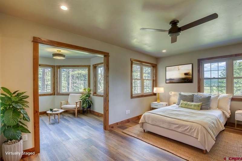 Kimberly Brown, Galles Properties, C: 970-749-3849, Kim@GallesProperties.com, www.crenmls.com: Wake up to breathtaking Mountain Panoramas Every Single Day In This Idyllic Pagosa Springs Retreat! Recently Remodeled 2700 sf Home and Additional 700 sf Heated Garage Shop on a private 10.5 Acres, located just two miles from Pagosa's historic downtown district! 2554 County Road 400 offers unparalleled freedom with no HOA restrictions and a relaxing natural water feature that attracts wildlife and big game right to your doorstep. This thoughtfully designed mountain home offers a tranquil escape, where expansive windows frame stunning views of the surrounding wilderness. Imagine sipping your morning coffee out on the covered porches while enjoying the crisp mountain air and the serene sounds of nature. This is so much more than a house; It's a Lifestyle! The perfect combination of low maintenance, convenience and luxury are yours here-Great room with gas log and stone fireplace, three bedrooms, three and a half bathrooms, a versatile fourth room, two laundry rooms, a mudroom, a heated attached garage, and central A/C. The primary suite is a luxurious sanctuary with a spa-like bathroom, soaking tub, walk-in shower, walk-in closet, and a boudoir. Throughout the home, you'll find rich finishes, upgraded appliances, premium lighting, and thoughtful fixtures. The chef's kitchen, complete with an island, flows effortlessly into a lighted covered patio, perfect for alfresco dining. Additional features include a gorgeous timber-frame tongue and groove covered entrance, paved drive and concrete parking, and an automated Rainbird underground sprinkler system. In addition to the main home with heated attached garage, there's a 700 sq ft heated detached garage/workshop with an RV door and a concrete trailer/RV parking pad. With acres of beautiful usable land and low-density AG zoning, this property is perfect for horses, chickens, goats, llamas, sheep, pigs, and more. It also allows for the construction of a second dwelling and a barn and is serviced by city water and electric plus has the option for natural gas. Pagosa Springs is renowned for the world's deepest hot springs, Wolf Creek Ski Resort, 2.8 million acres of national forest, and pristine, fish-rich waters. This property is truly special and must be seen in person to be fully appreciated. Call me or Schedule your private tour today to experience this irreplaceable location and offering.