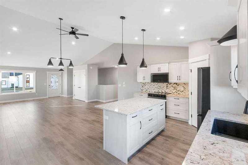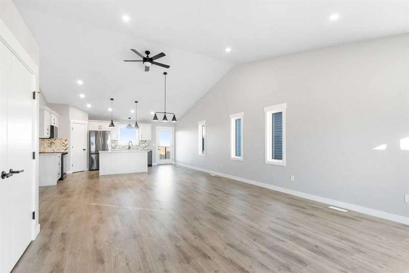 Step inside this bright and inviting new build located in one of the area’s most sought-after family neighborhoods. This 3-bedroom, 2-bathroom bungalow combines modern design with everyday comfort, featuring an open-concept layout, high ceilings, and plenty of natural light throughout. The spacious kitchen is perfect for entertaining, offering a large island, stainless steel appliances, and a walk-in pantry for extra storage. From the dining area, step out onto the west-facing deck—ideal for enjoying evening sunsets or hosting weekend barbecues. The living and dining areas flow seamlessly together, creating a warm and welcoming atmosphere for gatherings with family and friends. The primary bedroom features a walk-in closet and a 3-piece ensuite, while two additional well-sized bedrooms and a 4-piece main bathroom complete the main floor. Downstairs, the unfinished basement offers endless potential—create the perfect recreation room, home gym, or extra living space to suit your needs. Don’t miss your chance to own this beautiful, move-in-ready new build in a vibrant community designed for families and modern living.
