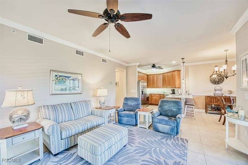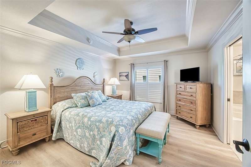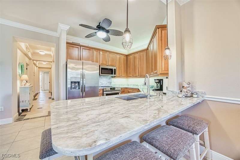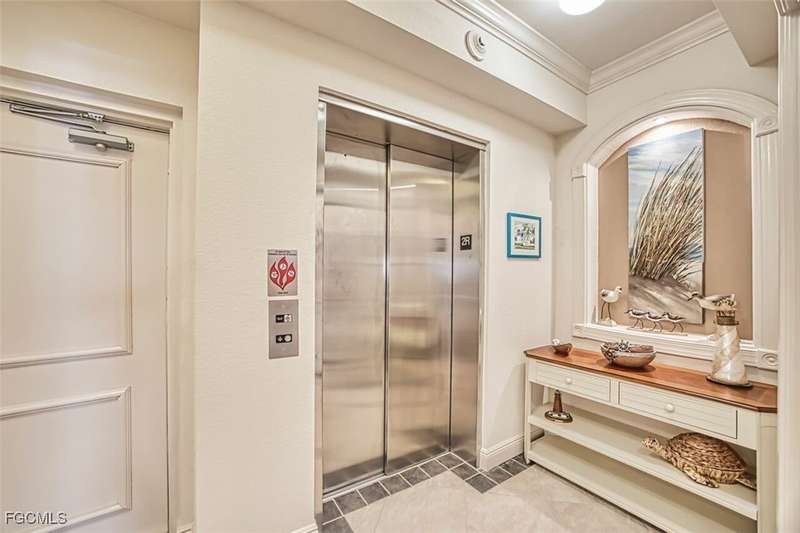 Discover a peaceful retreat perfectly tucked between serene lakes, nature preserves, and quiet residential streets. This exclusive residence features only two units per floor, with direct access via a semi-private elevator. Inside, a fully equipped kitchen boasts raised-panel cabinetry, granite countertops, a refrigerator with icemaker, electric glass-top range and oven, microwave, dishwasher, and garbage disposal. The stylish master bathroom offers a jetted tub, a separate tiled shower, and dual vanities. Large ceramic tile flooring flows throughout the main living areas with luxury wood laminate flooring in the bedrooms. An oversized laundry room includes generous storage space and washer and dryer. The long gallery hallway, accented with double tray ceilings and crown molding, elegantly connects the living and bedroom spaces. Plantation shutters and Hunter Douglas pleated blinds compliment all the windows and sliders. Relax on the large, tiled screened lanai overlooking the preserve. Plenty of storage, a full two car garage and impact resistant windows add to the convenience of this condominium home. Community amenities include a heated pool, clubhouse with fitness center, scenic nature walk, pier, gazebo, and outdoor lighting for evening strolls. Conveniently located near beautiful Fort Myers and Sanibel beaches, shopping, restaurants, airport and healthcare.