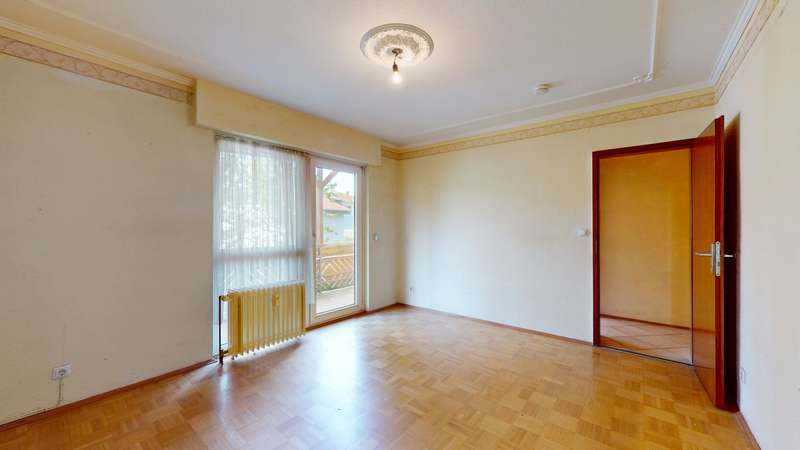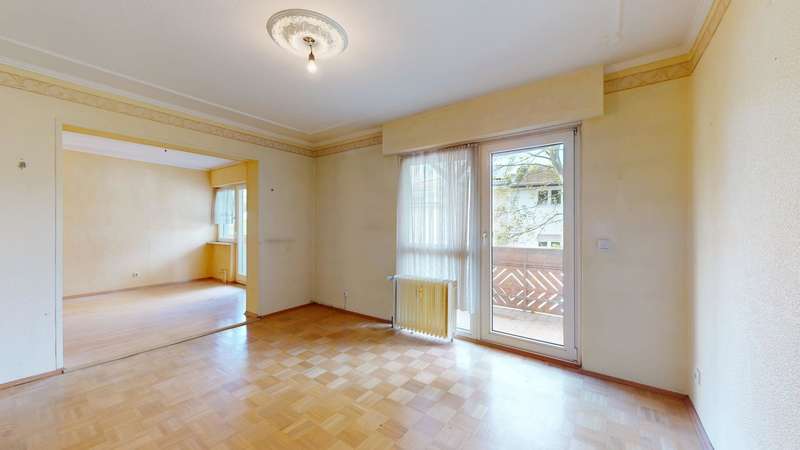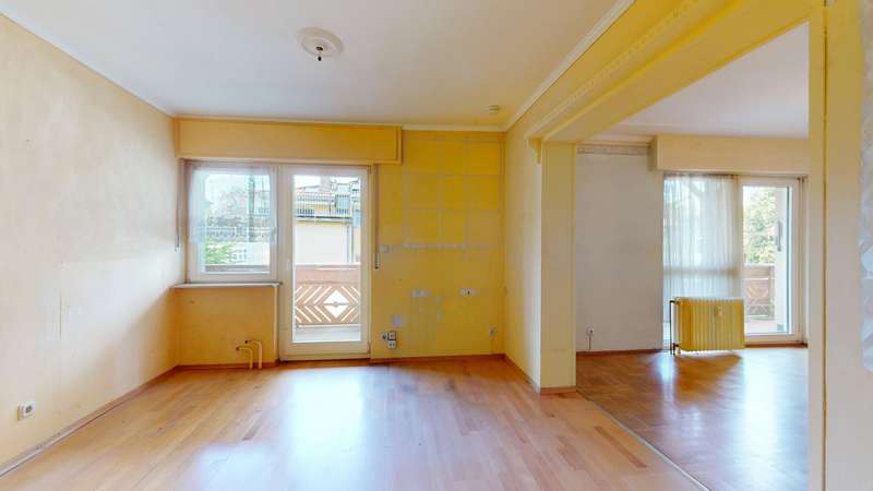 For sale is a spacious apartment with a living area of approx. 108 m², ideal for families or couples who appreciate extra space. The building was built in 1972 and consists of only five apartments. The basement was last extensively waterproofed in 2017. The current condition of the apartment is in need of renovation, which offers you the opportunity to realize your individual ideas. The apartment has a total of four rooms, including three bedrooms, which offer enough space for a family. The spacious living area offers access to a large, covered balcony facing southwest, which is perfect for relaxing evenings outdoors. This is complemented by a narrow, east-facing exit. The bathroom is equipped with a bathtub and a separate shower cubicle. Next to it is the guest WC, which offers additional comfort. The apartment also features high-quality elements such as partially solid parquet flooring and stucco rosettes, which lend the living spaces a timeless elegance. The washing machine connection is available in both the laundry room and the bathroom, which offers you flexible usage options. You will find additional storage space in a basement storage room. The entire building is located in an established residential area, so you can benefit from an excellent infrastructure and good public transport connections. If you are looking for a property that offers you the opportunity to develop creatively and realize your own living dreams, then this apartment could be just right for you. Arrange a viewing today to see the potential of this apartment for yourself. This property offers promising opportunities for anyone who is ready to turn their own ideas into reality.