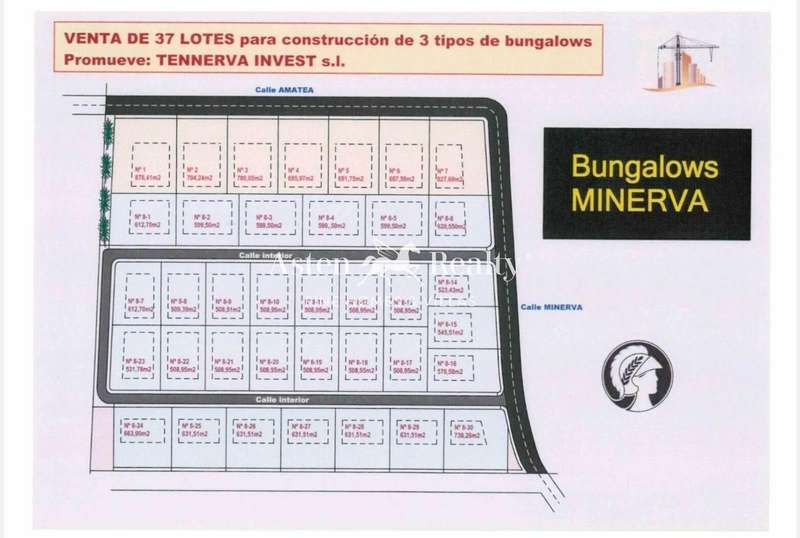 Sale of 37 plots for the construction of 3 types of villas. The plots have between 508 m2 and 878 m2.