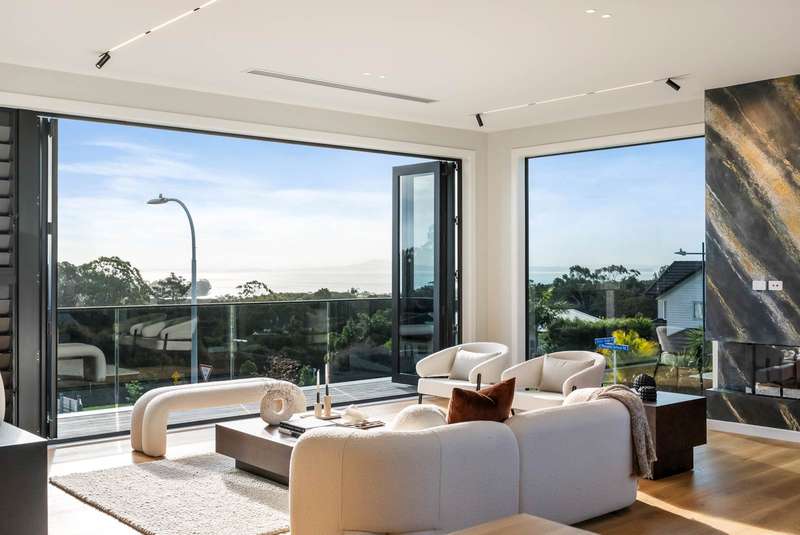 Welcome to 120 Maraetai School Road, in magical Maraetai. Perfectly positioned to capture sea views across the Hauraki Gulf out to Rangitoto Island, this spectacular brand-new home has been built with design and luxury in mind. Step inside the gorgeous grand entrance foyer to discover lavish living, starting with a glass door lift to take you to the first floor. Instantly impressive, you’ll find high stud ceilings of 2.7m on the ground floor, and 3m on the first floor. An expansive 343m2, it is evident that this home has been meticulously crafted to maximise space and sea views throughout. The first-floor living is open plan and opulent, featuring a beautiful modern kitchen with high quality appliances and a large living and dining area centred by a statement gas fireplace. This effortless entertainment area flows seamlessly out to the front balcony and back deck - enjoy outdoor living that is surrounded by stylish, easy-care landscaping and a feature water fountain. On the ground floor, there is a separate spacious living area with wet bar, ample storage and a double internal access garage with a second driveway ideal to fit a boat or motorhome – here you have space for the whole family, and all their toys! Four luxurious bedrooms across the two floors complete the picture, three of them with ensuite bathrooms and statement walk-in wardrobes. Located just moments from local beaches, shops, eateries, walkways, Formosa golf course and Pine Harbour Marina with ferry services to the CBD. If you are looking for a simply stunning new home with the best of the beautiful Pohutakawa Coast on your doorstep, then you are going to love calling this Maraetai Masterpiece HOME. Contact us today!
