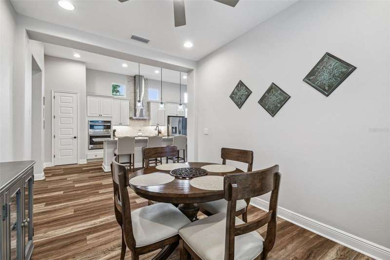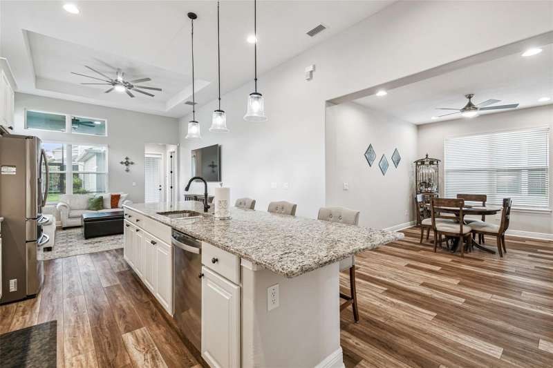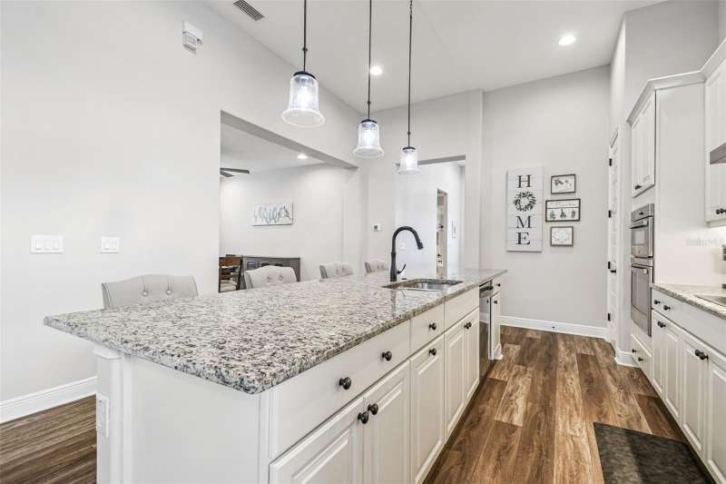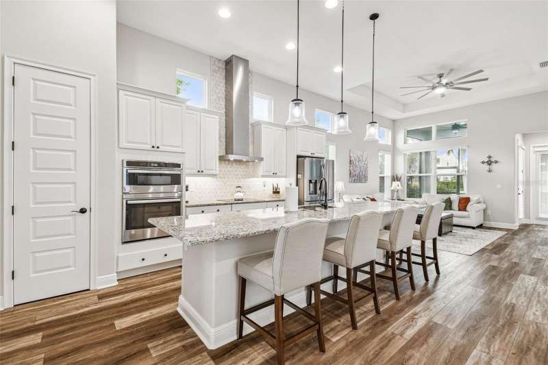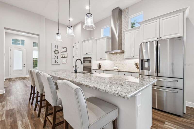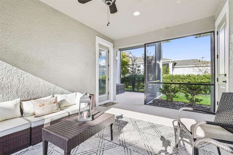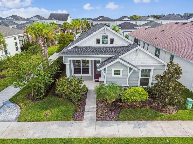 BETTER THAN NEW and READY NOW! This stunning ICI Homes Lantana floor plan was built in 2022 and is located in the highly sought after community of Persimmon Park in Wesley Chapel. With modern upgrades, low-maintenance living, and timeless charm, this home perfectly blends style, comfort, and convenience! From the moment of arrival, the adorable front porch and cottage-style curb appeal make a lasting first impression. Step inside to discover SOARING CEILINGS, WOOD-LOOK TILE FLOORING THROUGHOUT, and a bright, open layout designed for effortless living. Featuring 3 spacious bedrooms, 2 full bathrooms, and a versatile front flex space; ideal for a home office, lounge, or play area, this floor plan provides flexibility for any lifestyle. The primary suite offers a peaceful retreat with generous closet space and a beautifully designed en-suite bathroom with a walk-in shower and double vanities. The secondary bedrooms offer built-in closets. The gourmet kitchen is a showstopper, featuring in-wall stainless steel appliances, a sleek range hood, upgraded cabinetry, and large kitchen island, perfect for cooking and entertaining. Added features include wired for SURROUND SOUND, CUSTOM PANTRY SHELVING, UPGRADED LIGHT FIXTURES, CEILING FANS, WINDOW BLINDS, GUTTERS, AND A SCREENED LANAI. Costly items already complete! The extended covered lanai includes a SIDE EXTENSION for additional seating or dining and is PRE-PLUMBED FOR A FUTURE OUTDOOR KITCHEN, making it ideal for enjoying the Florida lifestyle year-round. The rear entry garage with a 4-FOOT EXTENSION provides extra storage and convenience. Built by ICI Homes, known for superior craftsmanship, energy efficiency with LOW UTILITY BILLS, and attention to detail, this home offers LUXURY LIVING WITHOUT THE WAIT OF NEW CONSTRUCTION OR BUILDER FEES! Located in the thriving community of Persimmon Park, residents enjoy resort-style amenities, including a community pool, playground, dog park, and walking trails. The HOA INCLUDES CABLE AND INTERNET, making this home AFFORDABLE and desirable. The location is PRIME! Just minutes from I-75, The Shops at Wiregrass, The Grove, KRATE at the Grove, the new BayCare Hospital, Advent Hospital, the brand-new Target (one of the largest in the state), and endless dining and entertainment options. This growing area continues to be one of Wesley Chapel’s most desirable places to live, offering a true live-work-play lifestyle. Why wait to build when this better-than-new Lantana model is move-in ready and loaded with upgrades! A perfect opportunity right here!