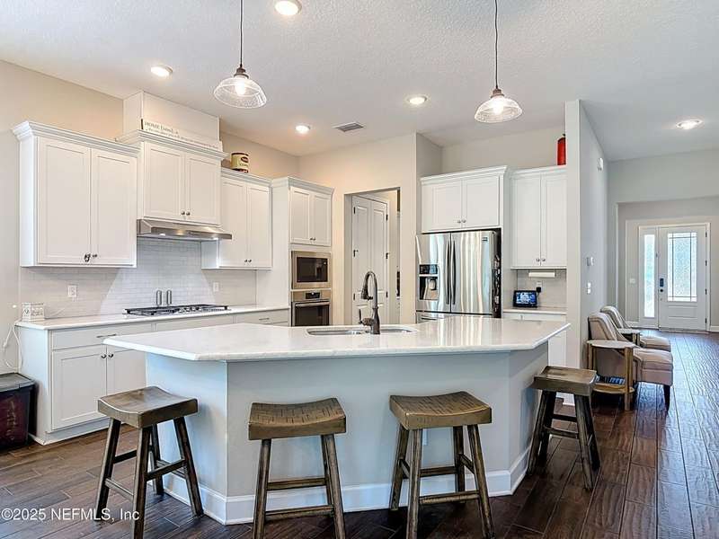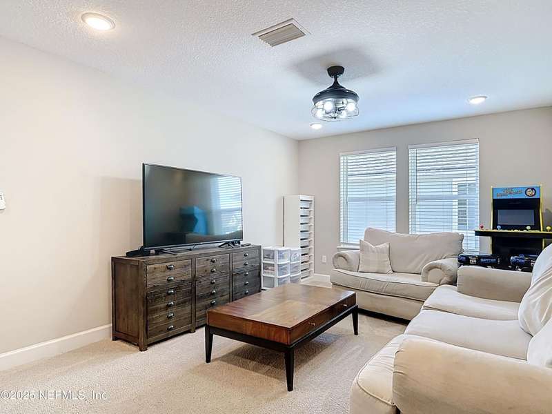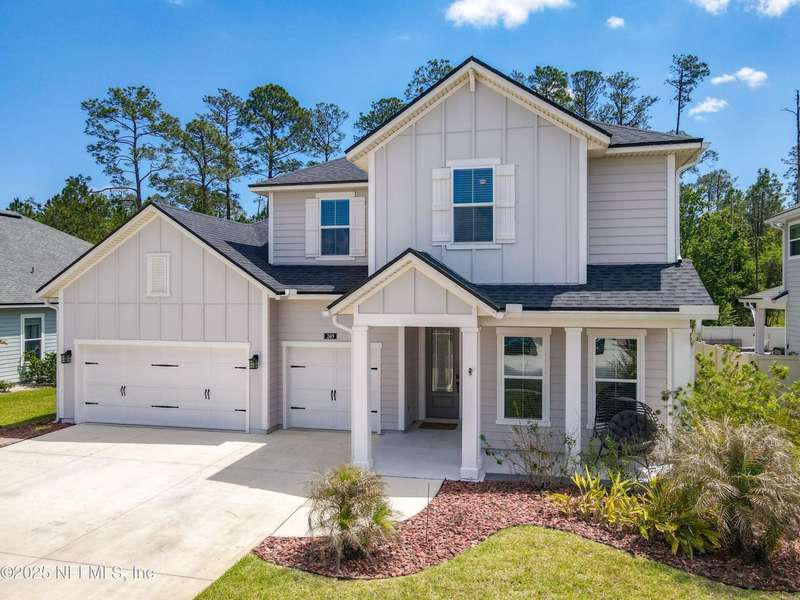 Providence-built (2019) two-story with a split-bedroom layout, 4BR/4BA + study + loft, and 3,044 sq ft-a strong value under $600K at just $197/sq ft, with no CDD and HOA dues already paid through 2025. Step inside to an open, flexible plan: a dedicated study (downstairs) for work or hobbies and a large loft (upstairs) for media, play, or guests. The chef's kitchen features gas cooking, a large island, and a butler's pantry for extra prep and storage. Gather in the living room around the electric fireplace, then extend outdoors to the screened, paved lanai overlooking a serene, fenced backyard that backs to a preserve-ideal for privacy and everyday enjoyment. Thoughtful upgrades include a tankless water heater, water softener, 3-car garage with epoxy floors, a paved front porch, and a backyard storage shed. Quick access to St. Augustine shops and beaches. Vacant and move-in ready!