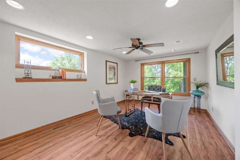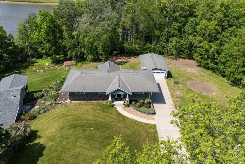 Escape the ordinary with this exceptional 4BD, 3BA walkout ranch where craftsmanship, comfort & thoughtful design come together. Located just beyond town, but still close to schools, restaurants, medical facilities & scenic state parks—this home offers the ideal mix of privacy & convenience. The open floor plan features premium, energy-efficient materials like hardwood flooring, geothermal heating & cooling & quality windows for year-round comfort. The main level includes 3 spacious bedrooms, including a luxurious primary suite with 2 walk-in closets. A cozy fireplace in the living room sets the tone for relaxing evenings. The walkout lower level is perfect for an in-law suite, complete with its own bedroom, bath, kitchenette & fireplace. Extras include a heated garden shed, a built-in storm shelter & a whole-home water filtration system. Stylish, smart & solid—this home truly checks all the boxes