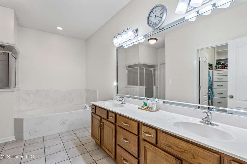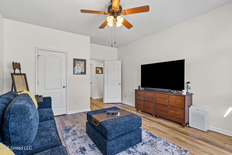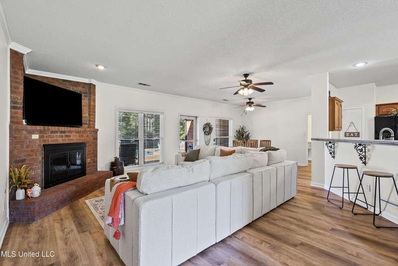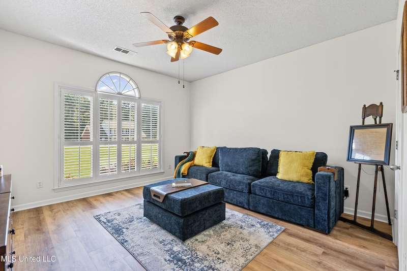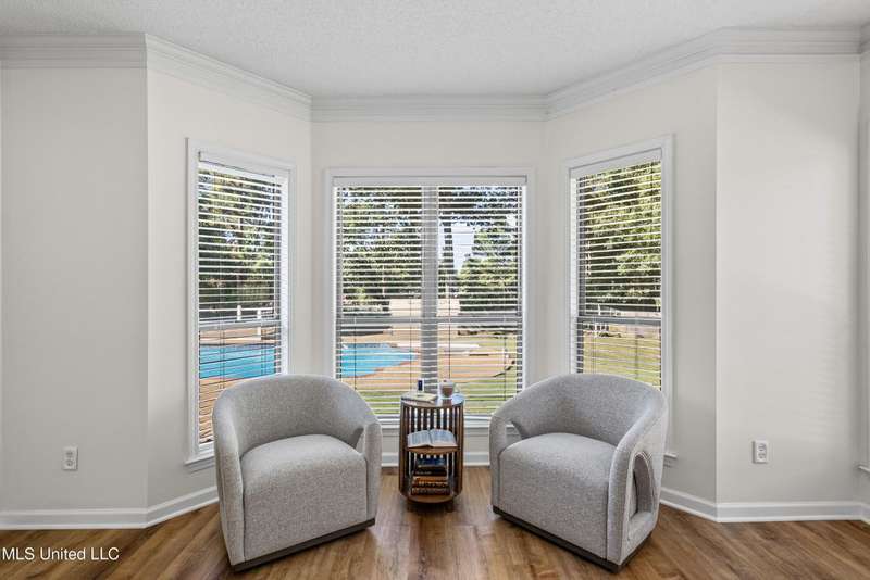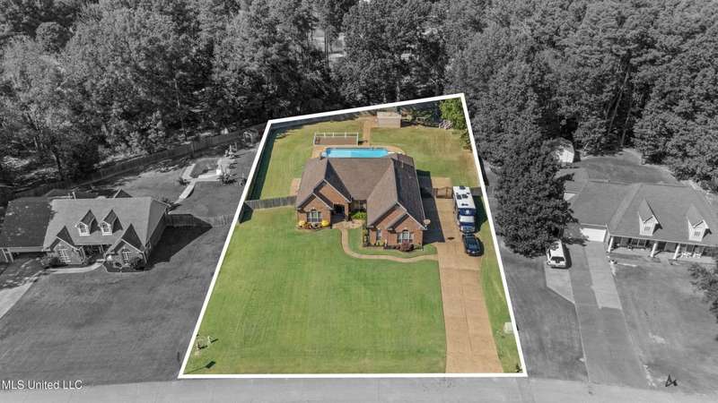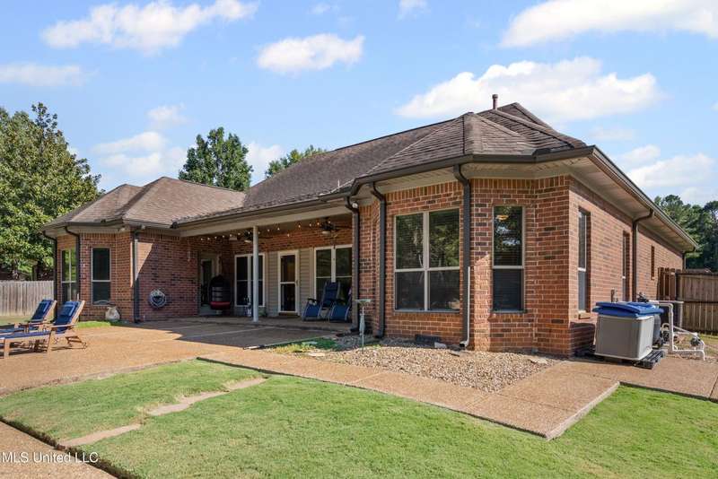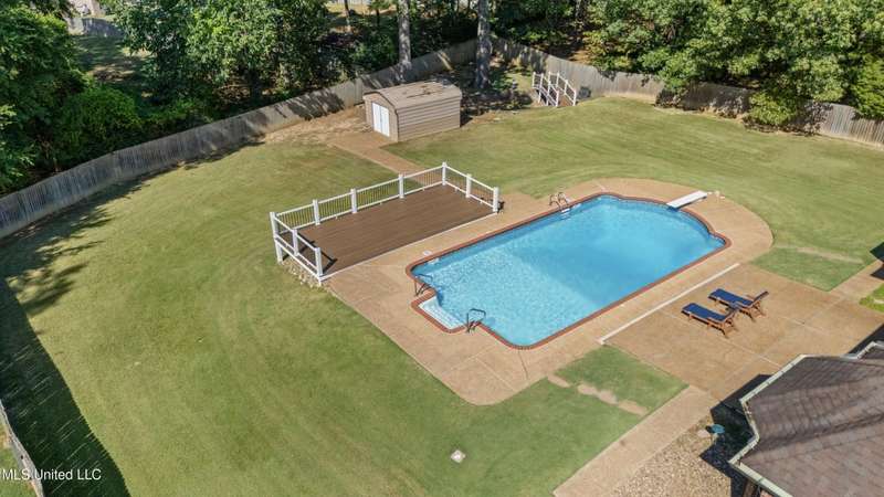 OPEN HOUSE: Saturday, 9/27, 11-1 & Sunday, 9/28, 2-4 ~~~~~ Tucked into a quiet, established neighborhood in Olive Branch, this beautifully updated single-level home offers approximately 2,500 square feet of thoughtfully designed living space on a nearly 3/4 acre lot. A Grecian-style in-ground pool with a diving board, Trex deck, and both covered and open patio areas . . . creates a private backyard oasis that's perfect for entertaining or relaxing in peace.Inside, a wide foyer welcomes you with a clear line of sight through the open-concept great room and dining area to the sparkling pool beyond. Fresh paint and brand-new luxury vinyl plank flooring flow throughout the home, while abundant windows and a floor-to-ceiling brick fireplace add warmth and charm. The spacious kitchen, open to the living areas, features tile floors, an island, generous cabinet and counter space, and upgraded appliances . . . including a brand-new refrigerator that stays. Just off the kitchen, the laundry room includes a new washer and dryer and stylish floating shelves for added function.The split-bedroom layout ensures privacy, with a spacious primary suite tucked away on one side of the home. This serene retreat includes a sitting area with pool views, private patio access, a luxurious en-suite bath with dual sinks, soaking tub, walk-in shower, and a custom-designed walk-in closet. On the opposite side, two additional bedrooms offer flexibility . . . one is large enough to serve as a second primary or guest suite (19x13), complete with its own patio access, seating nook, and walk-in closet. The third bedroom is also generously sized at 16x13 and shares a full bath with the second.Bricked flower beds, a full irrigation system, and a privacy-fenced backyard add to the home's curb appeal and outdoor enjoyment. Additional highlights include a two-car garage, brick and vinyl construction (for low maintenance living), abundant interior storage, attic space, and a 16x12 metal outbuilding on a concrete pad. A charming Trex bridge leads to a quiet garden area, ready for a butterfly and hummingbird haven.Ideally located near shopping, dining, and medical services, with convenient access to Memphis and Shelby County for work, this move-in ready home offers the perfect blend of comfort, style, and everyday livability.
