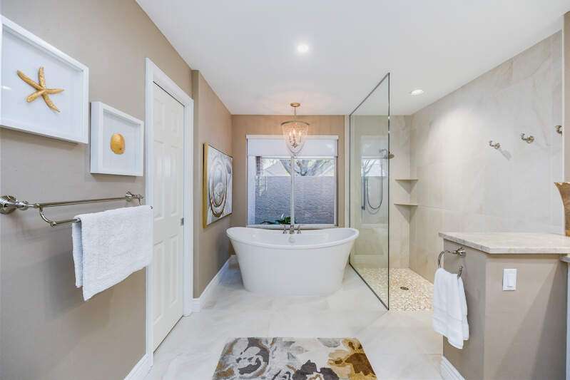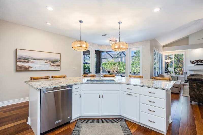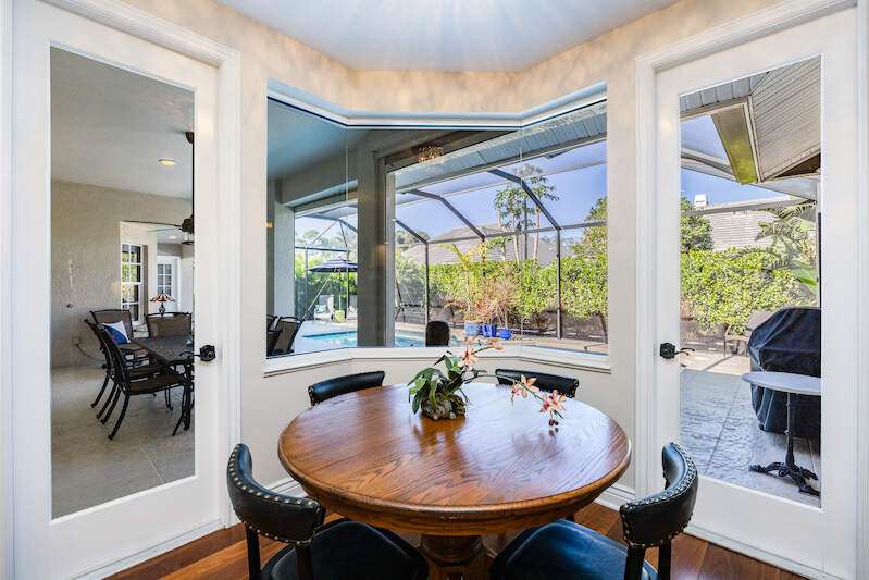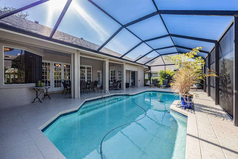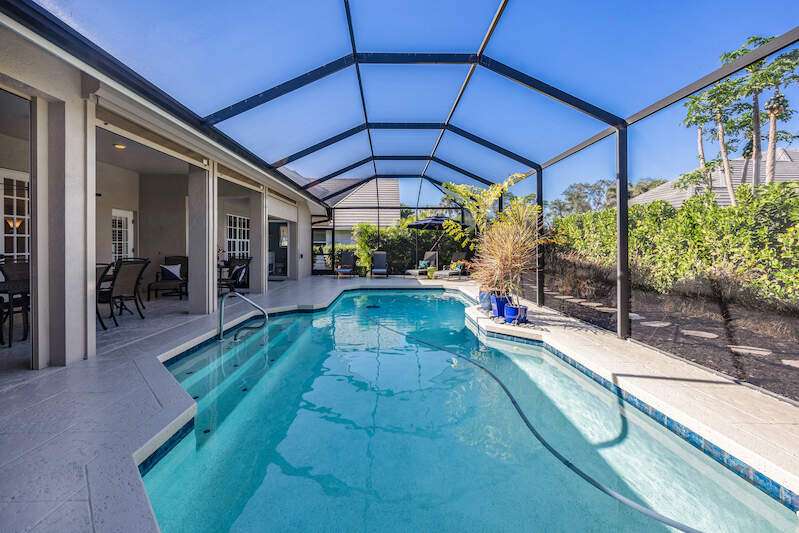 X-Zone elevation! Prepare to be captivated by this stunning, renovated single-family home in the prestigious Pelican Bay community. Built in 1990, this residence offers 3,065 square feet of thoughtfully designed living space on a generous 0.29-acre lot. With three bedrooms, a den/office, and a seamless floor plan, this home is perfect for comfortable living and entertaining. As you step inside, you'll be welcomed by an elegant formal living and dining area that flows effortlessly into the open-concept kitchen and family room. The primary suite is a true retreat, featuring a cozy seating area, a spacious walk-in closet, a double vanity, a tiled walk-in shower, and a luxurious soaking tub. Recent updates elevate this home to modern standards, including a beautifully remodeled kitchen with high-end appliances, updated bathrooms, new flooring, custom built-ins, and plantation shutters. Outside, the private, screen-enclosed lanai offers a serene oasis with a covered seating area, an inviting in-ground pool, and plenty of space to relax in the sun. Lush tropical landscaping surrounds the property, creating private and tranquil setting. For peace of mind, this home includes full storm protection and a transferable roof warranty. Located in the sought-after Pelican Bay neighborhood, residents enjoy exclusive amenities such as two private beachfront pavilions, tennis and pickleball courts, a fitness center, and a vibrant community center. Additionally, the home is conveniently close to Naples' best dining, shopping, and cultural destinations.