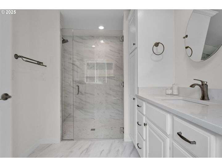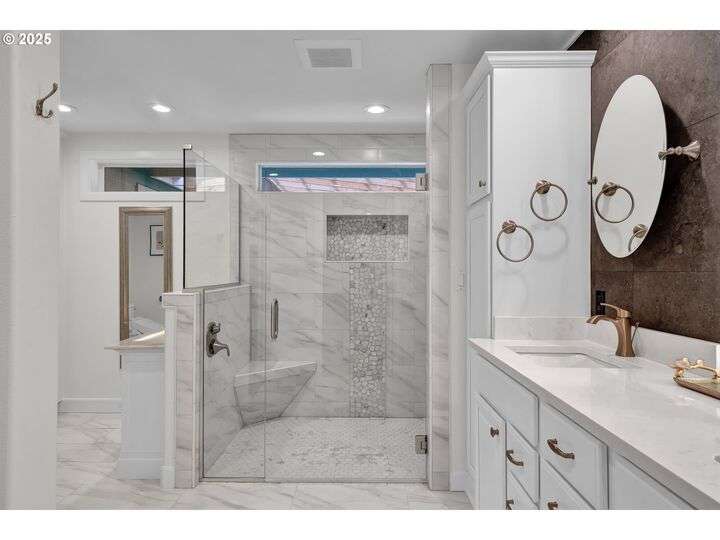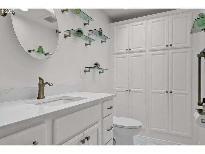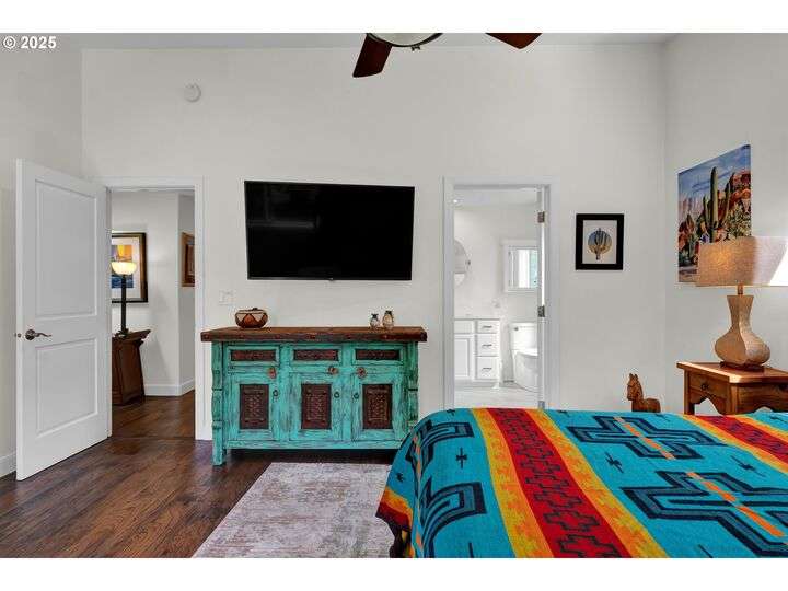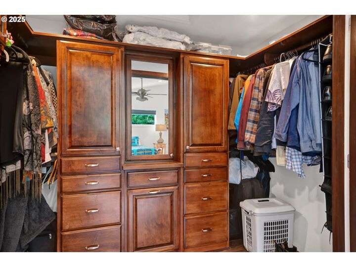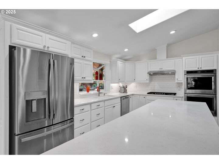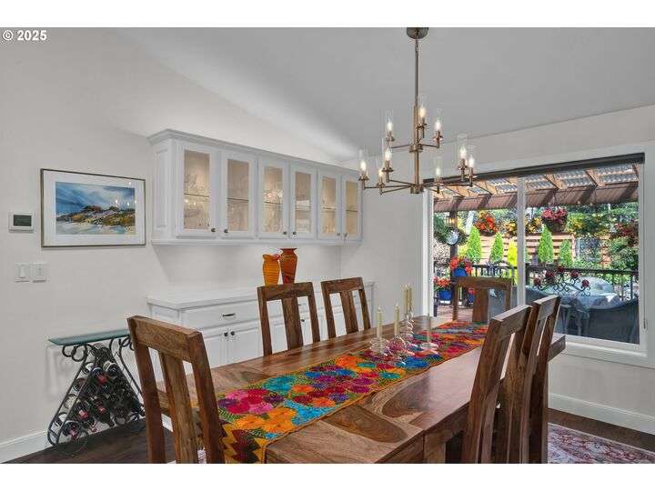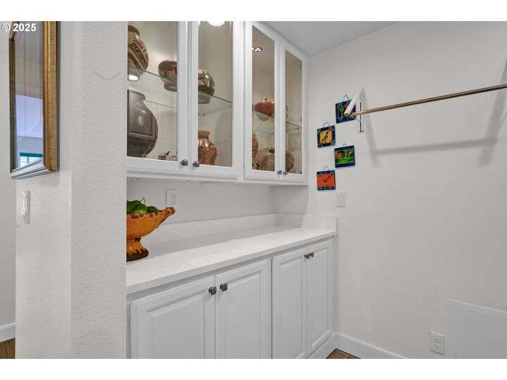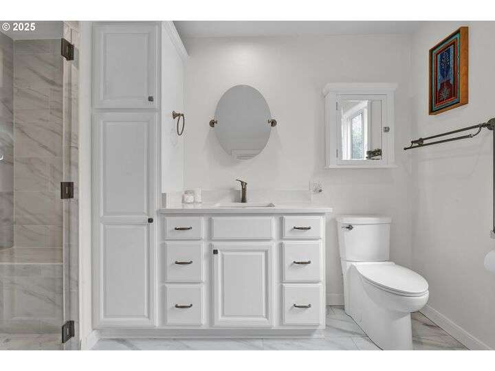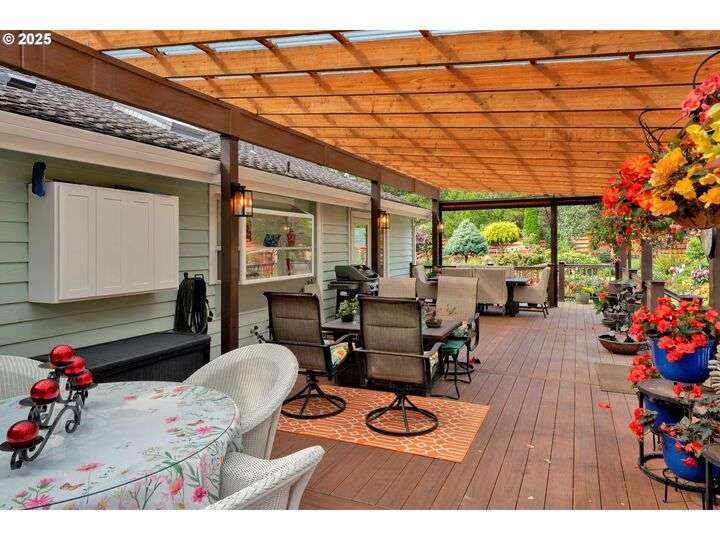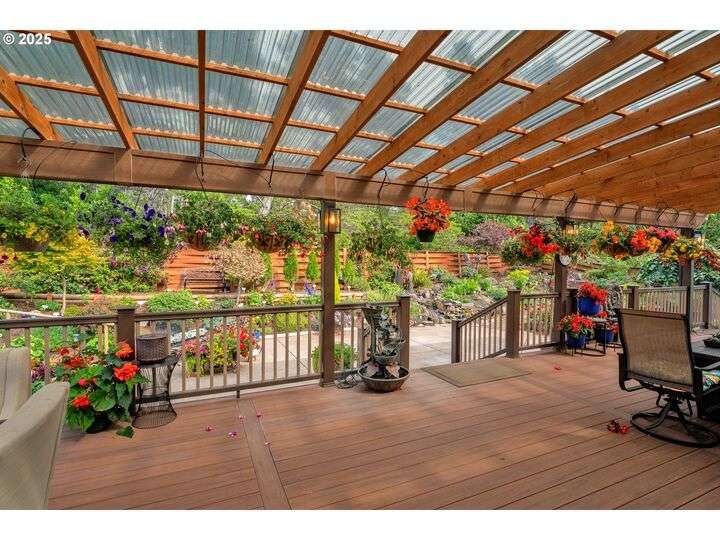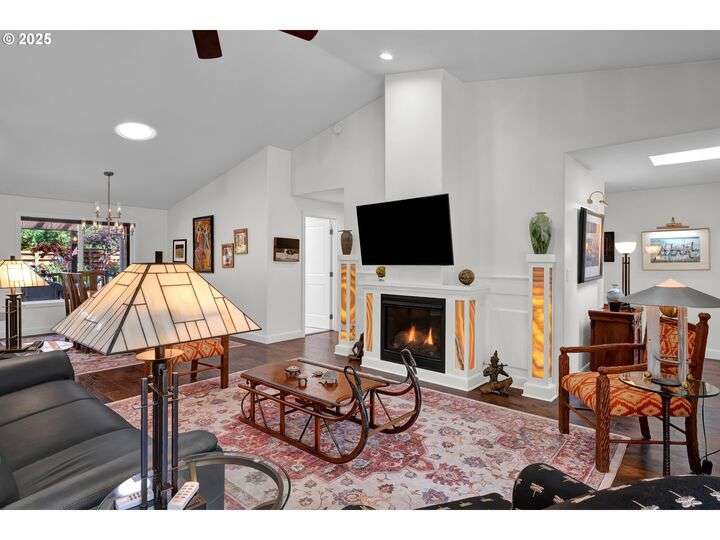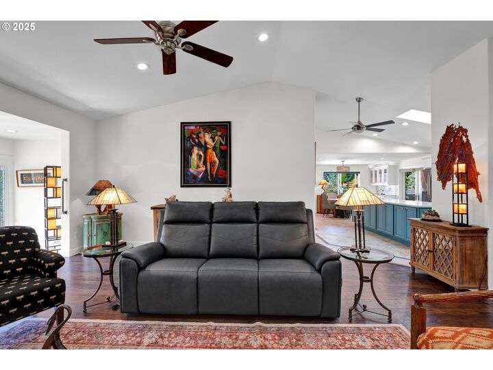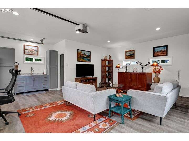 This beautifully updated residence features premium materials throughout its 2,354 sq. ft. layout. A 50-year architectural grade roof [2023]; new paint [2023-2024] inside and out; quartz countertops throughout; gas fireplace; all four [4] bathrooms have been redone with countertops, sinks, ADA toilets, ADA walk in showers and fixtures. The gourmet Kitchen is equipped with a gas cooktop and has an updated 10.5-foot quartz island complemented by extensive cabinetry for pantry space. Three new skylights and two solar tubes add additional lighting. The home has two master bedroom en suites with walk in closets; and an office/den or baby's bedroom. The laundry room is centrally located for convenience. A formal dining room seats 6-8 guests, with additional seating in the dining nook. Comfort is enhanced by heated floors in the entry and primary en suite bathroom. The expansive 16x40 covered patio provides excellent outdoor entertaining options, with a remote-controlled wind screen and three propane hook-ups to accommodate BBQs, fire rings, deck heaters. The property’s gardens were recognized as #1 on the 2025 Florence Garden Club Tour and are maintained effortlessly with an updated 12-zone irrigation system, and a beautiful water feature. The .52-acre lot offers both privacy and space to enjoy the landscaped grounds with extensive pathways. A detached 576 sq. ft. garage provides potential for third master en suite guest quarters, classic car storage or artist’s studio, with a bathroom and kitchenette. A 192 sq. ft. insulated tool and garden shed ensures protection for equipment against the elements. Additional features include an 18’x60’ concrete RV pad with a remote-control gate, suitable for parking up to four vehicles or an RV. ADA ramps in the gargage and deck for convenience. Located within the Shelter Cove gated community, this immaculate home offers an extensive list of amenities; please inquire for further details.