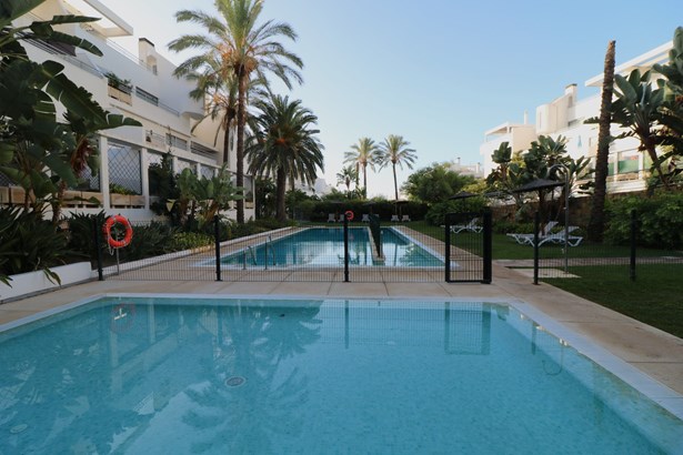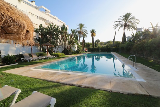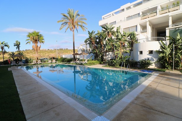 Charming ground floor apartment located in an exclusive gated community in the La Cala de Mijas area. The property features two spacious bedrooms, each with its own en-suite bathroom, offering privacy and comfort. It also includes a fully equipped kitchen with quality appliances, a living-dining room with a fireplace, electric shutters, and marble flooring throughout.The apartment boasts a west-facing private garden, ideal for enjoying the afternoon sun, with direct access to a large private storage room and a private enclosed garage, providing a practical and secure solution for both parking and storage.The community offers 24-hour security, surveillance cameras, a daytime concierge, three communal swimming pools, and beautifully maintained gardens, creating a peaceful and safe environment for the whole family.Located just five minutes by car from the center of La Cala de Mijas, where you can enjoy all amenities, shops, restaurants, and the lovely beaches of this charming coastal t