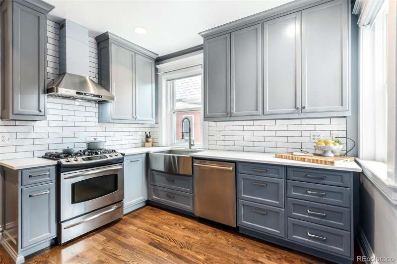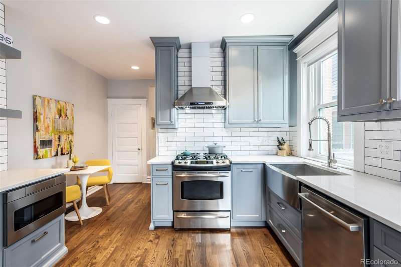 1894 Charming Half-Duplex with 4 bedroom, 4 bath offers a perfect blend of modern amenities and cozy comfort. Nestled in the quiet, tree-lined Uptown neighborhood, the exterior boasts a classic brick faade complemented by a welcoming front porch. Inside, the traditional formal entry invites you to explore the formal, light-filled living room with decorative fireplace, and spacious formal dining room. The updated kitchen features new cabinetry, quartz counter tops, subway tile backsplash, a farmhouse sink and stainless steel appliances. Theres even a cozy breakfast nook where you can enjoy your morning coffee and a main floor half bath for guests. A main floor conforming bedroom is perfect for guests, a family room, office space, or work out room. Upstairs, the primary suite is a tranquil retreat, complete with an updated en-suite bathroom with floating vanity and a seamless glass shower. Two additional bedrooms share a full bath, perfect for guests. The fully finished basement has a beautifully updated bathroom with heated floors, family room / bedroom and laundry room with utility sink and exterior door to backyard. The private, fenced backyard is ideal for entertaining, with a large patio, lawn area and planter boxes perfect for perennials, herb or vegetable gardens. Additional features include a one-car garage and an awesome location close to local shops, restaurants and parks with easy access to Downtown. Pets ok with approval and additional deposit.