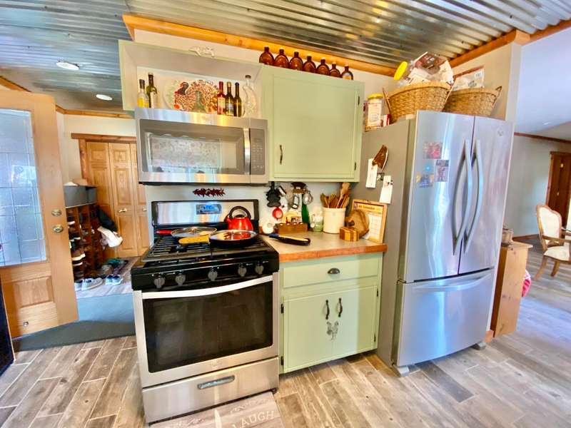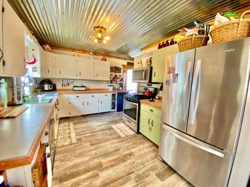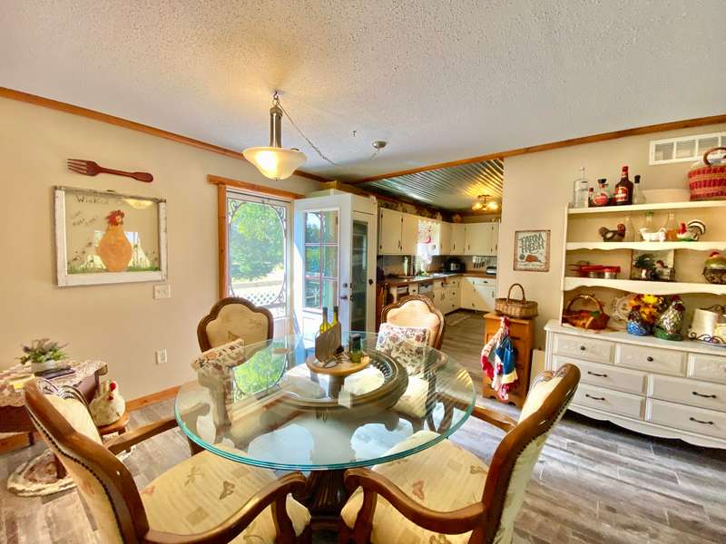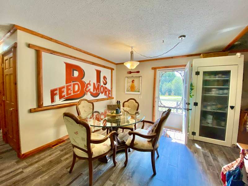 Amazing Homestead on 6 acres! Everything you could ever want plus more at this country farm setting. Enjoy the sounds of ''Little Frog Pond'' while spending summer nights around the bonfire pit. Make sure to inquire about the personal property list because this home comes with everything to start your own homestead. This home boasts two completely separate residences for multiple family living or great short term/longer term rental opportunities. Upstairs is a gorgeous country farm style kitchen with pantry and foyer entrance and formal dining room, with large living room, huge primary bedroom with sitting area, second bedroom and an impressive full bath with custom upgrades, a soaking tub, shower and dual sinks. Downstairs you will find a well-appointed kitchen, large family room, laundr room, cozy dining room, 2 bedrooms, a full bath, and a private outside deck and bathtub. As you step outside, you will find a huge pole barn with enough room for 6 vehicles. Presently, the owners use it for storage and an art studio. It has a large fenced-in garden area, and the outside flower beds are amazing. Don't let this awesome homestead slip away.