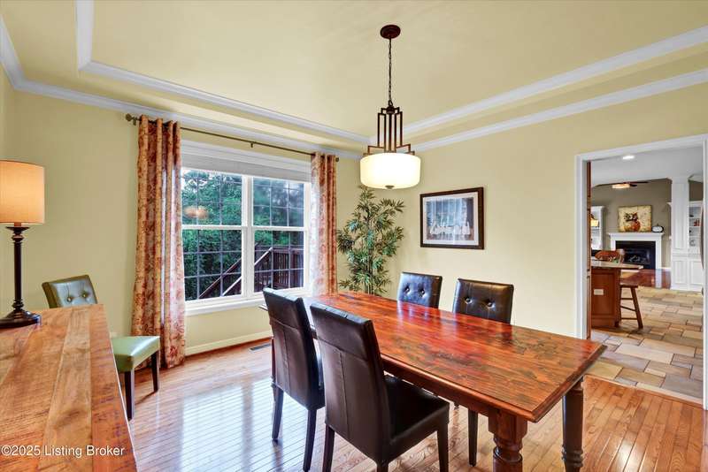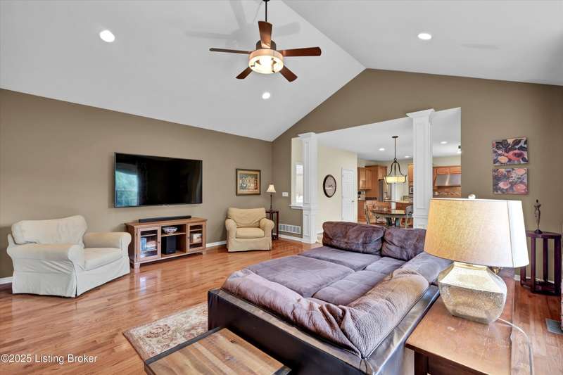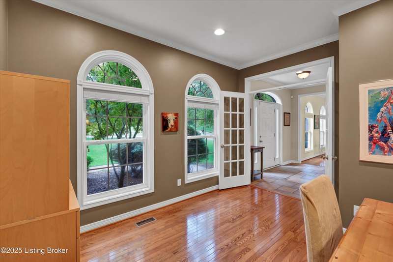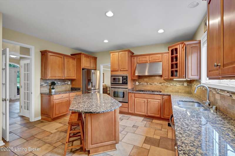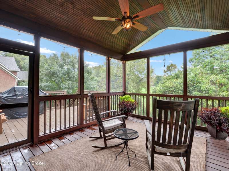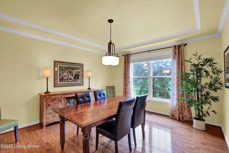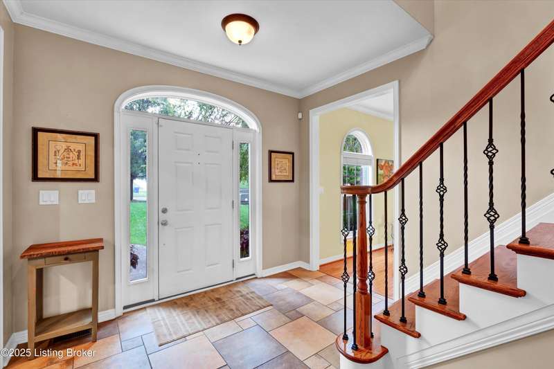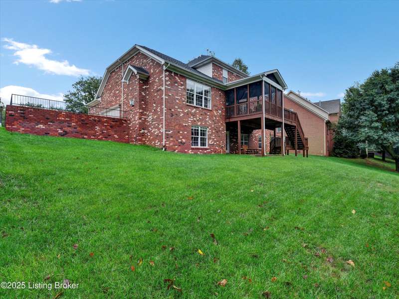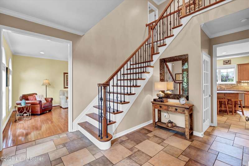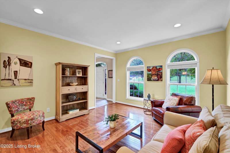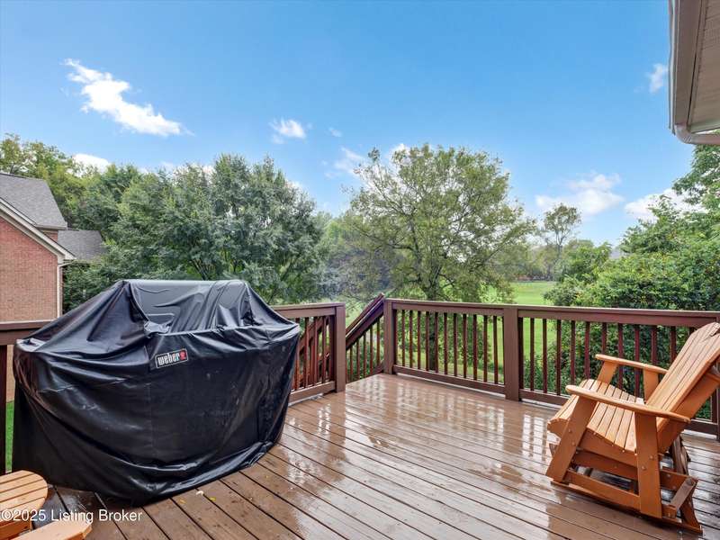 Exquisite 5-bedroom 4.5 bath home with a walkout basement combines timeless elegance with modern comfort...this Oldham County gem boasts sweeping golf course views of the 4th hole. From the moment you step inside you'll notice the elegant touches throughout. Classic lighting, rich hardwood flooring, & sophisticated color palettes elevate every room. The tall ceilings on the first floor create a grand sense of space complemented by a dramatic vaulted entry with a turned staircase & tiled flooring. The first floor features an elegant living room that flows seamlessly into a formal dining room. Private office with striking arched windows....perfect for working from home in style. The desirable open-concept layout connects the great room and kitchen beautifully making it easy to enjoy family time and daily living all in one inviting area. The kitchen is a showstopper with granite countertops, a center island, gas range, stainless appliances, and a generous breakfast area bathed in natural light. A true showpiece of the home is the screened-in porch where the serene natural backdrop is where refined relaxation takes center stage. Experience the perfect balance of sophistication and serenity while overlooking the golf course yet privately nestled against a mature tree line, this space delivers the ultimate in exclusivity and effortless indoor-outdoor living. Upstairs, the luxurious primary suite is complete with a walk-in closet & spa-like bath featuring a jetted tub, separate shower, & a water closet. Three well-appointed additional bedrooms, one distinguished by its own private en suite bath. Hardwood floors also grace the primary, the upstairs hallway, & one of the guest bedrooms. The expansive walkout lower level with over 1,400 is an entertainer's dream with plenty of space for a game room, family lounge, play area, guest bedroom, & a full bath. A wet bar rough in is also in place providing the perfect opportunity to customize the space to your liking. Enjoy outdoor living at its finest whether it's coffee on the screened porch or dinner parties on the deck with views of the lush fairway. This is Prospect living at its best-elegant, functional, & full of charm. Don't miss your chance to call this stunning home yours!