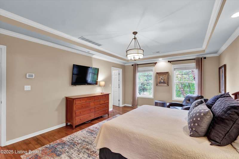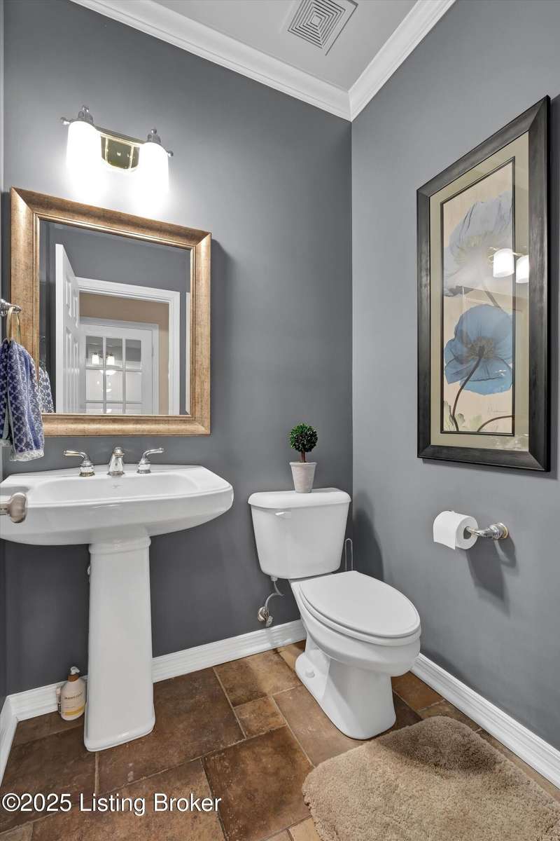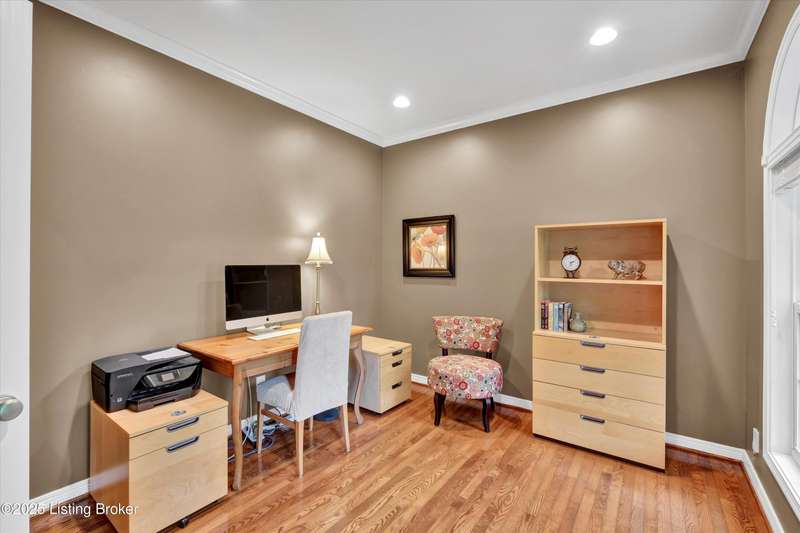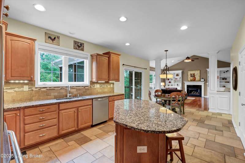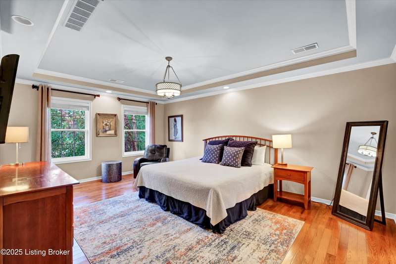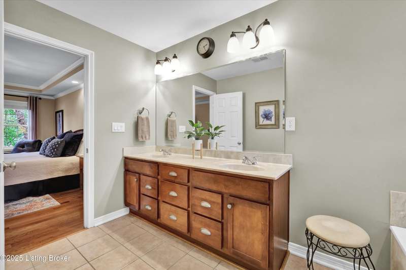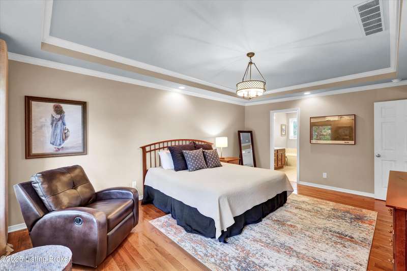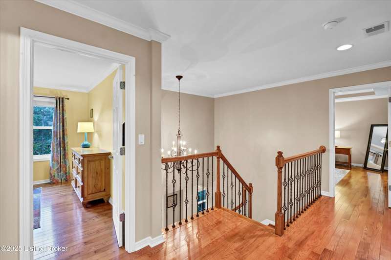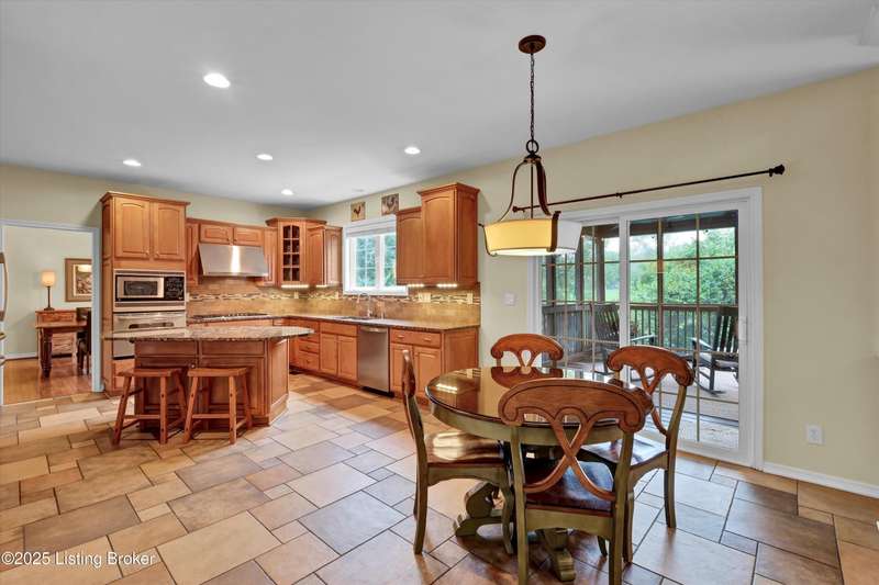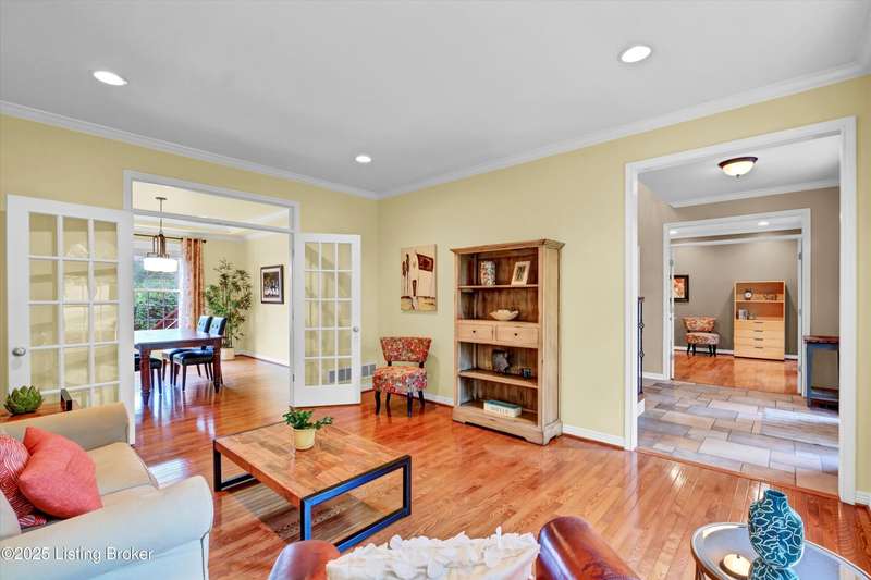 Exquisite 5-bedroom 4.5 bath home with a walkout basement combines timeless elegance with modern comfort...this Oldham County gem boasts sweeping golf course views of the 4th hole. From the moment you step inside you'll notice the elegant touches throughout. Classic lighting, rich hardwood flooring, & sophisticated color palettes elevate every room. The tall ceilings on the first floor create a grand sense of space complemented by a dramatic vaulted entry with a turned staircase & tiled flooring. The first floor features an elegant living room that flows seamlessly into a formal dining room. Private office with striking arched windows....perfect for working from home in style. The desirable open-concept layout connects the great room and kitchen beautifully making it easy to enjoy family time and daily living all in one inviting area. The kitchen is a showstopper with granite countertops, a center island, gas range, stainless appliances, and a generous breakfast area bathed in natural light. A true showpiece of the home is the screened-in porch where the serene natural backdrop is where refined relaxation takes center stage. Experience the perfect balance of sophistication and serenity while overlooking the golf course yet privately nestled against a mature tree line, this space delivers the ultimate in exclusivity and effortless indoor-outdoor living. Upstairs, the luxurious primary suite is complete with a walk-in closet & spa-like bath featuring a jetted tub, separate shower, & a water closet. Three well-appointed additional bedrooms, one distinguished by its own private en suite bath. Hardwood floors also grace the primary, the upstairs hallway, & one of the guest bedrooms. The expansive walkout lower level with over 1,400 is an entertainer's dream with plenty of space for a game room, family lounge, play area, guest bedroom, & a full bath. A wet bar rough in is also in place providing the perfect opportunity to customize the space to your liking. Enjoy outdoor living at its finest whether it's coffee on the screened porch or dinner parties on the deck with views of the lush fairway. This is Prospect living at its best-elegant, functional, & full of charm. Don't miss your chance to call this stunning home yours!