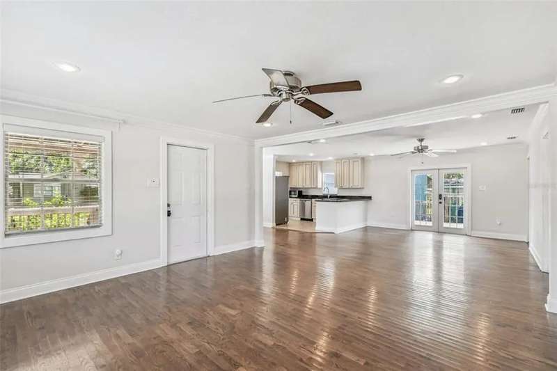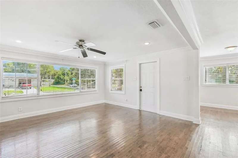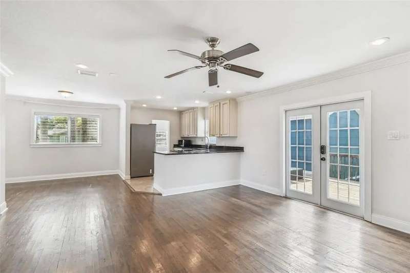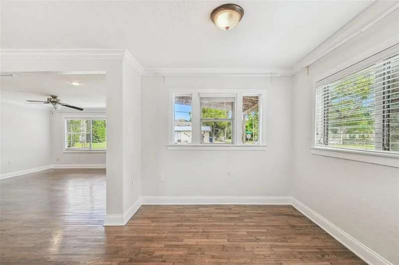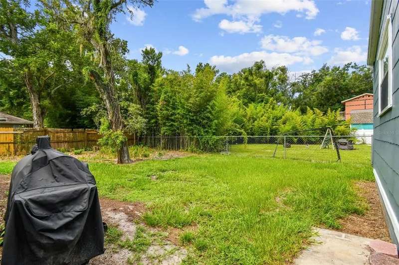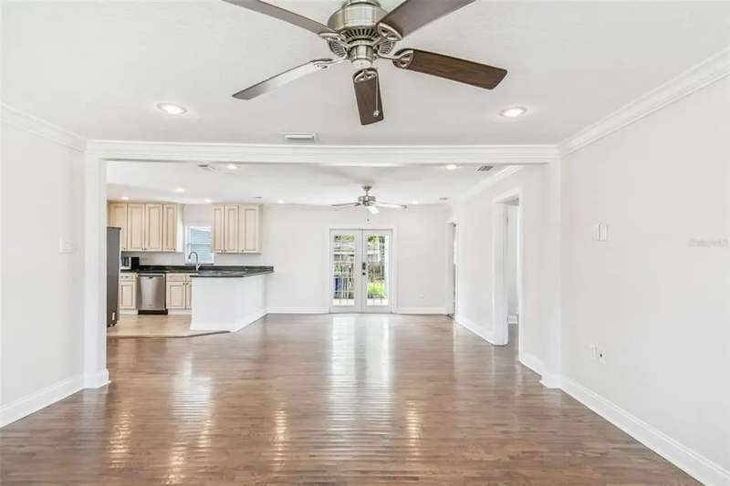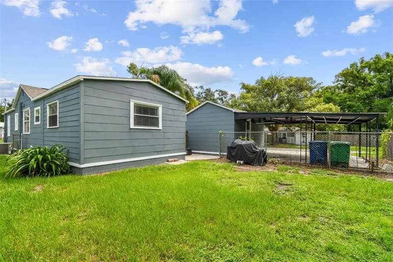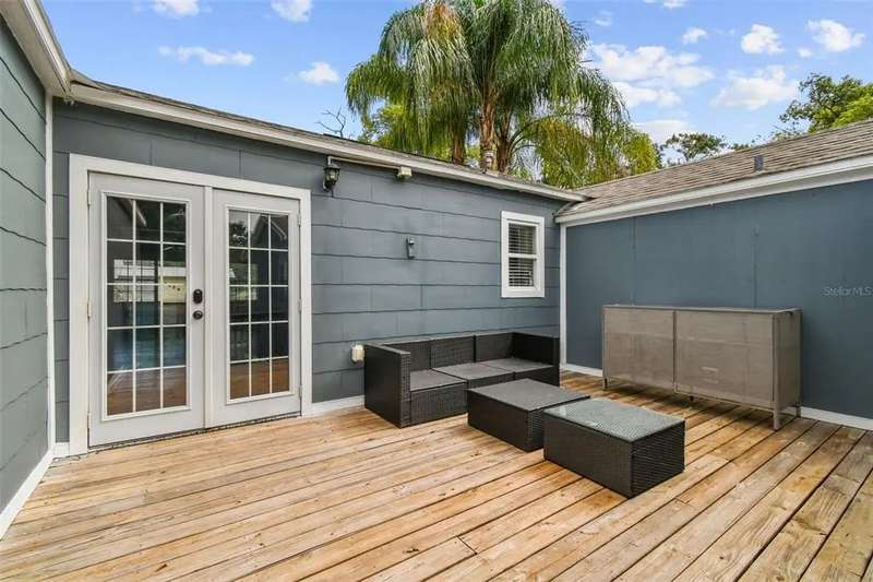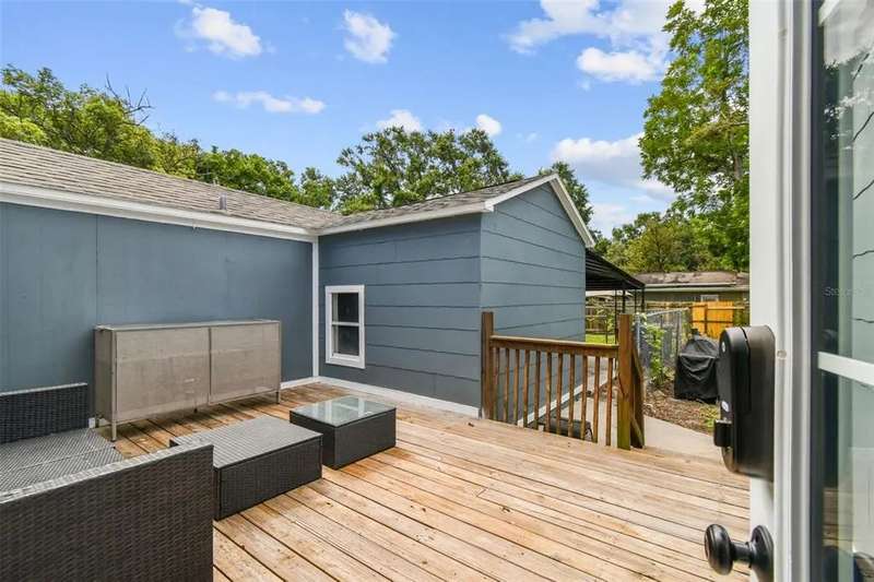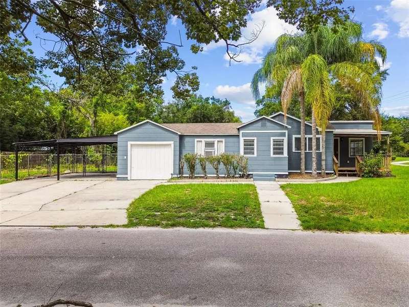 This beautifully updated 3-bedroom, 2-bath home sits proudly on a spacious corner lot in sought-after Old Seminole Heights, offering the perfect blend of modern upgrades and timeless bungalow character. Freshly painted inside and out in 2025, the home welcomes you with bright, open living spaces, a functional floor plan, and thoughtful details throughout. Inside, original hardwood floors flow through the main living areas, preserving the home’s historic warmth, while wet areas are finished in stylish ceramic tile. The open kitchen features on-trend light wood cabinetry, dark granite countertops, and stainless steel appliances. A large family room with abundant windows fills the space with natural light, while two additional versatile area can serve as a formal dining room, living room, or office to suit your lifestyle. Off of the kitchen is an additional space perfect to use as a large panty or mudroom leading to the laundry room and attached 1 car garage. The separate floor plan allows for a private primary suite that boasts a remodeled master bath with a walk-in shower, new vanity and tile. The other 2 guest rooms share a full bathroom with an updated tile, vanity, and tub. In 2025, the attached one-car garage was enhanced with new drywall and recessed lighting for a more finished feel, complementing the two-car carport that provides ample parking and storage. Step through French doors to a private, custom wood deck ideal for year-round enjoyment. The fenced yard offers beautiful mature trees in both the front and back. Walk to local parks and dining, with SoHo and Downtown just minutes away — this is the perfect location to enjoy the best of Tampa living.