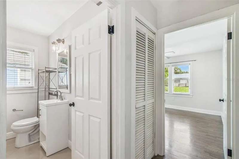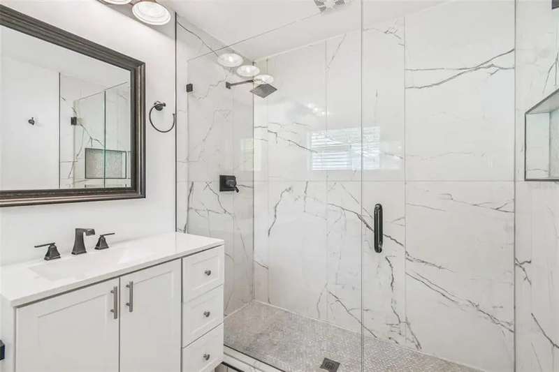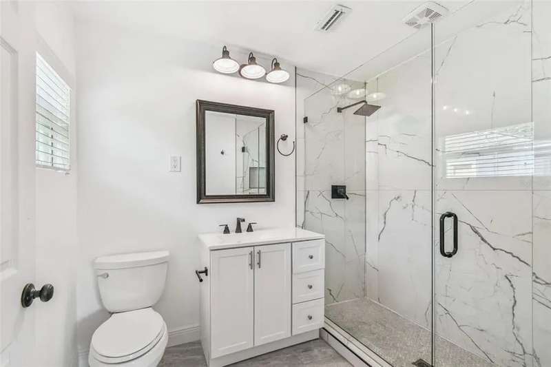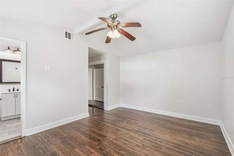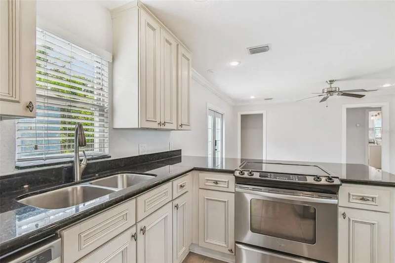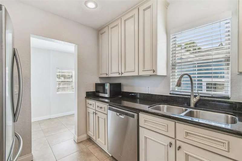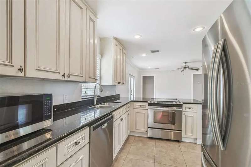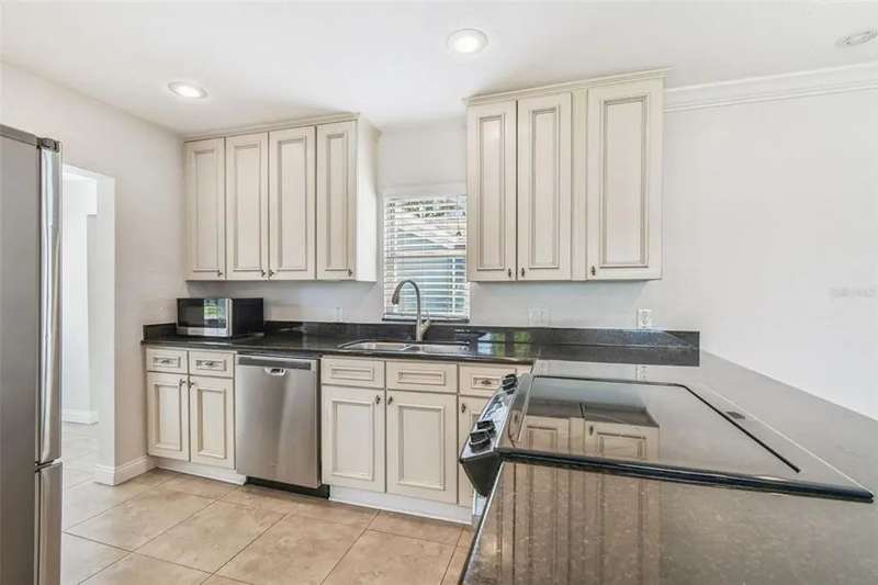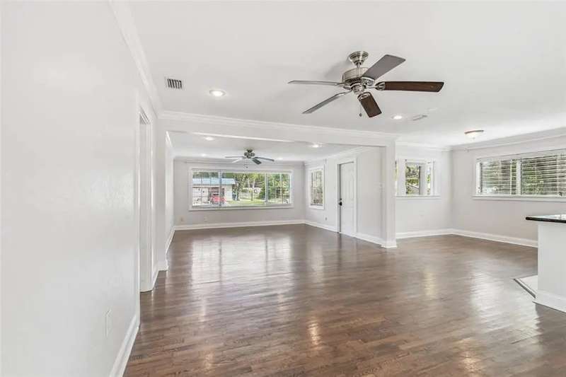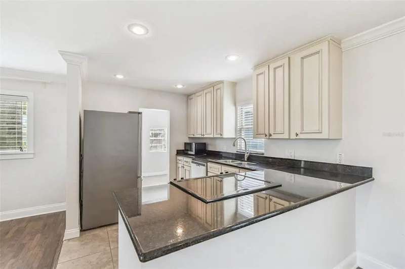 This beautifully updated 3-bedroom, 2-bath home sits proudly on a spacious corner lot in sought-after Old Seminole Heights, offering the perfect blend of modern upgrades and timeless bungalow character. Freshly painted inside and out in 2025, the home welcomes you with bright, open living spaces, a functional floor plan, and thoughtful details throughout. Inside, original hardwood floors flow through the main living areas, preserving the home’s historic warmth, while wet areas are finished in stylish ceramic tile. The open kitchen features on-trend light wood cabinetry, dark granite countertops, and stainless steel appliances. A large family room with abundant windows fills the space with natural light, while two additional versatile area can serve as a formal dining room, living room, or office to suit your lifestyle. Off of the kitchen is an additional space perfect to use as a large panty or mudroom leading to the laundry room and attached 1 car garage. The separate floor plan allows for a private primary suite that boasts a remodeled master bath with a walk-in shower, new vanity and tile. The other 2 guest rooms share a full bathroom with an updated tile, vanity, and tub. In 2025, the attached one-car garage was enhanced with new drywall and recessed lighting for a more finished feel, complementing the two-car carport that provides ample parking and storage. Step through French doors to a private, custom wood deck ideal for year-round enjoyment. The fenced yard offers beautiful mature trees in both the front and back. Walk to local parks and dining, with SoHo and Downtown just minutes away — this is the perfect location to enjoy the best of Tampa living.