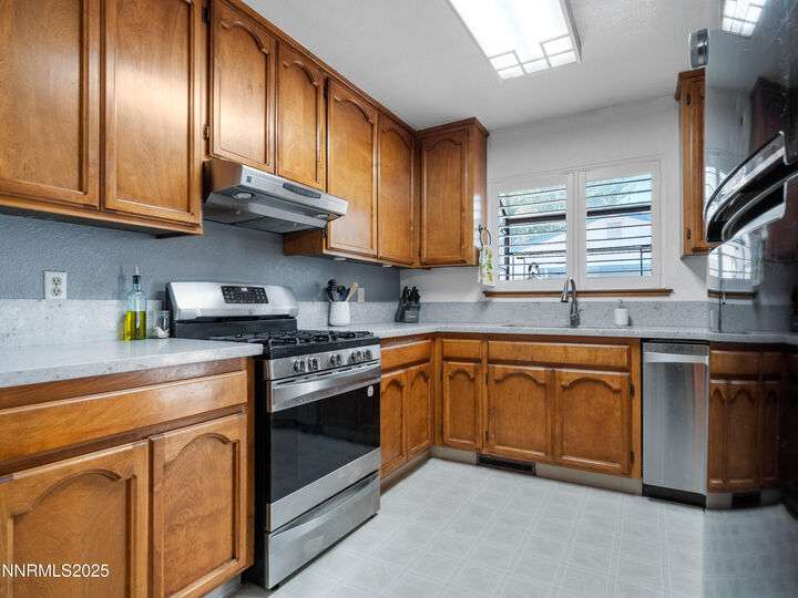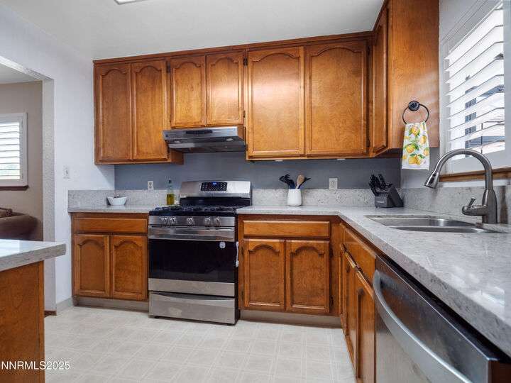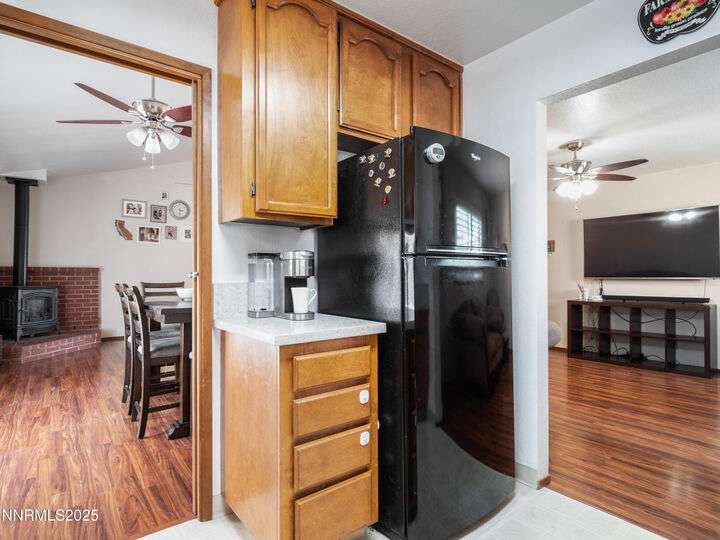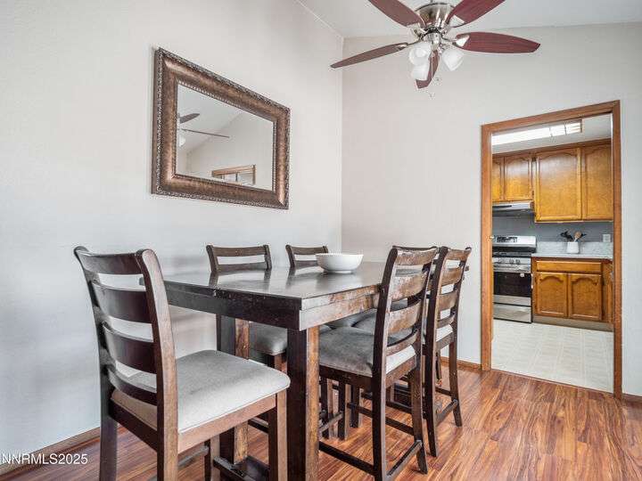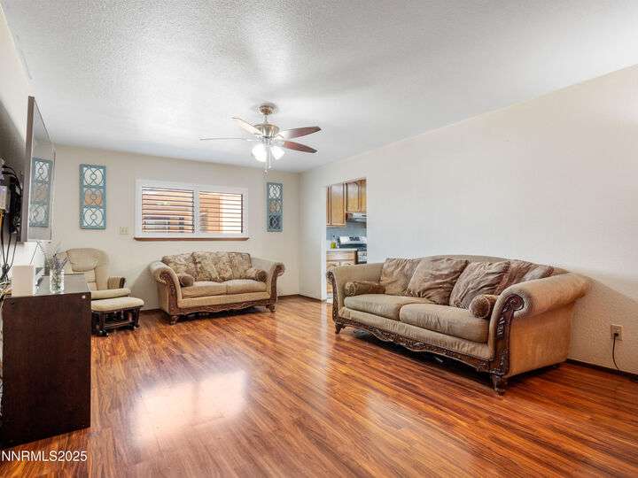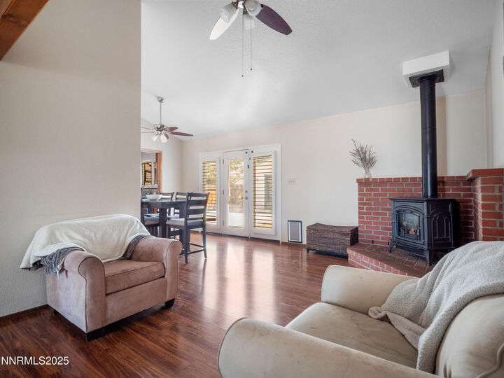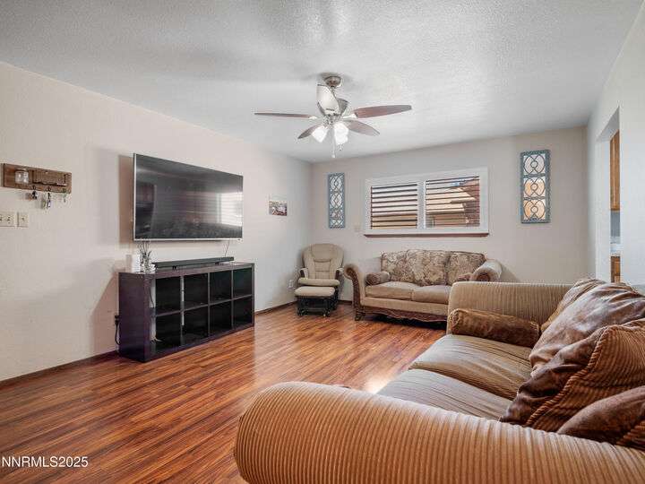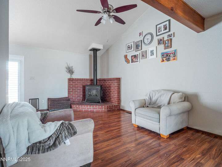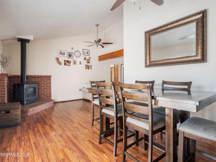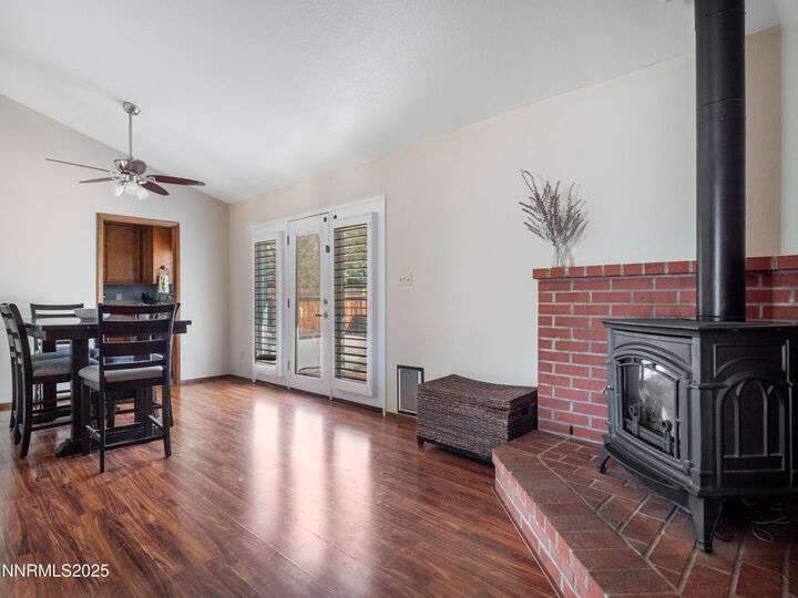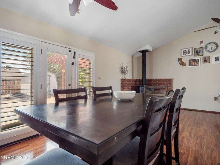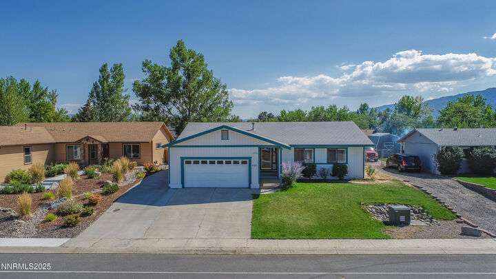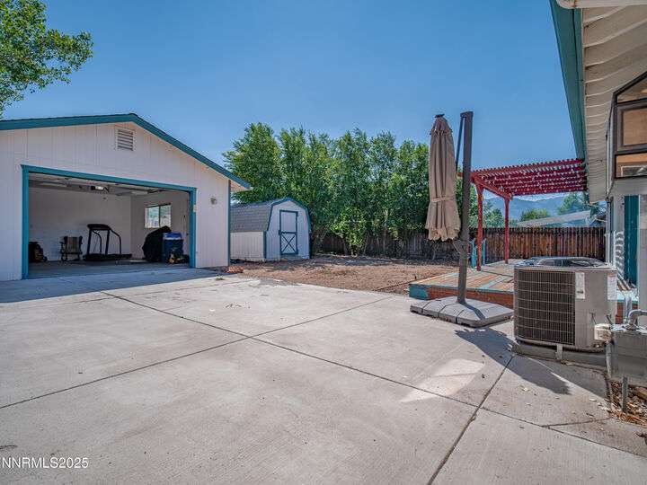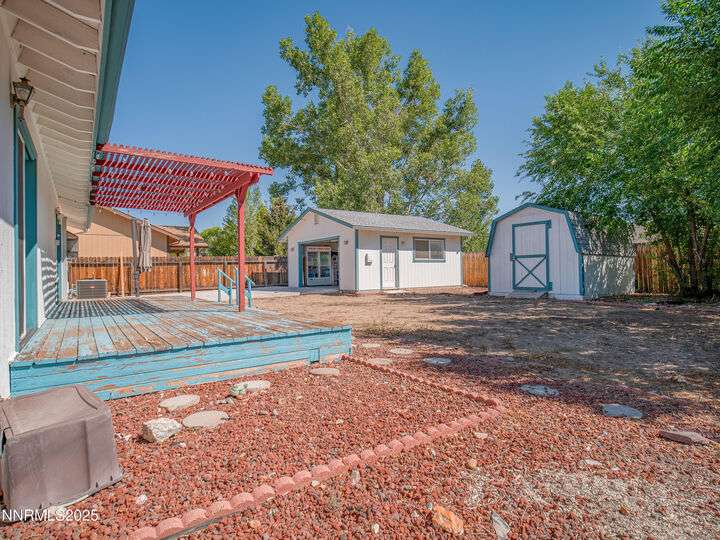 Charming 3-bedroom, 2-bath home offers both comfort and functionality, starting with a 20x20 detached garage/shop—perfect for a car enthusiast, hobbyist, or the ultimate man cave. Step inside to find laminate flooring throughout all common areas, a vaulted ceiling with exposed beam, and a cozy gas fireplace. The floor plan features two separate living spaces—a living room off the dining nook and a family room open to the kitchen. The kitchen is beautifully appointed with granite slab counters, stainless steel appliances, and modern finishes. Recent upgrades include a newer furnace, A/C, shutters, and a smart thermostat for added efficiency. Situated on a generous .20-acre lot, the property offers a large concrete pad along the east side leading to the shop—ideal for RV, boat, or extra equipment parking. The backyard is perfect for entertaining with a wood deck, pergola, and a 10x12 storage shed. Must see to appreciate!